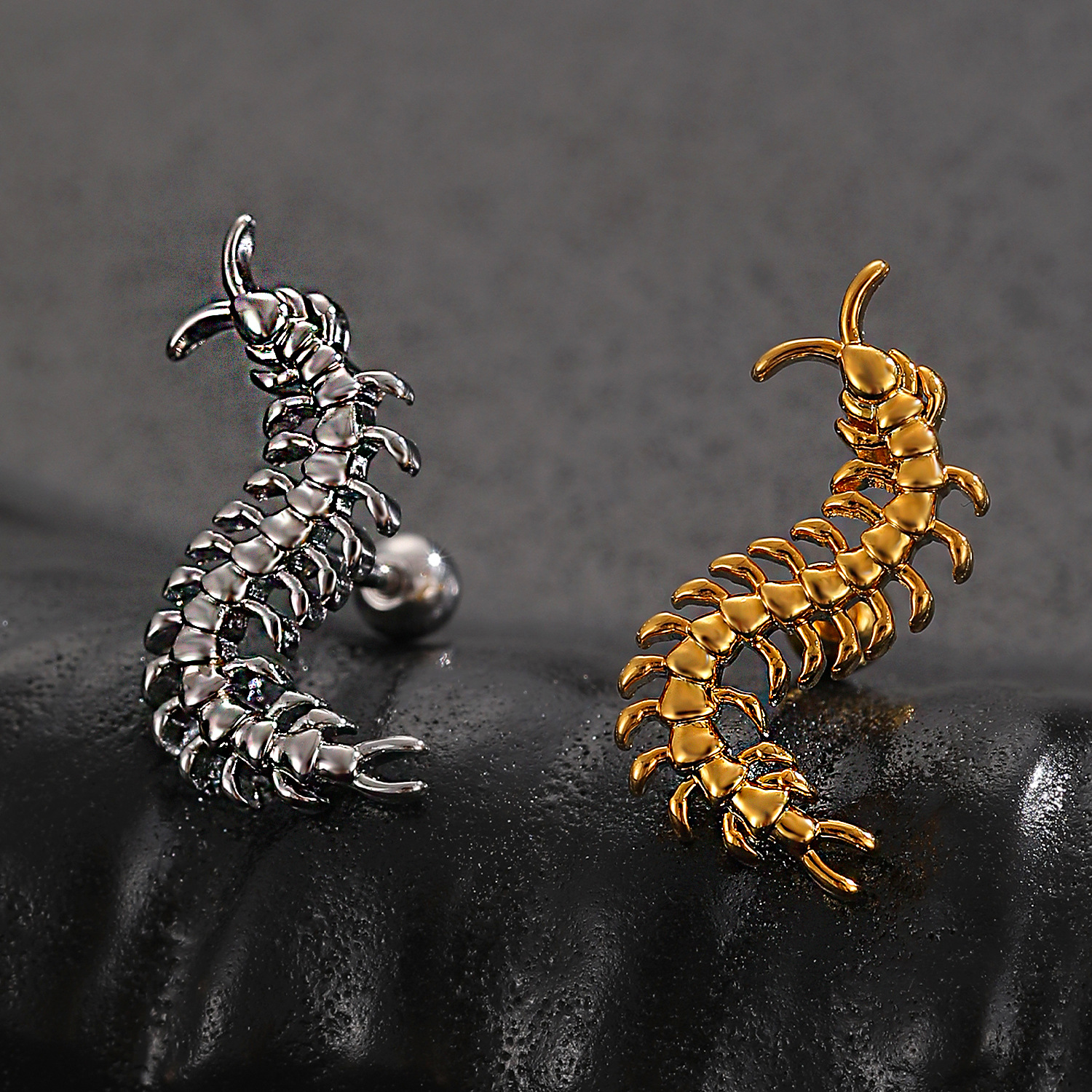 Goujon Laiton, Mille-pattes, Placage, bijoux de mode, plus de couleurs à choisir, protéger l'environnement, sans nickel, plomb et cadmium, Vendu par PC