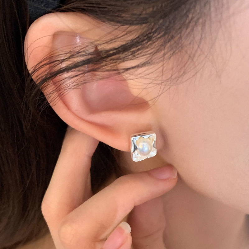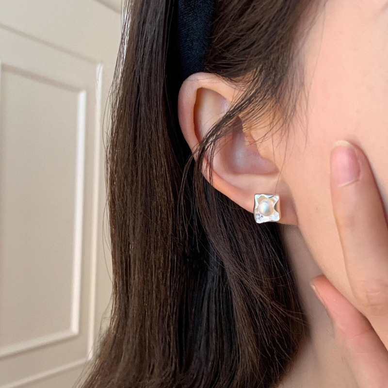 Goujon Laiton, avec perle de plastique, Placage de couleur argentée, bijoux de mode, argent, protéger l'environnement, sans nickel, plomb et cadmium, 10.50x9.60mm, Vendu par paire