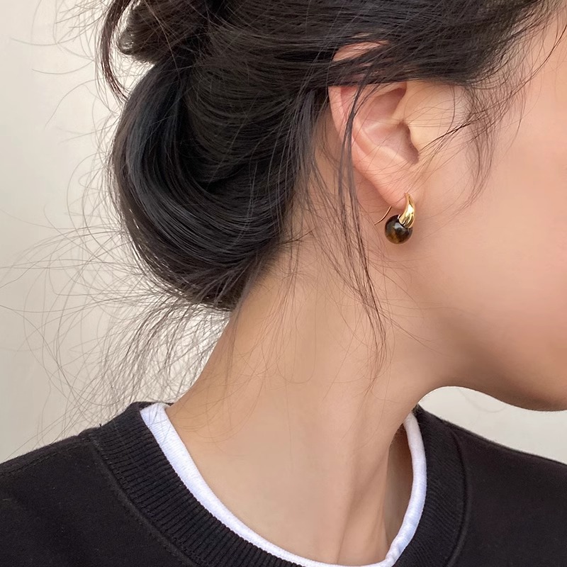 Goujon Laiton, avec oeil de tigre, Placage, bijoux de mode, doré, protéger l'environnement, sans nickel, plomb et cadmium, 10x17mm, Vendu par paire