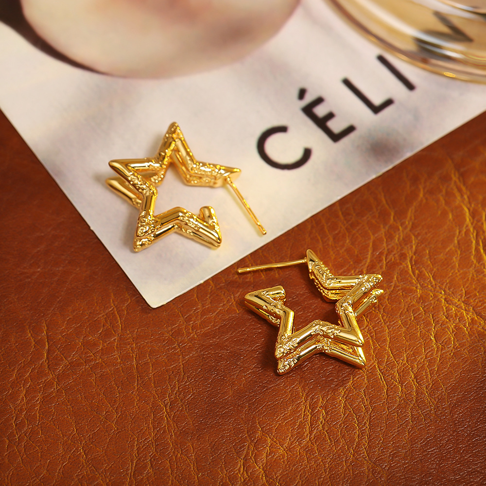 Goujon Laiton, étoile, Plaqué d'or, bijoux de mode & pour femme, Vendu par paire