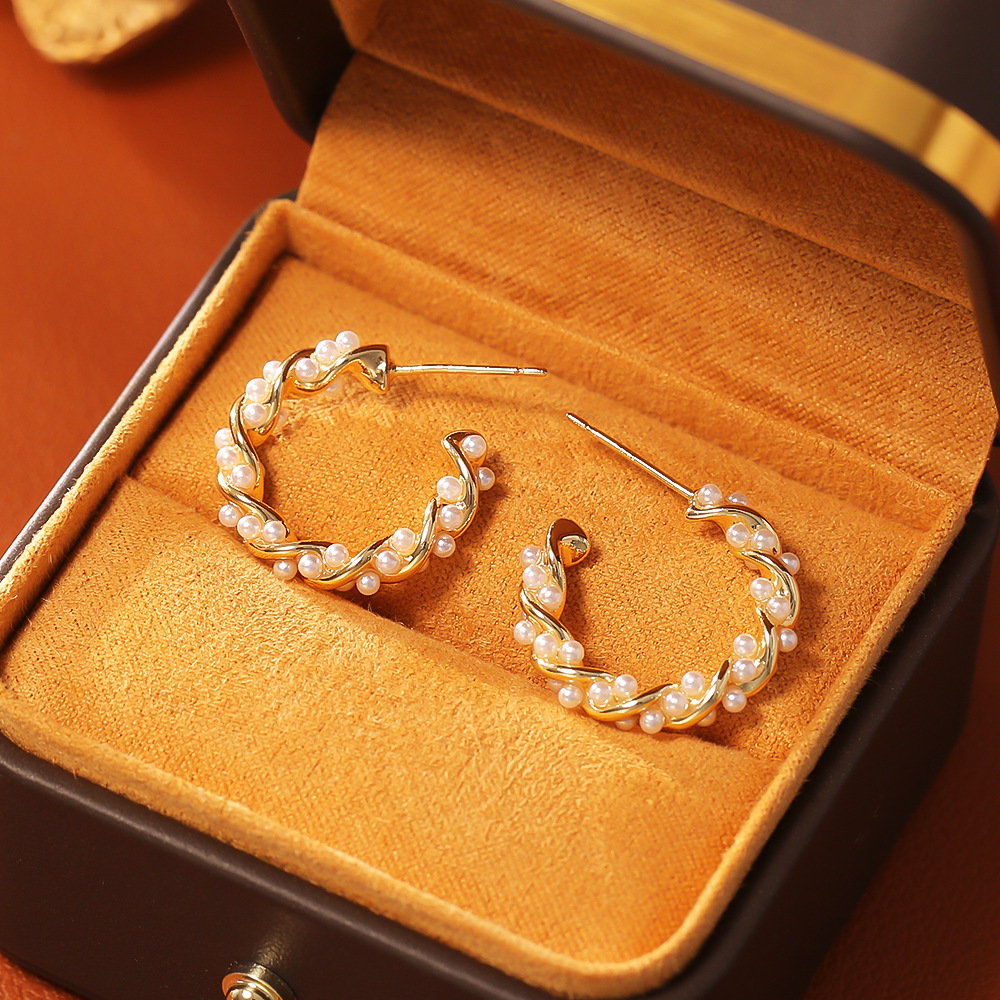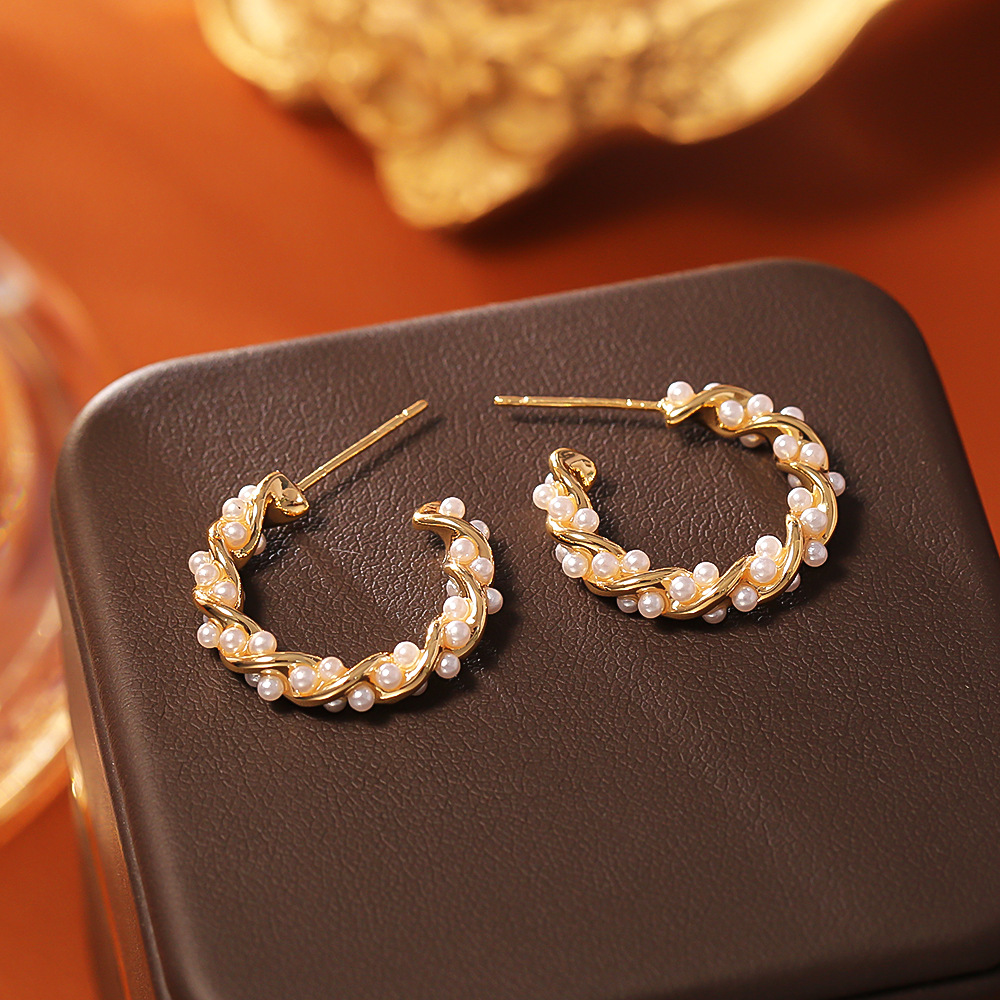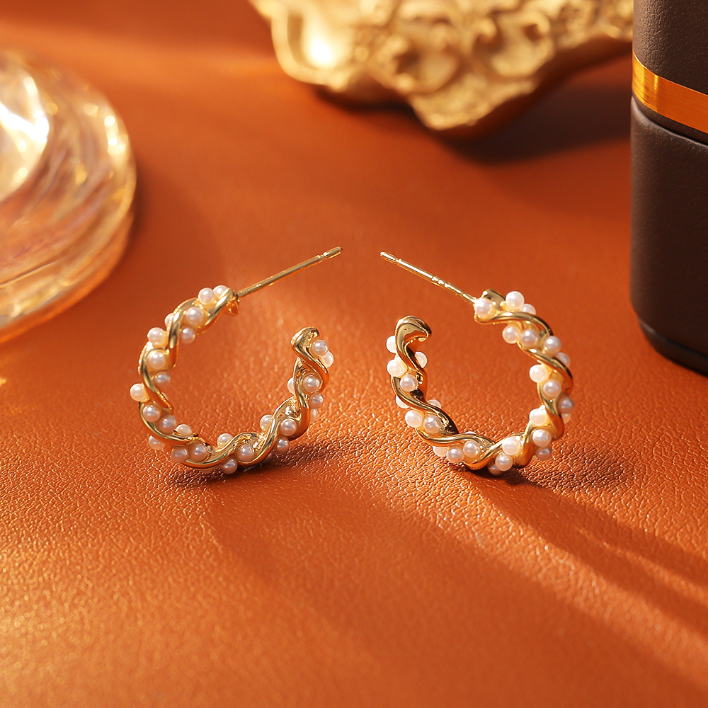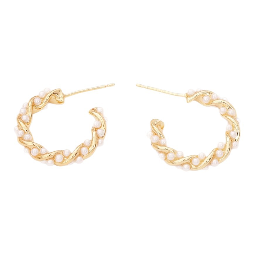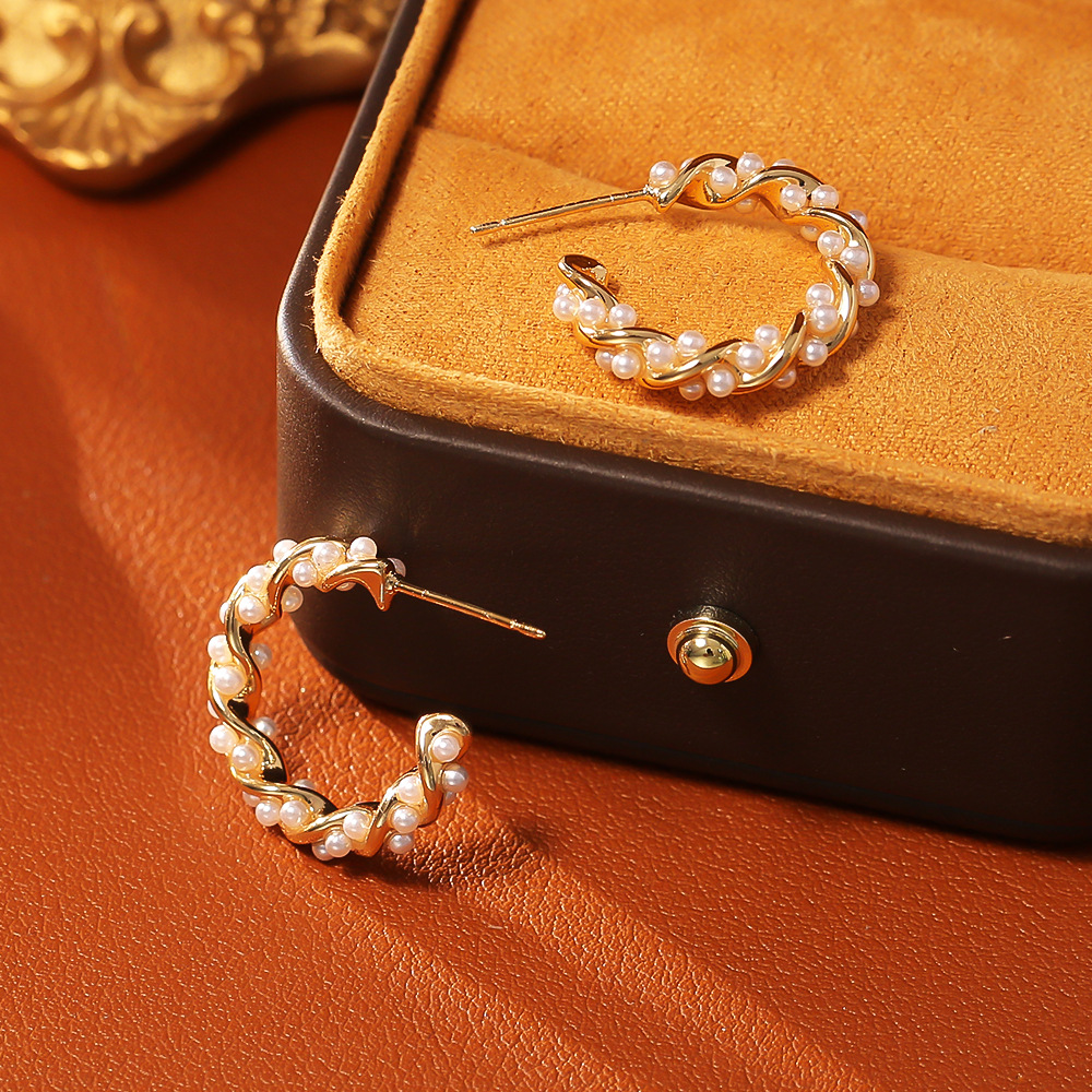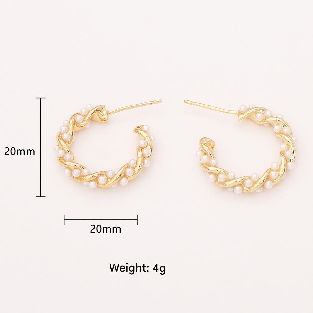 Goujon Laiton, avec perle de plastique, Plaqué d'or, bijoux de mode & pour femme, Vendu par paire