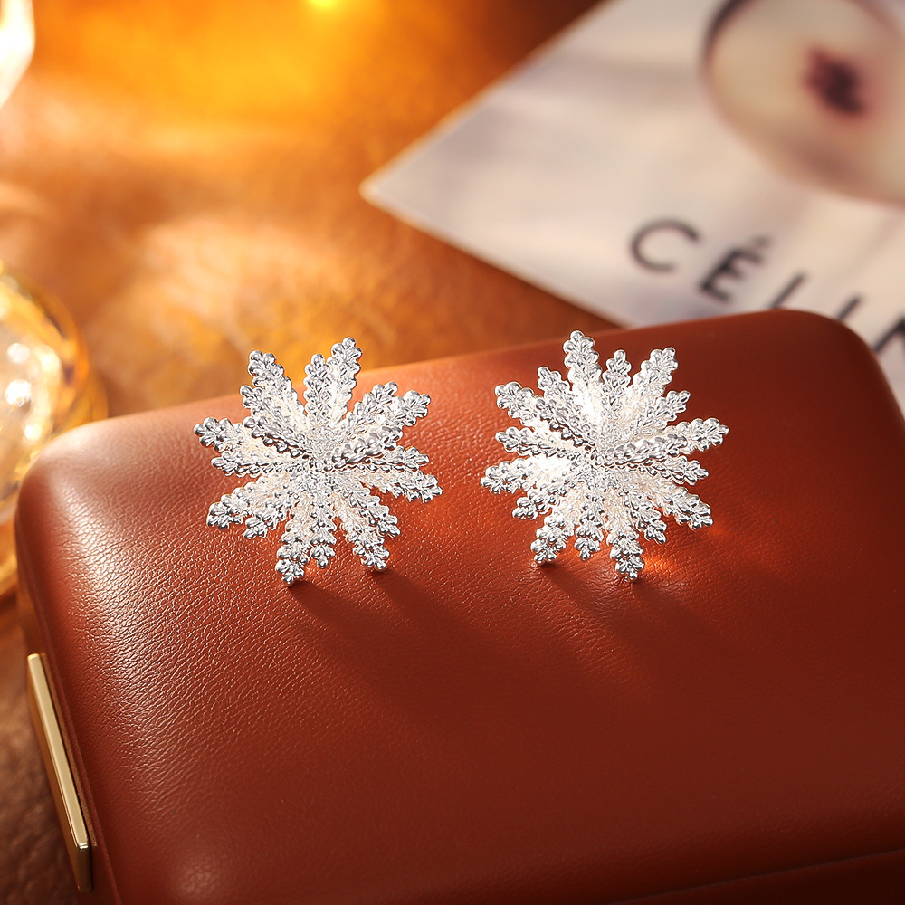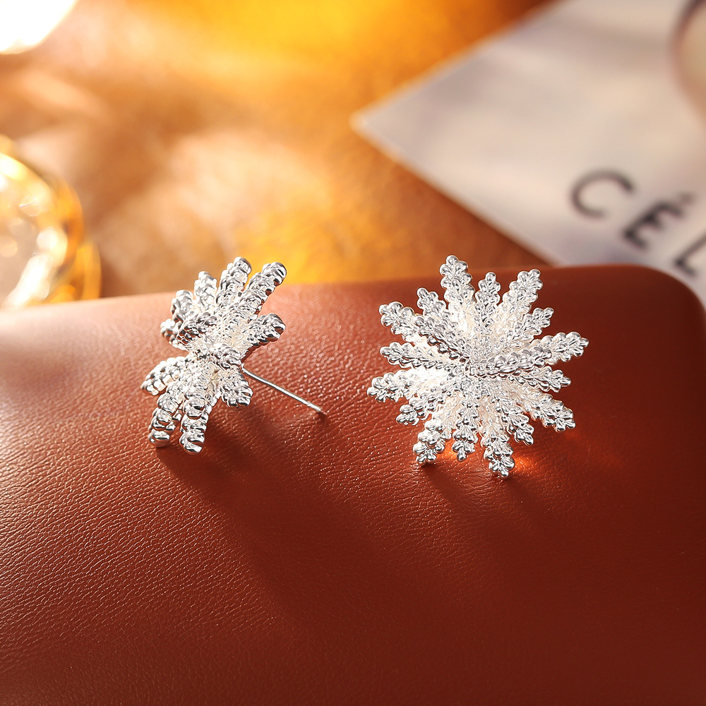 Goujon Laiton, flocon de neige, Placage, bijoux de mode & pour femme, argent, Vendu par paire