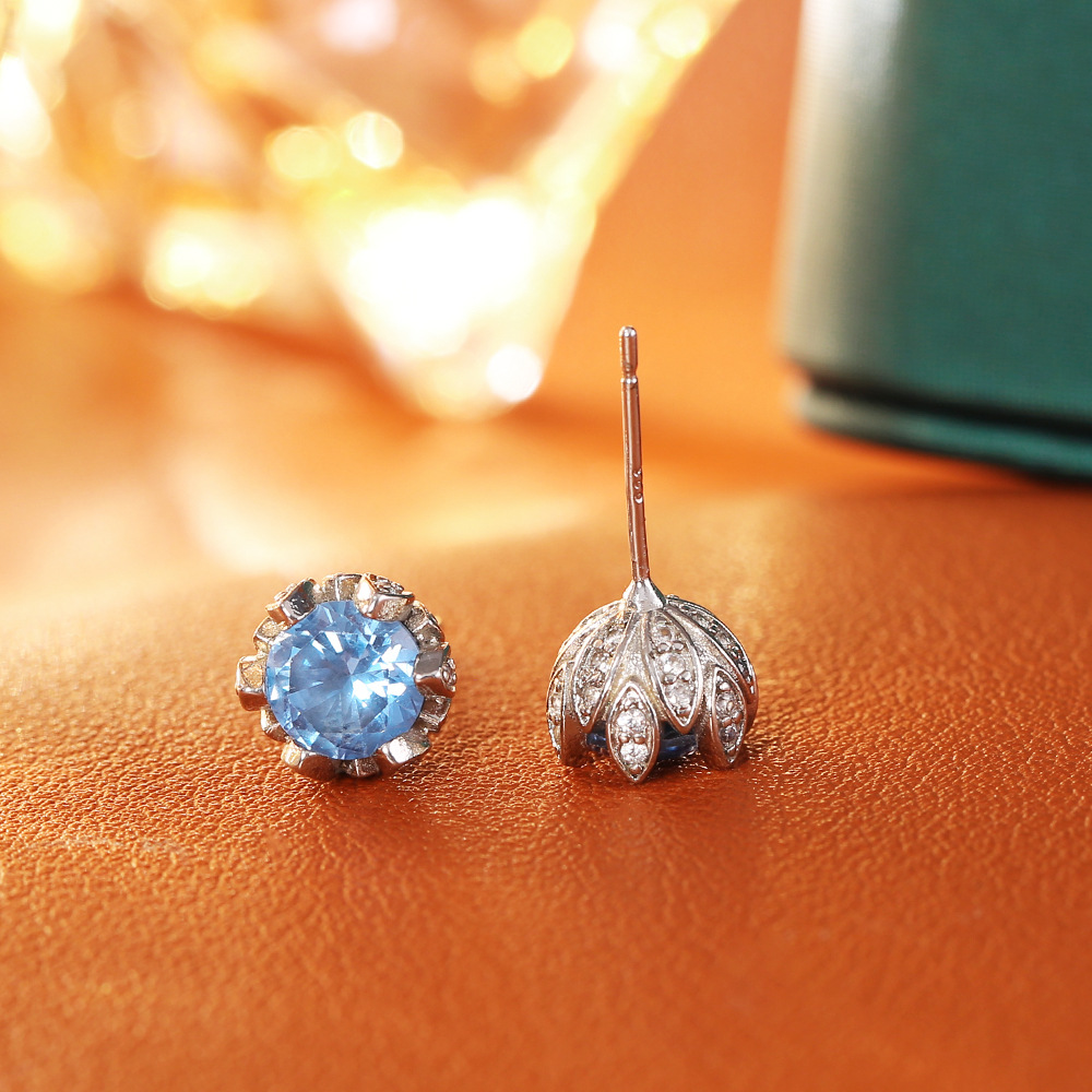 Goujon Laiton, avec zircon cubique, fleur, Placage, bijoux de mode & pour femme, argent, Vendu par paire