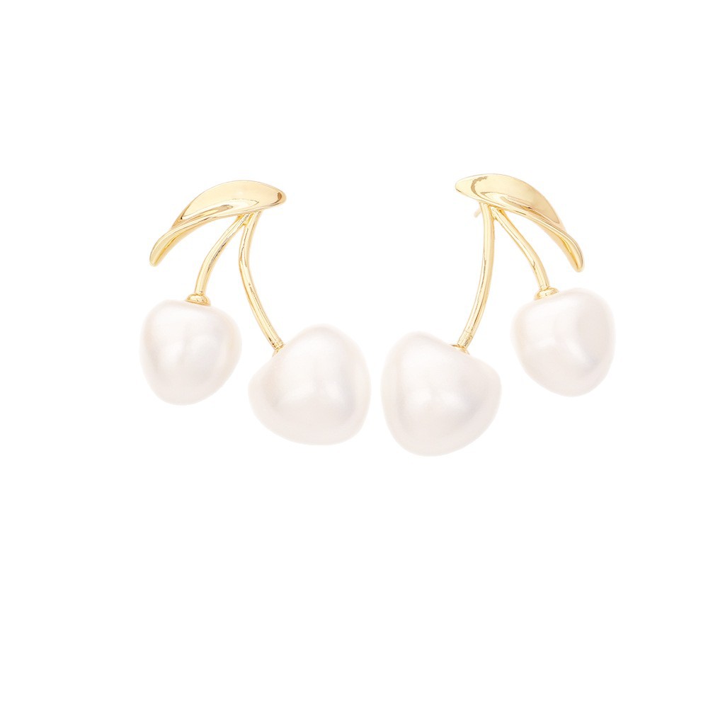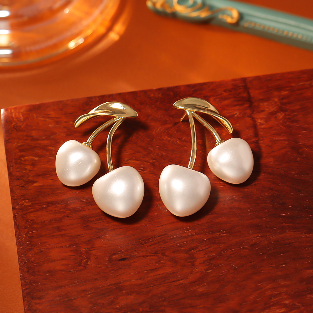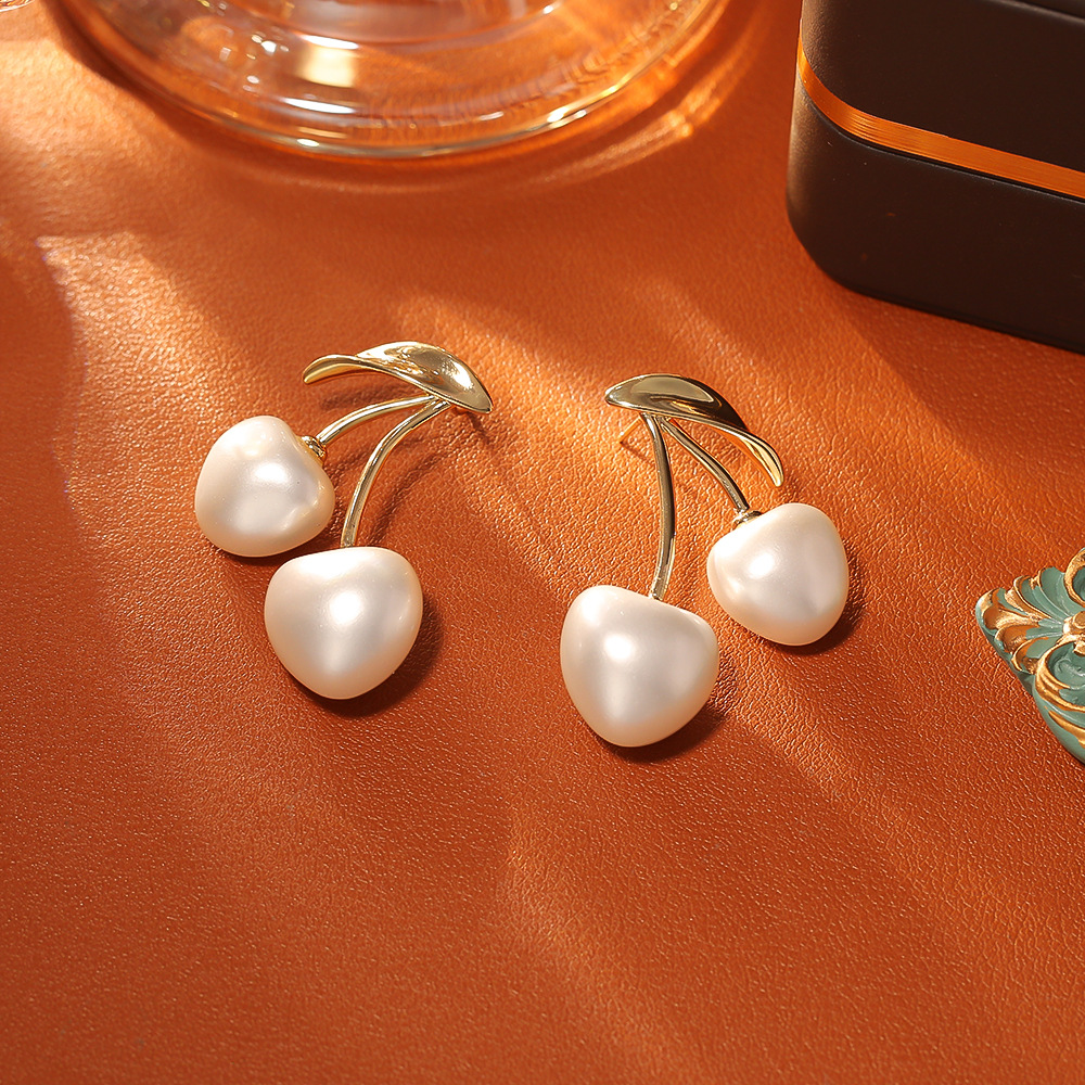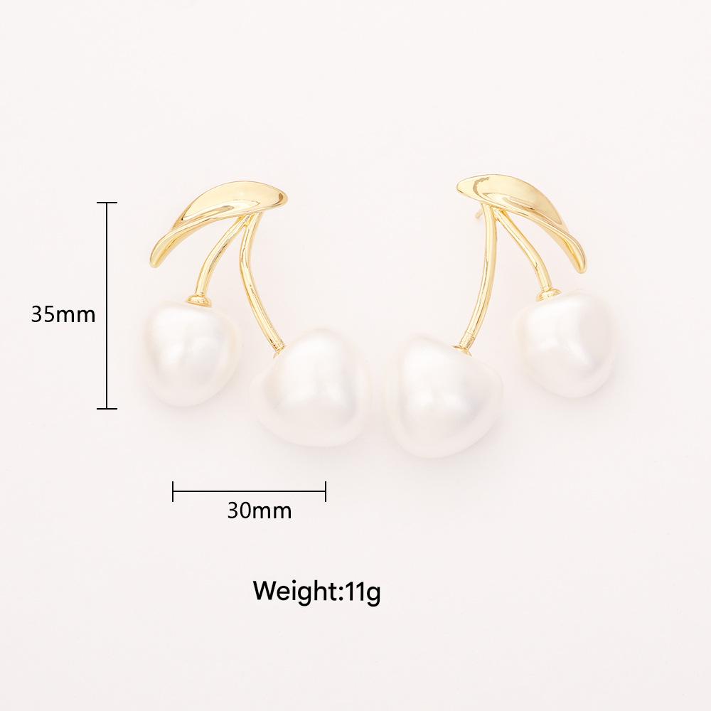 Goujon Laiton, avec perle de plastique, cerise, Plaqué d'or, bijoux de mode & pour femme, Vendu par paire