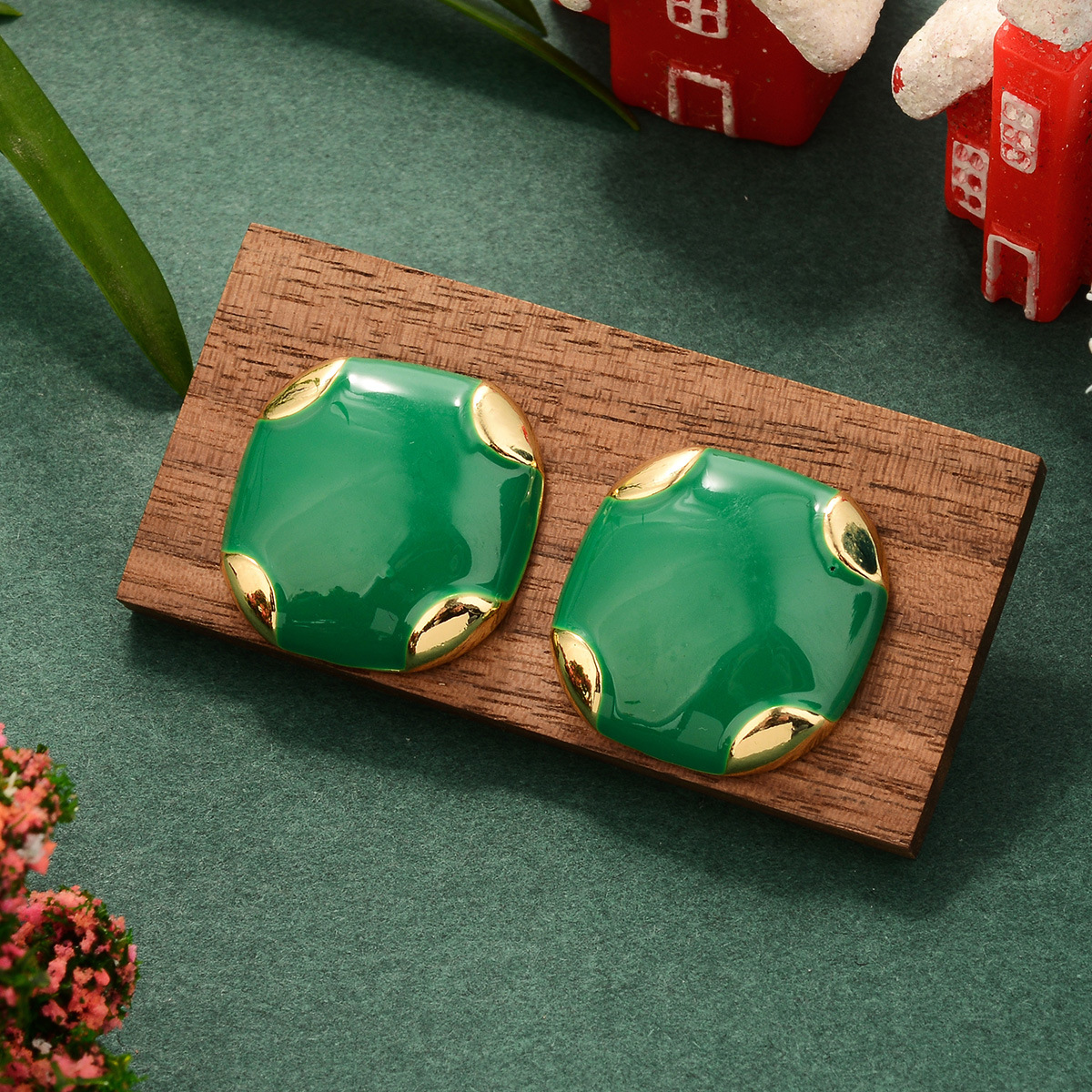 Goujon Laiton, alliage de zinc, cadre, Plaqué d'or 14K, Conception de Noël & pour femme & émail, Vendu par paire