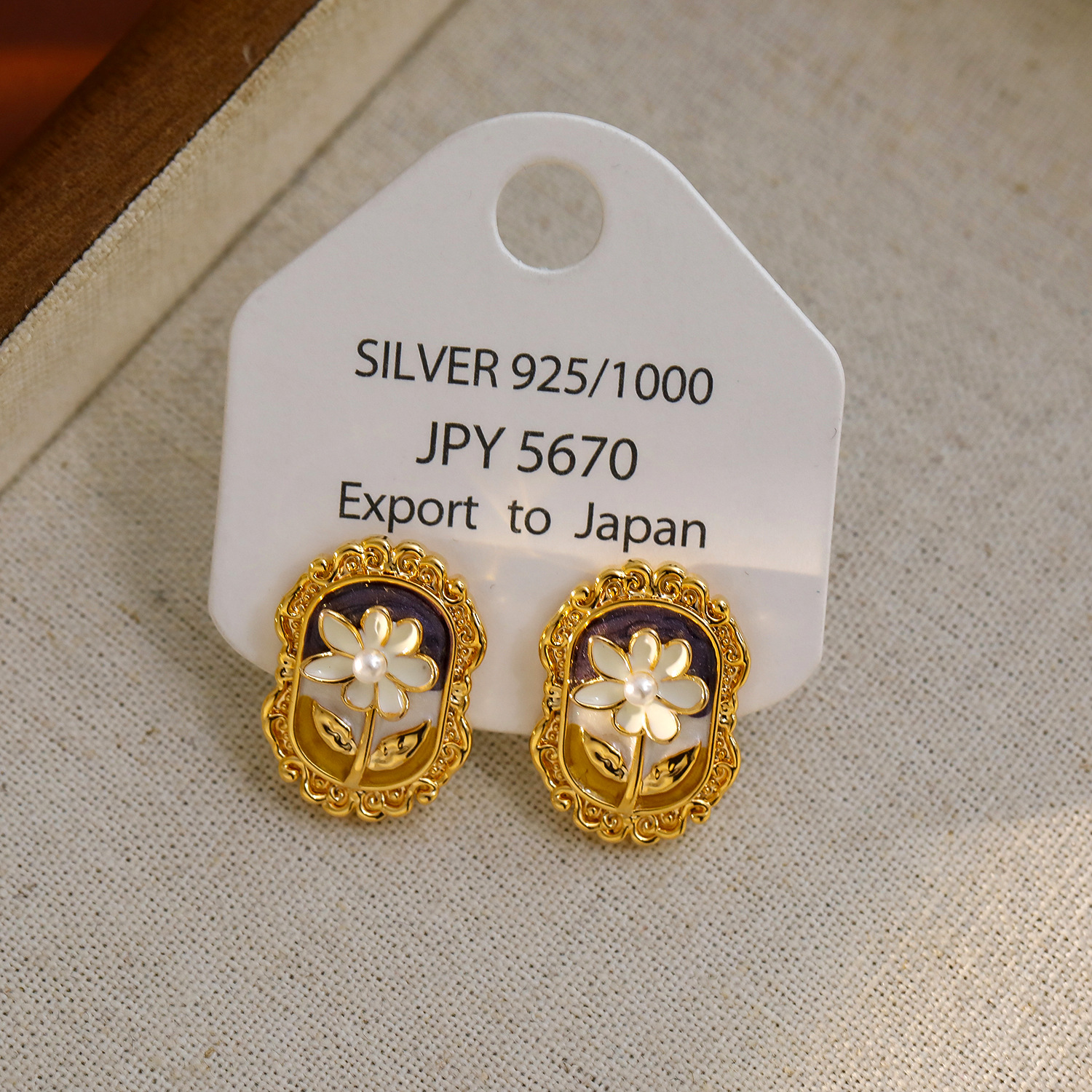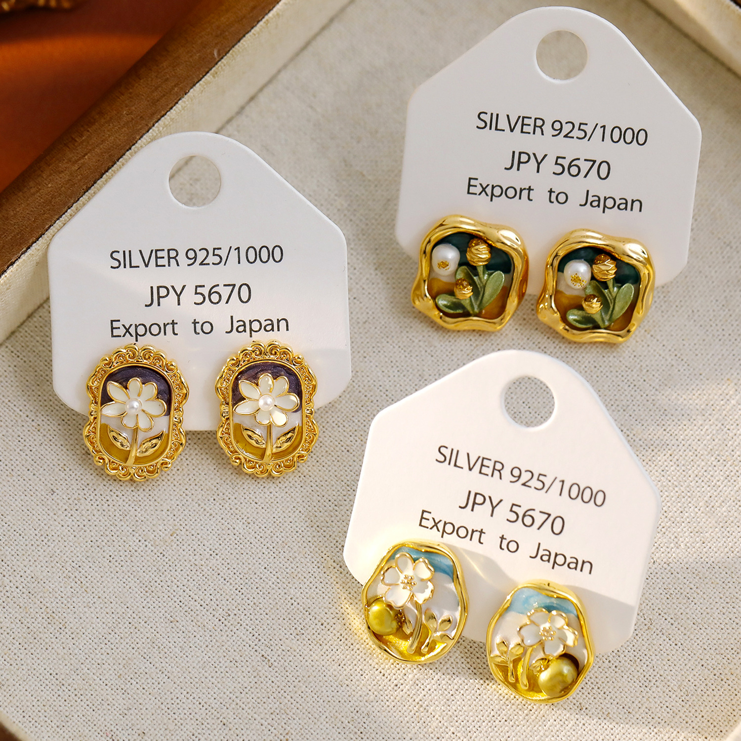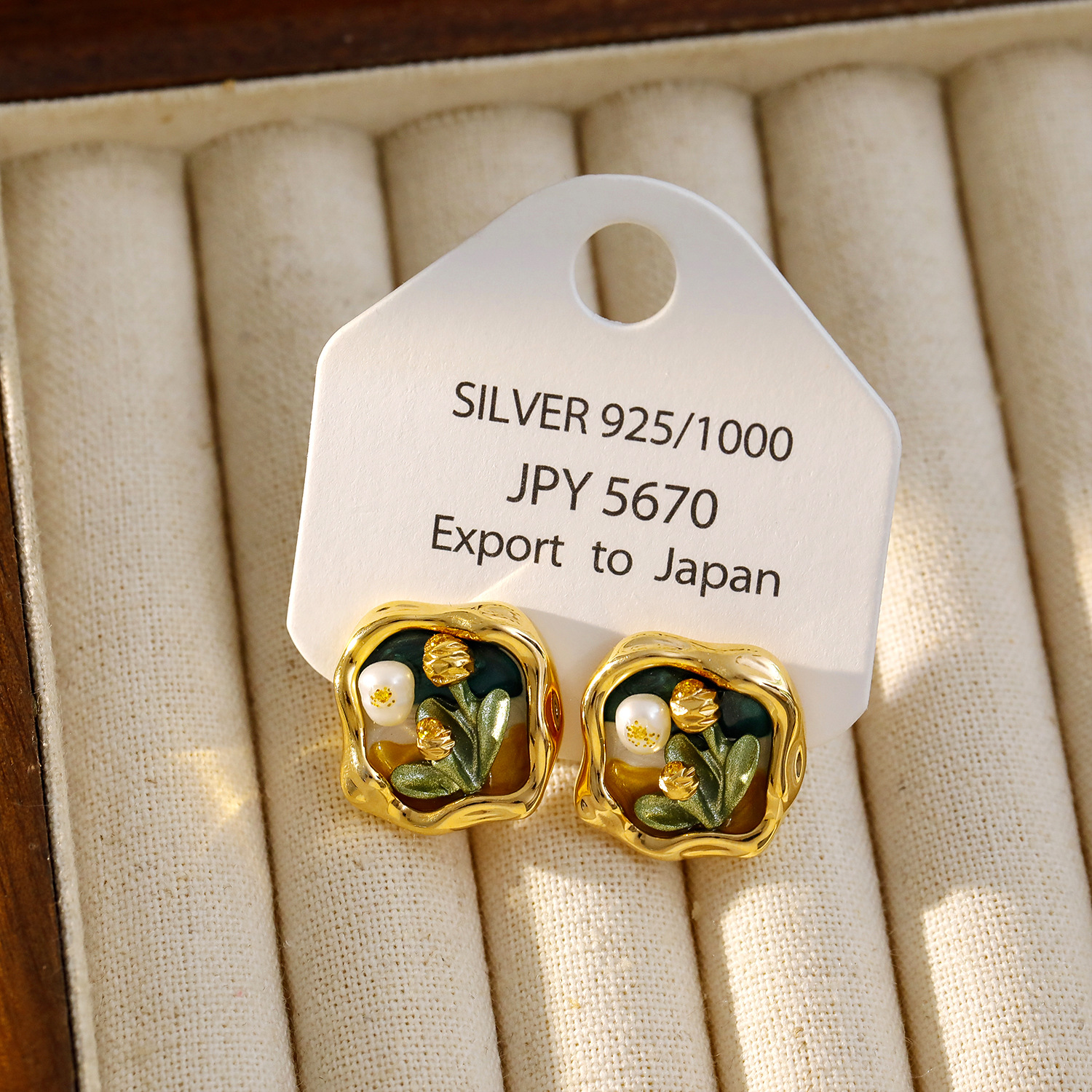 Goujon Laiton, avec perle d'eau douce cultivée, Plaqué or 18K, styles différents pour le choix & pour femme & émail, Vendu par PC