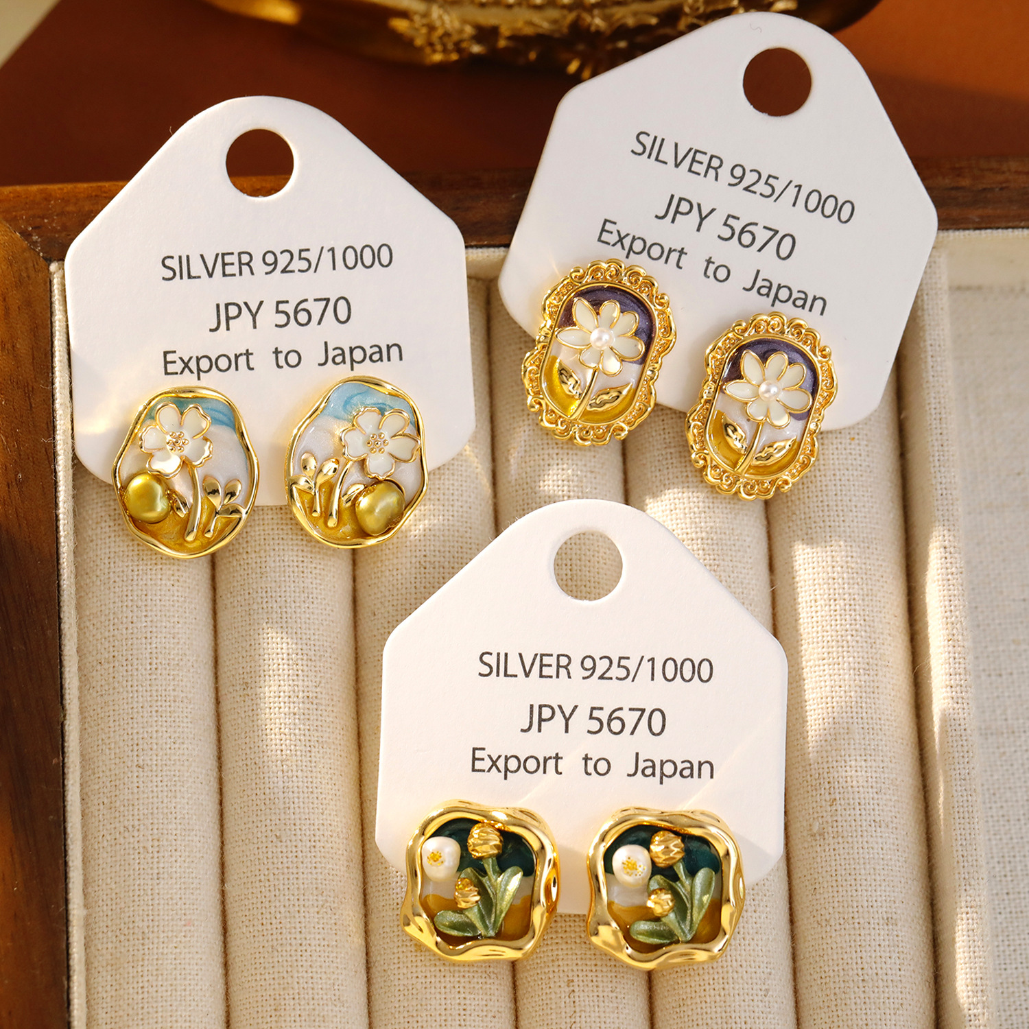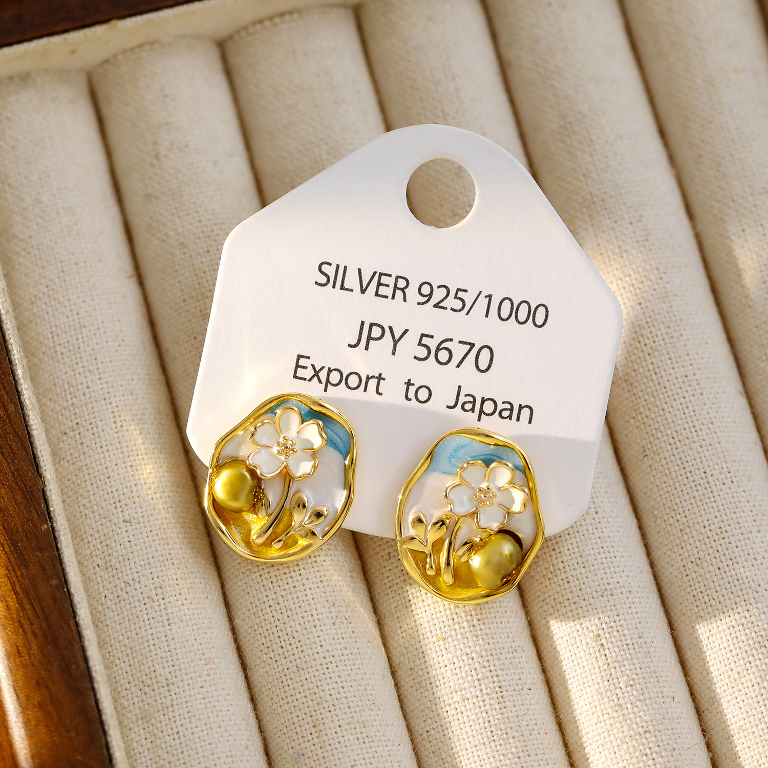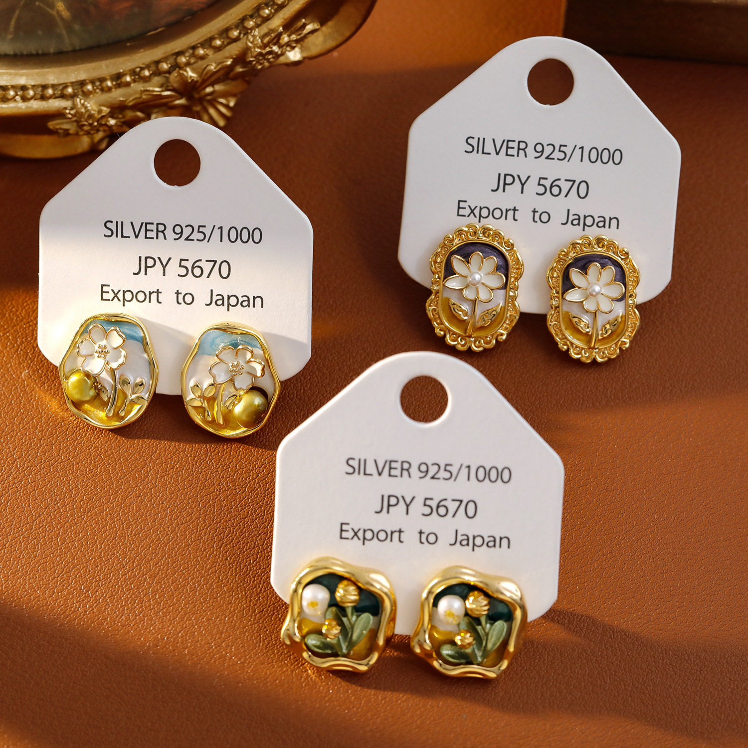 Goujon Laiton, avec perle d'eau douce cultivée, Plaqué or 18K, styles différents pour le choix & pour femme & émail, Vendu par PC