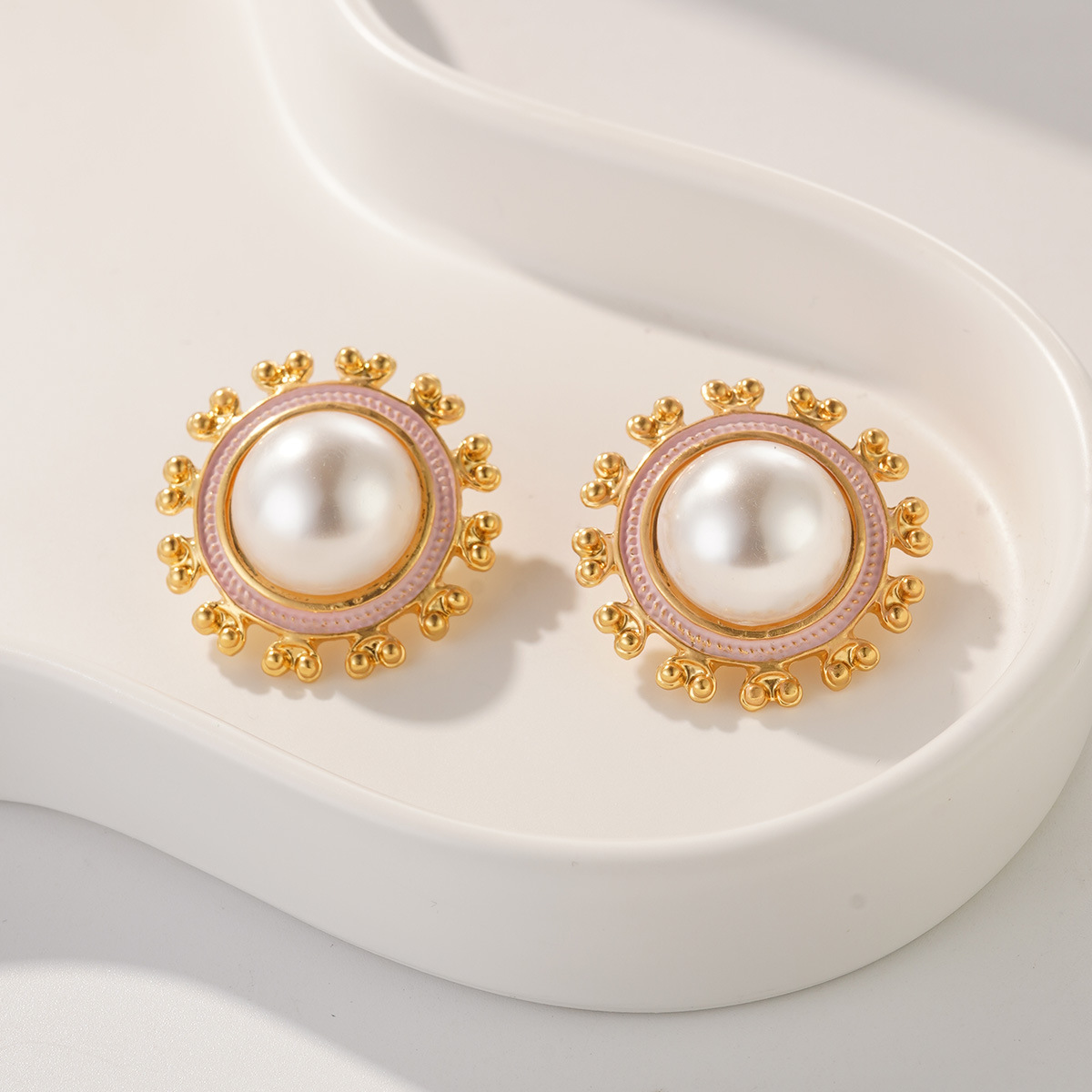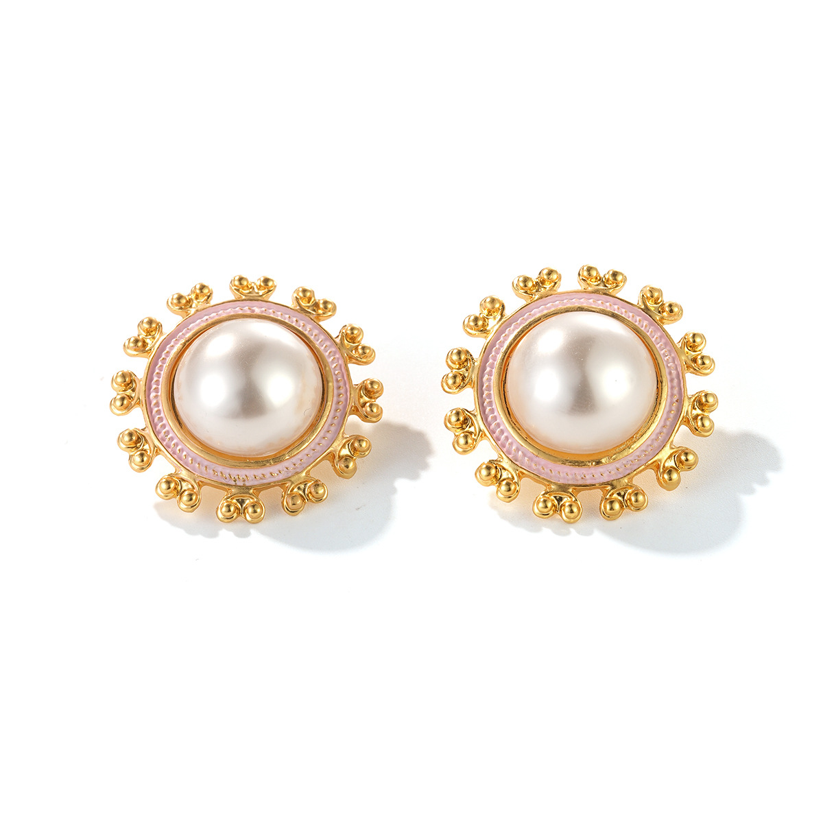 Goujon Laiton, avec Plastique ABS perle, Placage, bijoux de mode & émail, plus de couleurs à choisir, protéger l'environnement, sans nickel, plomb et cadmium, Vendu par paire