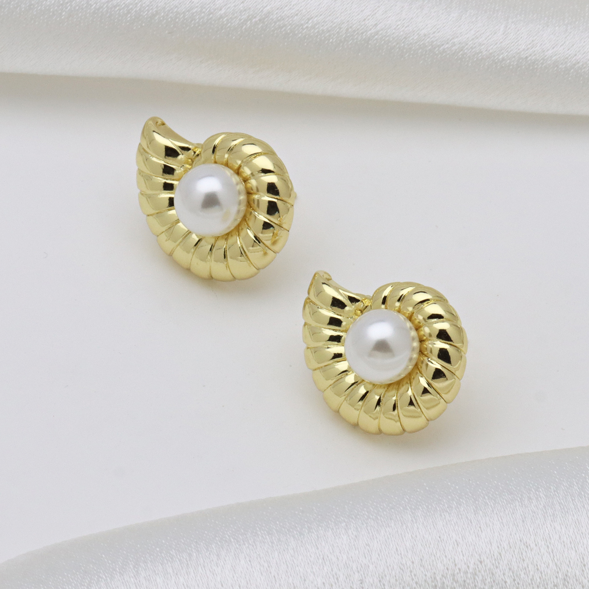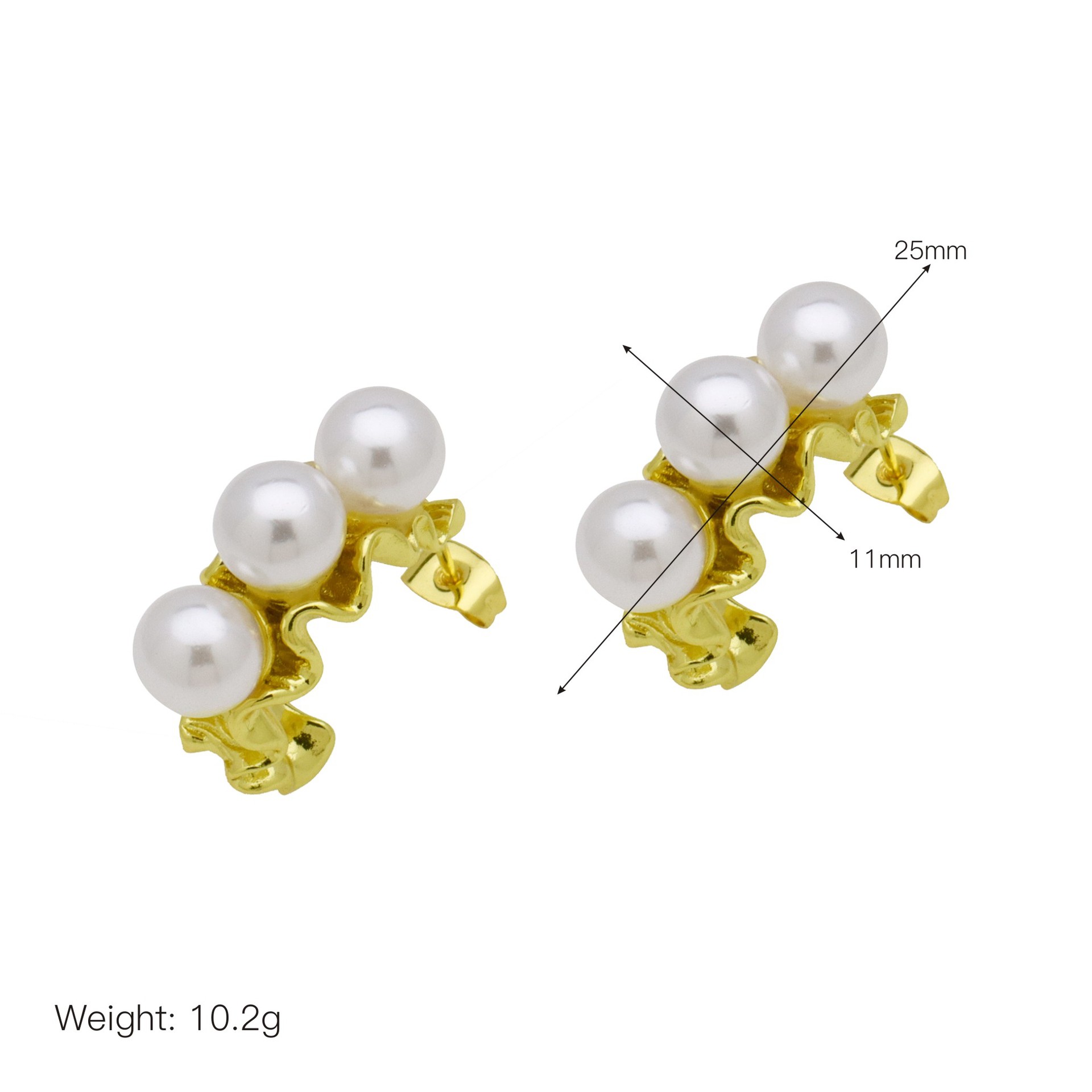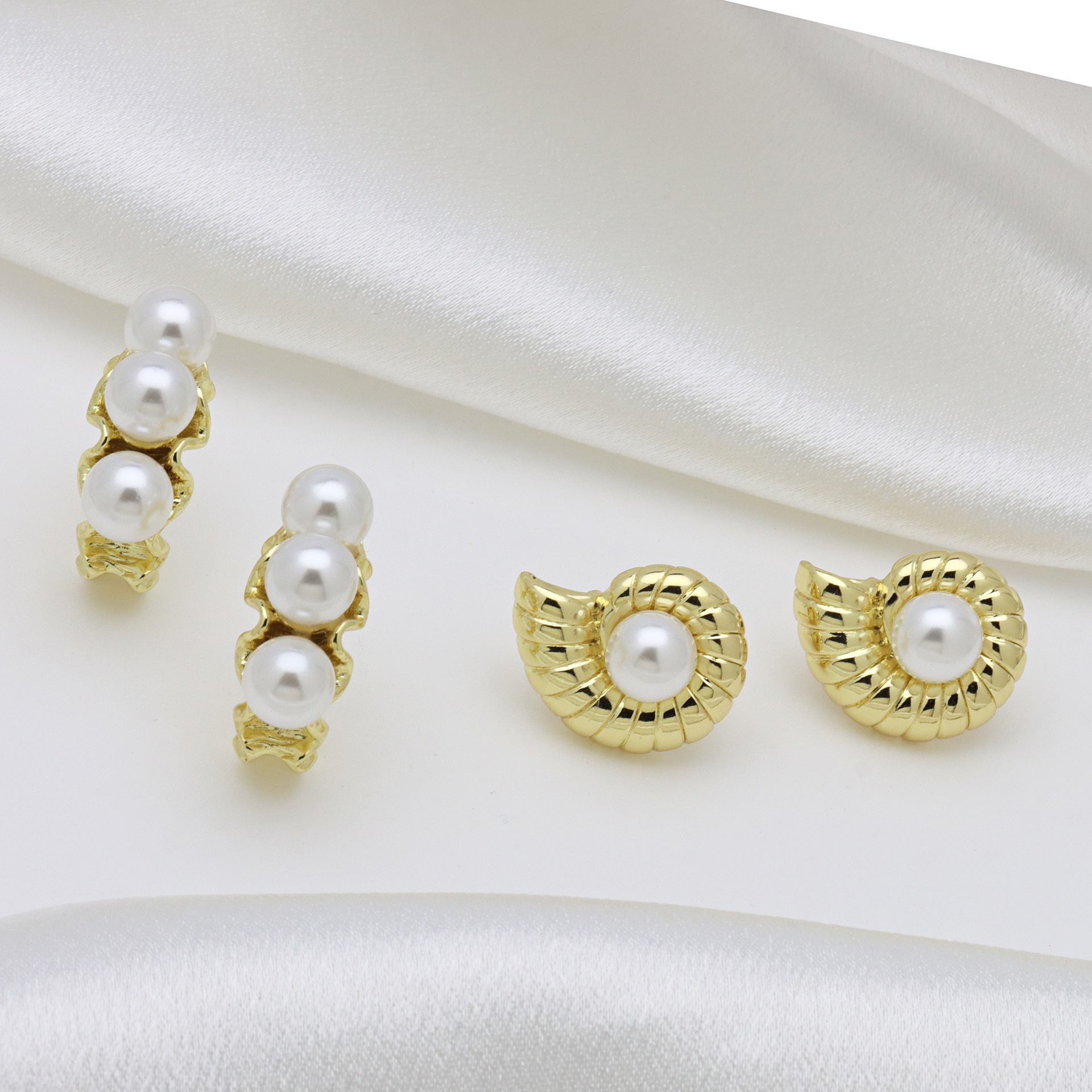 Goujon Laiton, avec perle de plastique, Placage de couleur d'or, styles différents pour le choix & pour femme, plus de couleurs à choisir, Vendu par paire