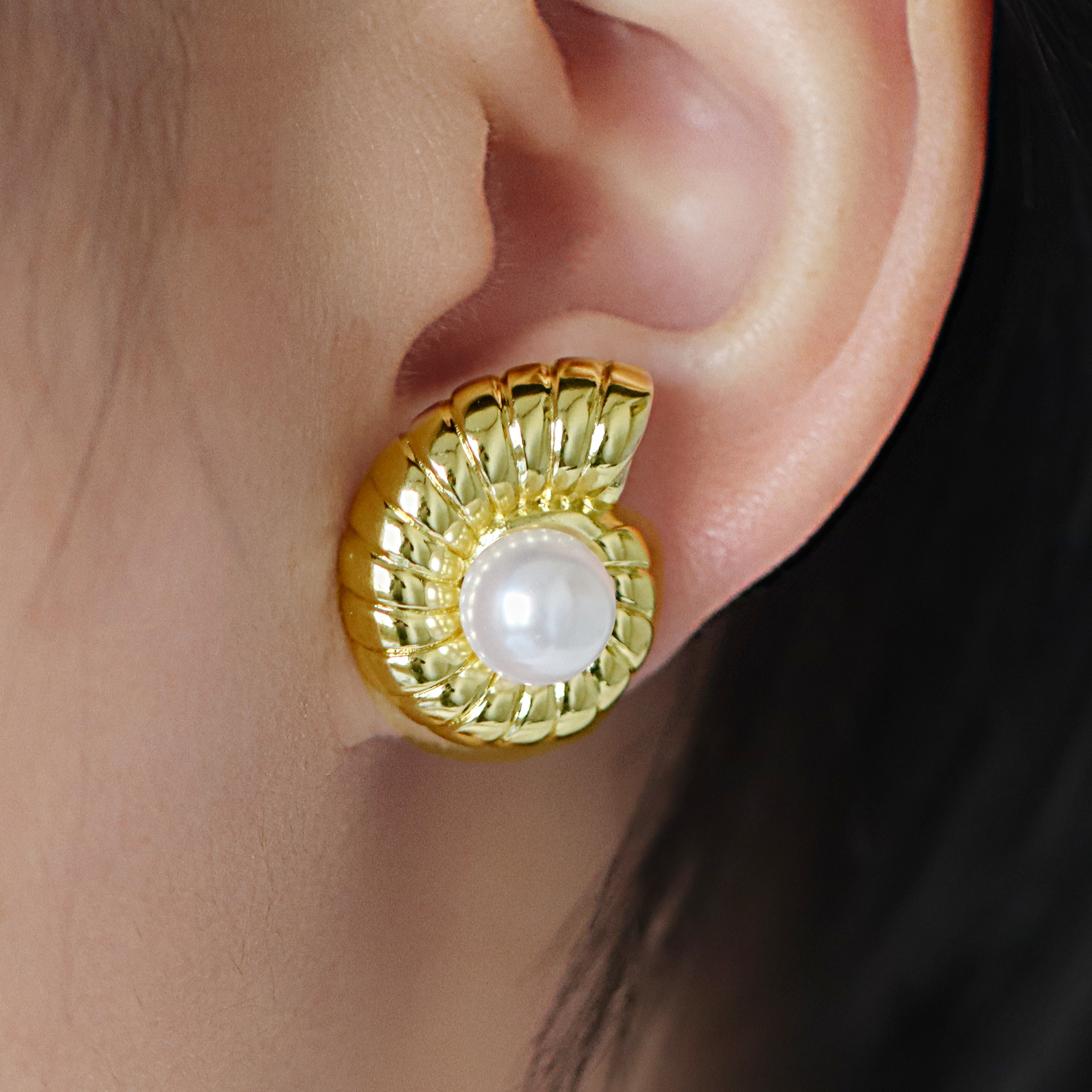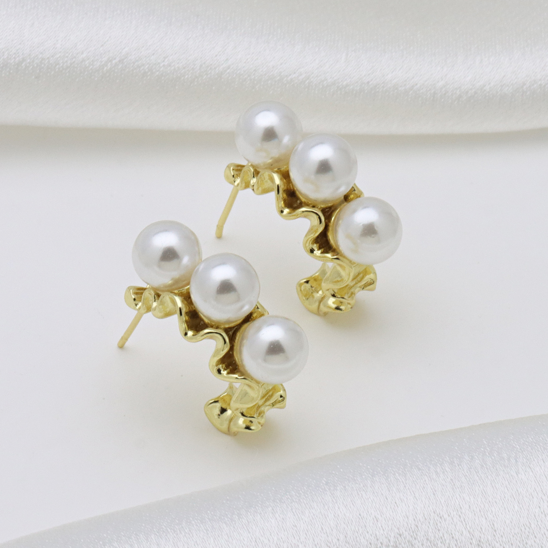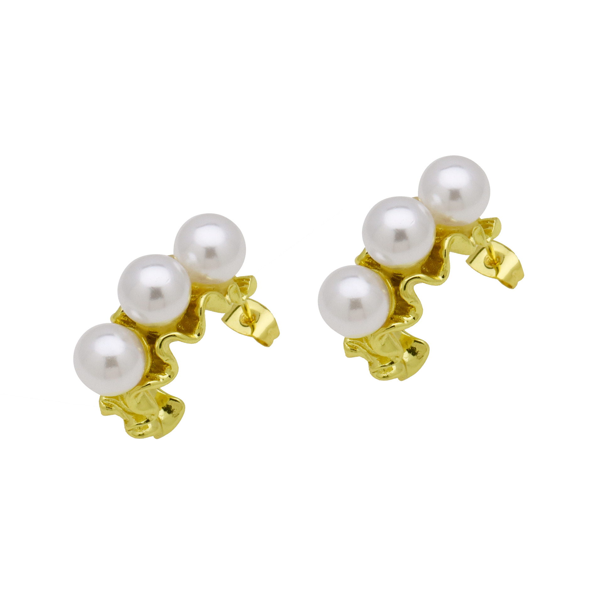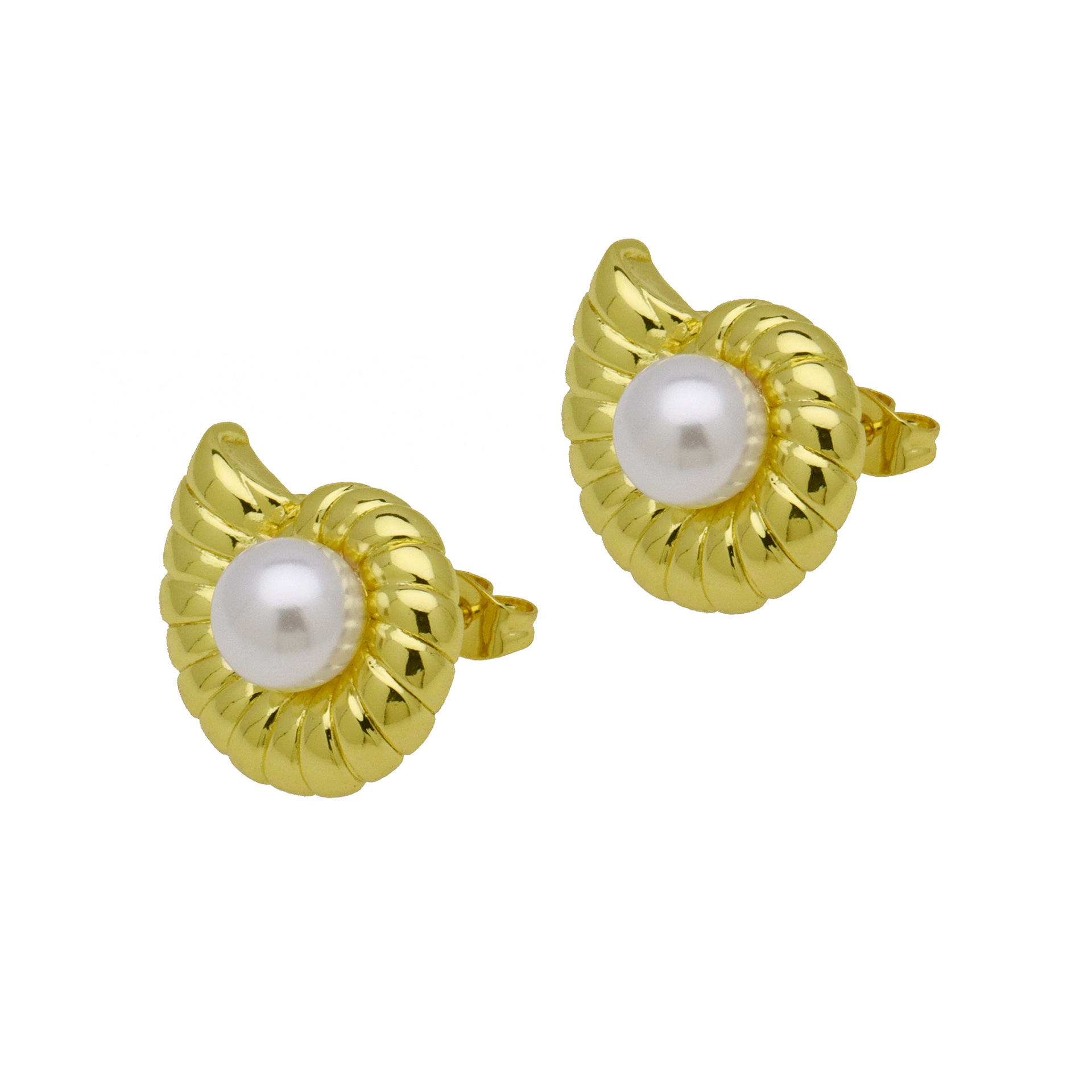 Goujon Laiton, avec perle de plastique, Placage de couleur d'or, styles différents pour le choix & pour femme, plus de couleurs à choisir, Vendu par paire