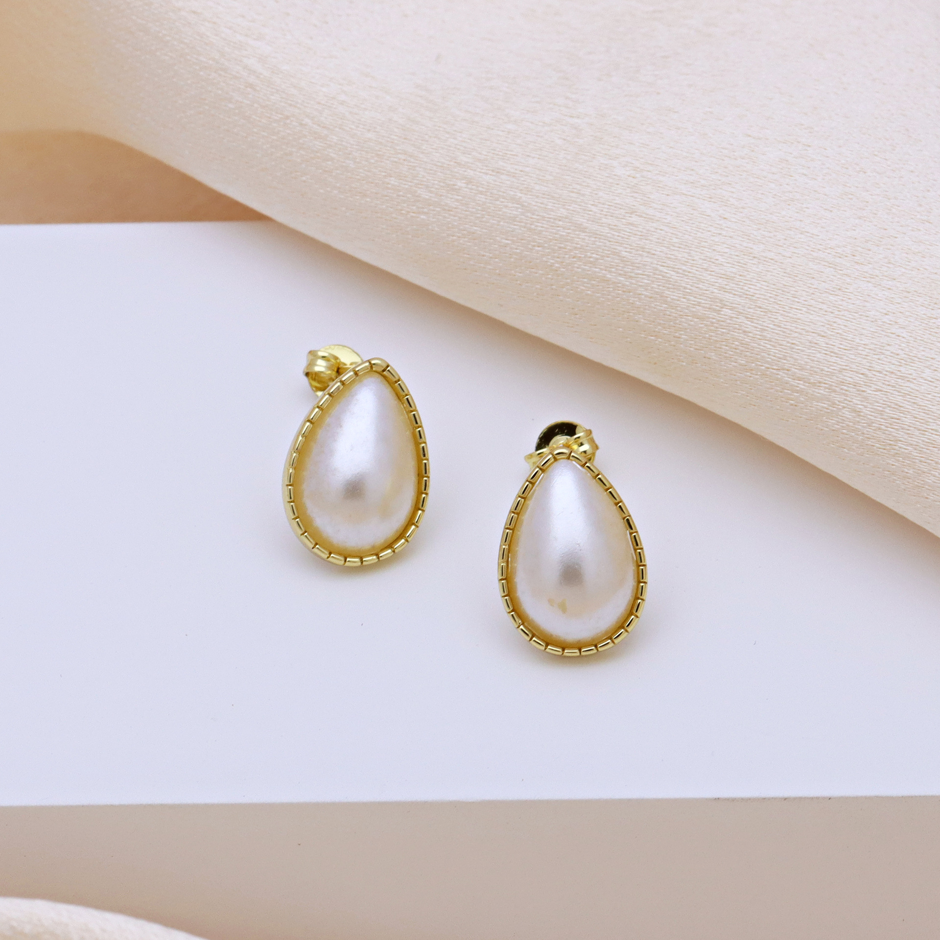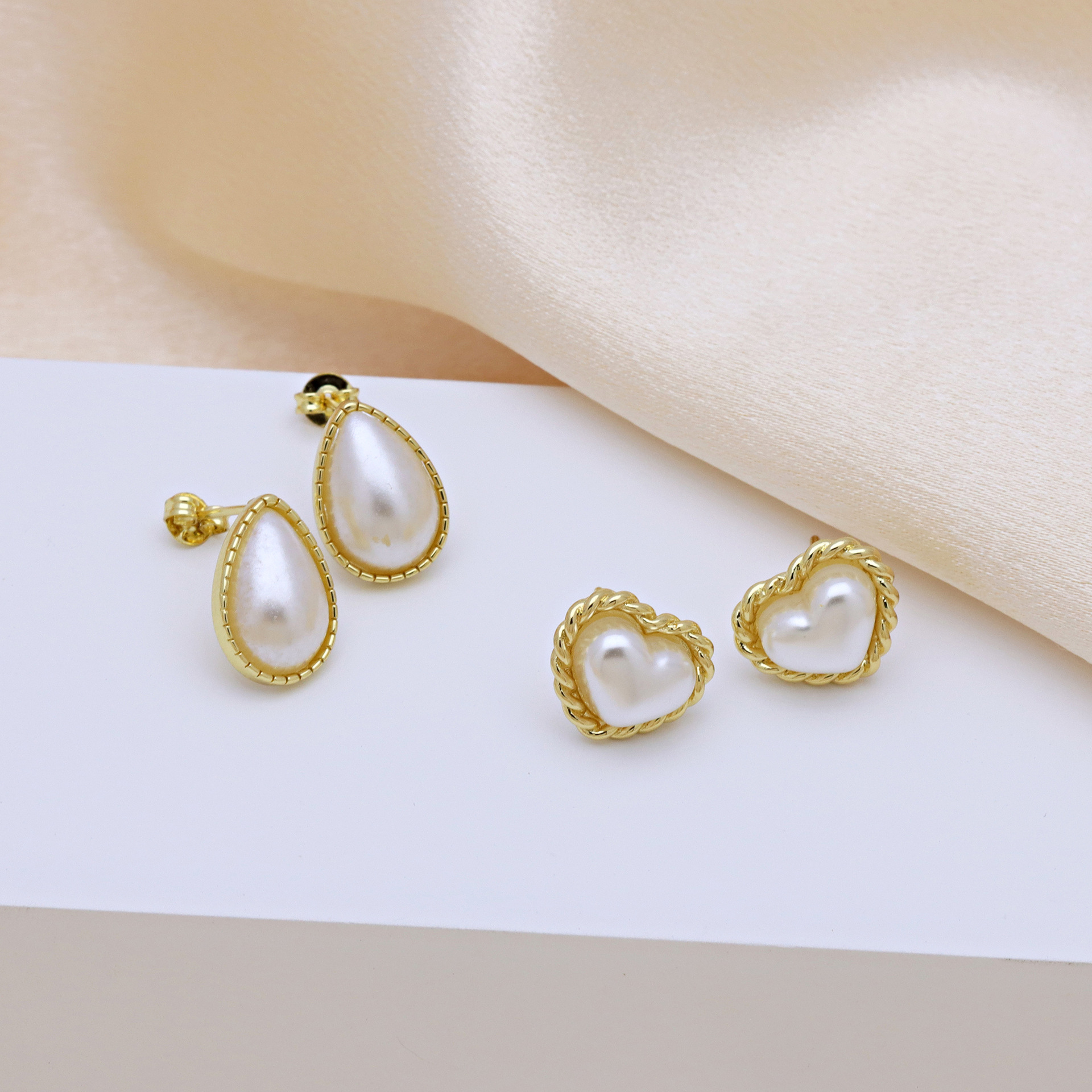 Goujon Laiton, avec perle de plastique, Placage de couleur d'or, styles différents pour le choix & pour femme, plus de couleurs à choisir, Vendu par paire