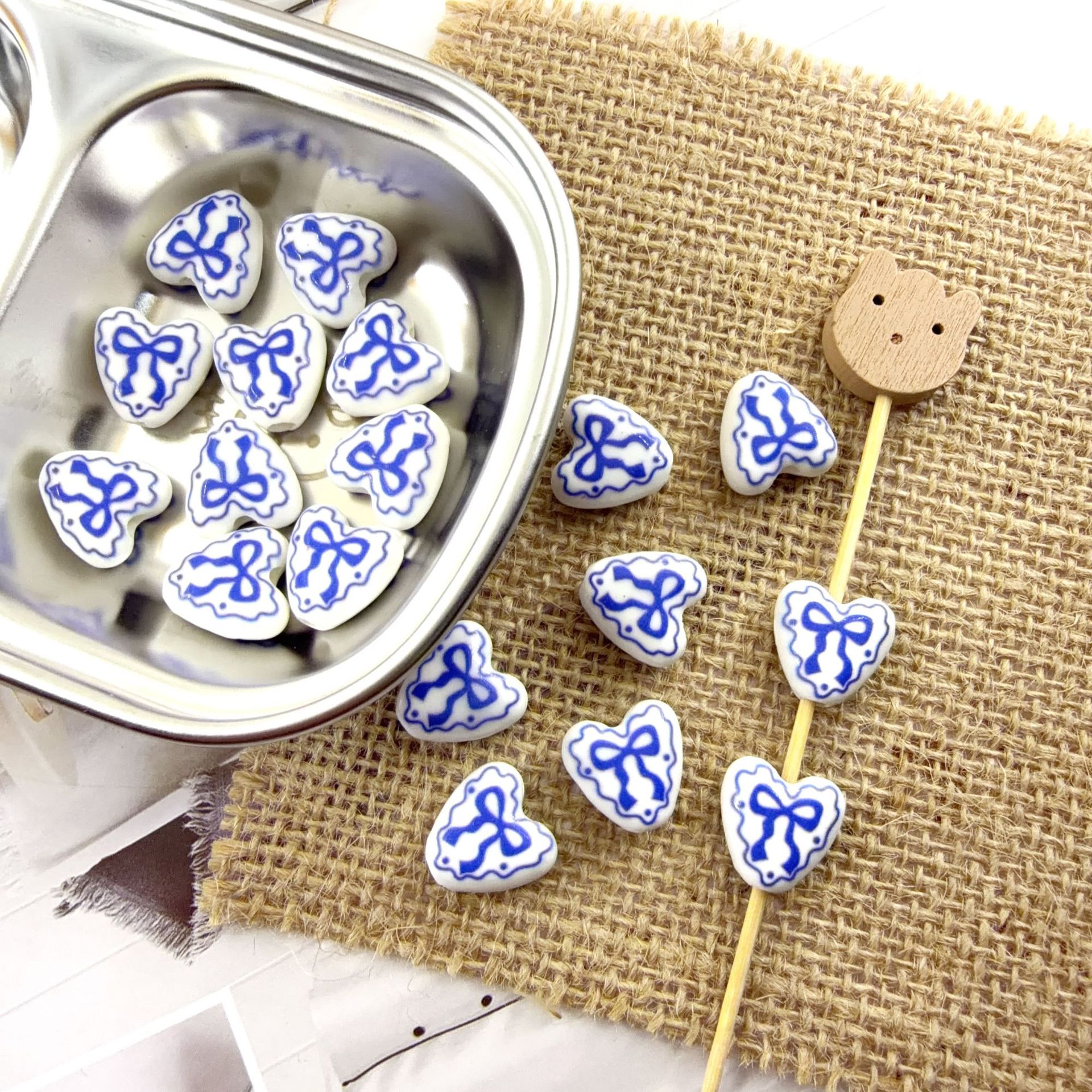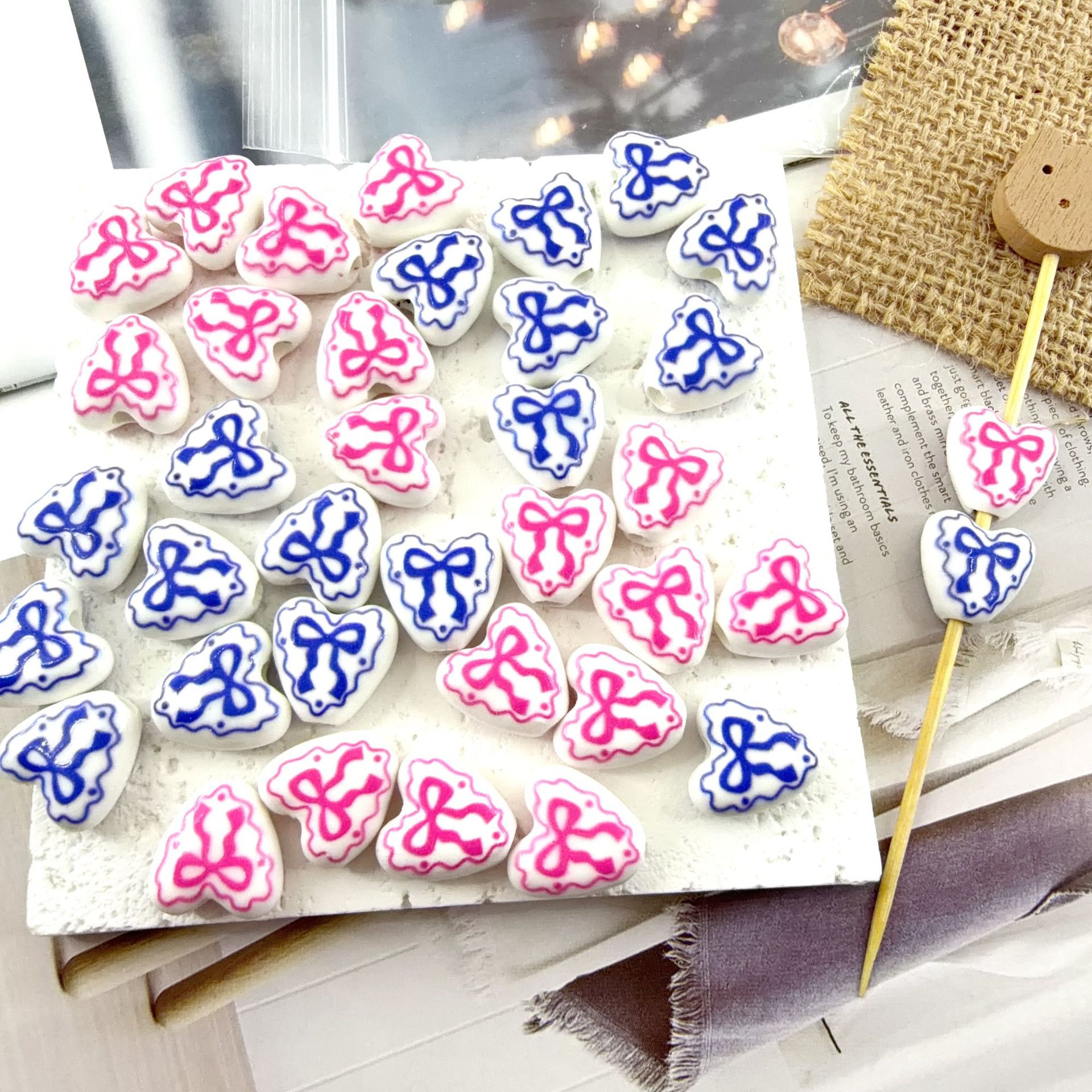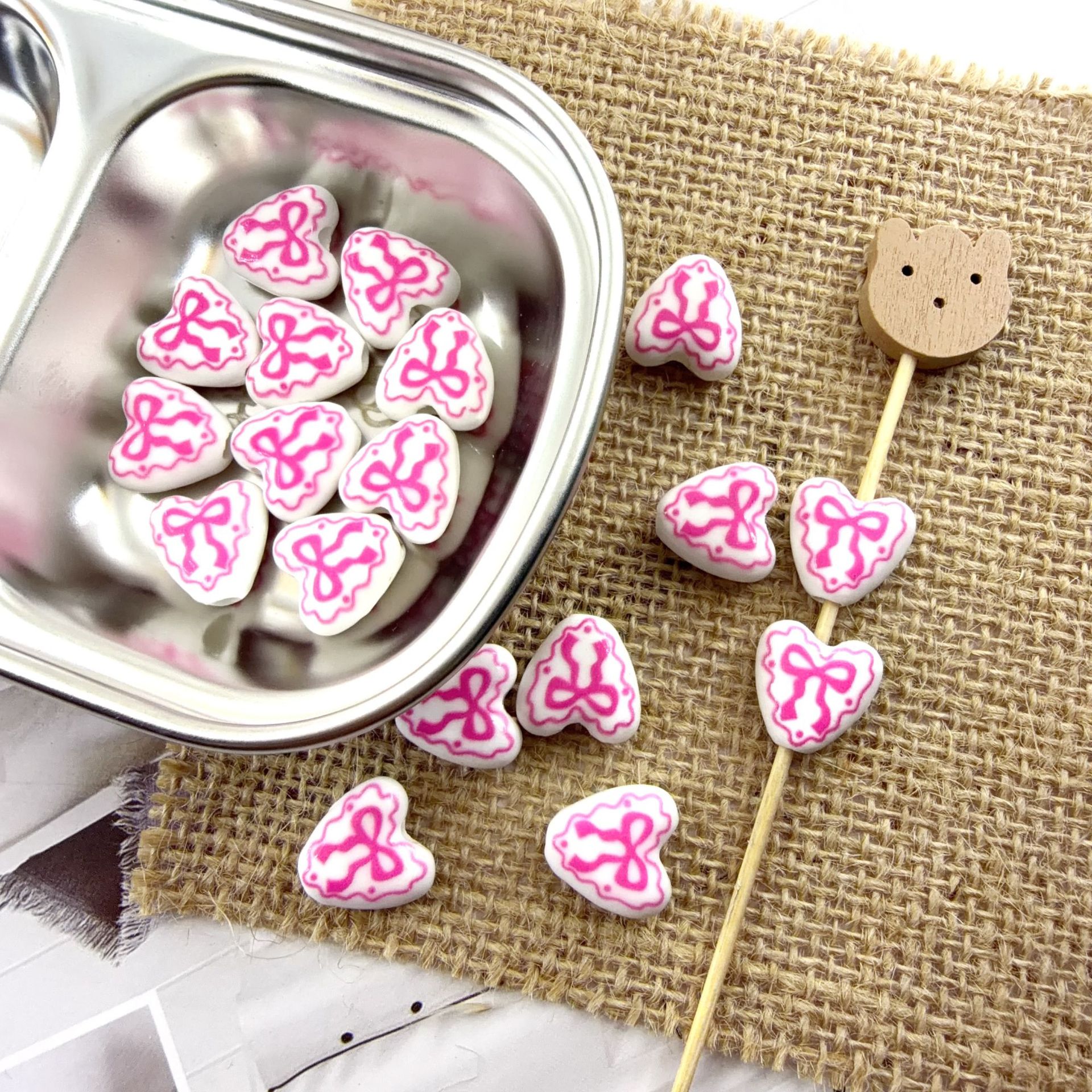 Impression de porcelaine, perles, porcelaine, coeur, dessiné à la main, DIY, plus de couleurs à choisir, 14x14.50mm, Trou:Environ 3mm, 100PC/sac, Vendu par sac