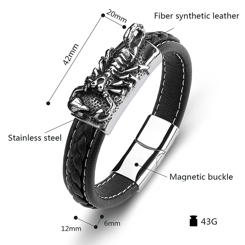 Microfibre PU bracelet, avec Acier inoxydable 304, scorpion, normes différentes pour le choix & pour homme, plus de couleurs à choisir, Vendu par PC