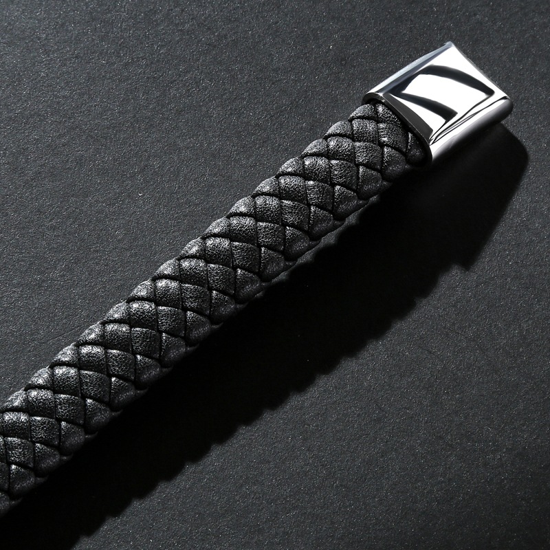 Bracelets cordon PU, Acier inoxydable 304, avec cuir PU, trois couches & longueur différente pour le choix & pour homme, noire, Vendu par PC