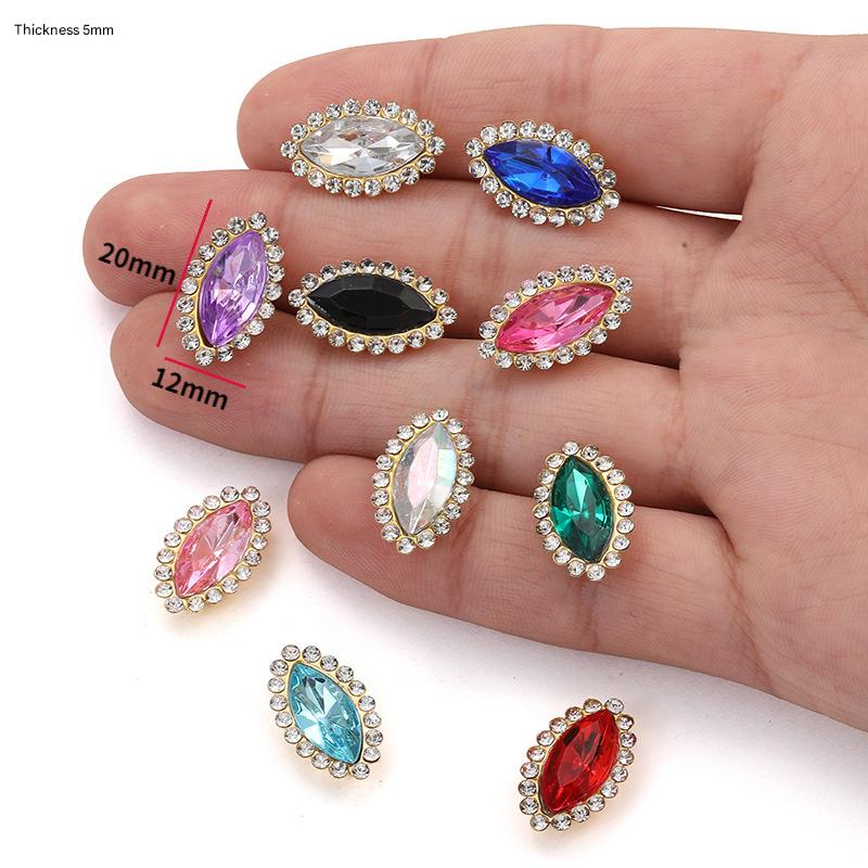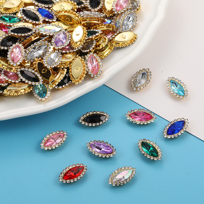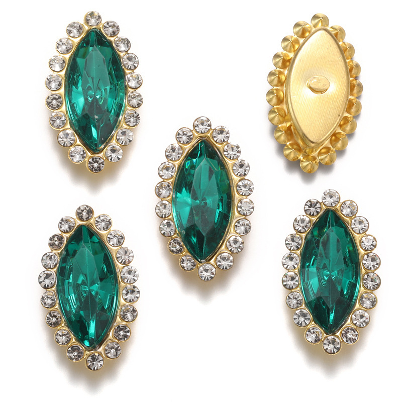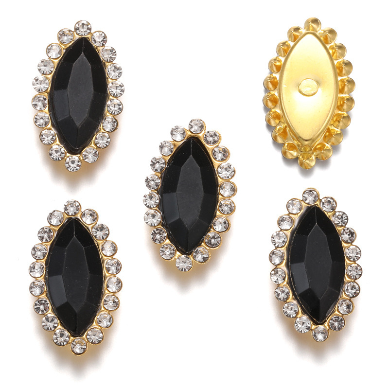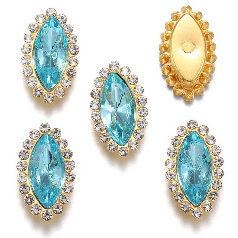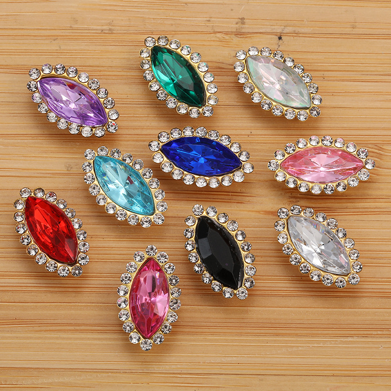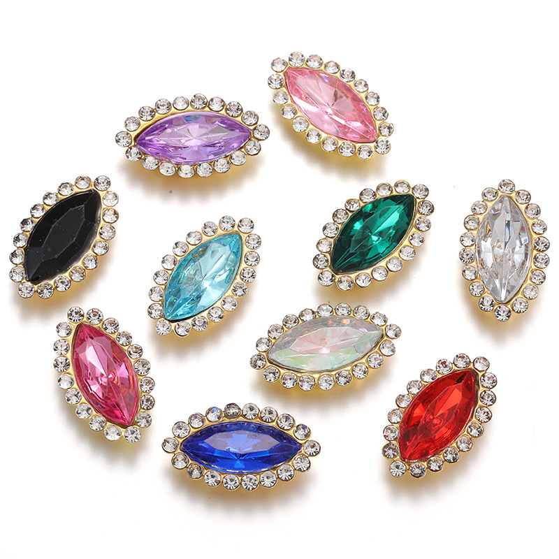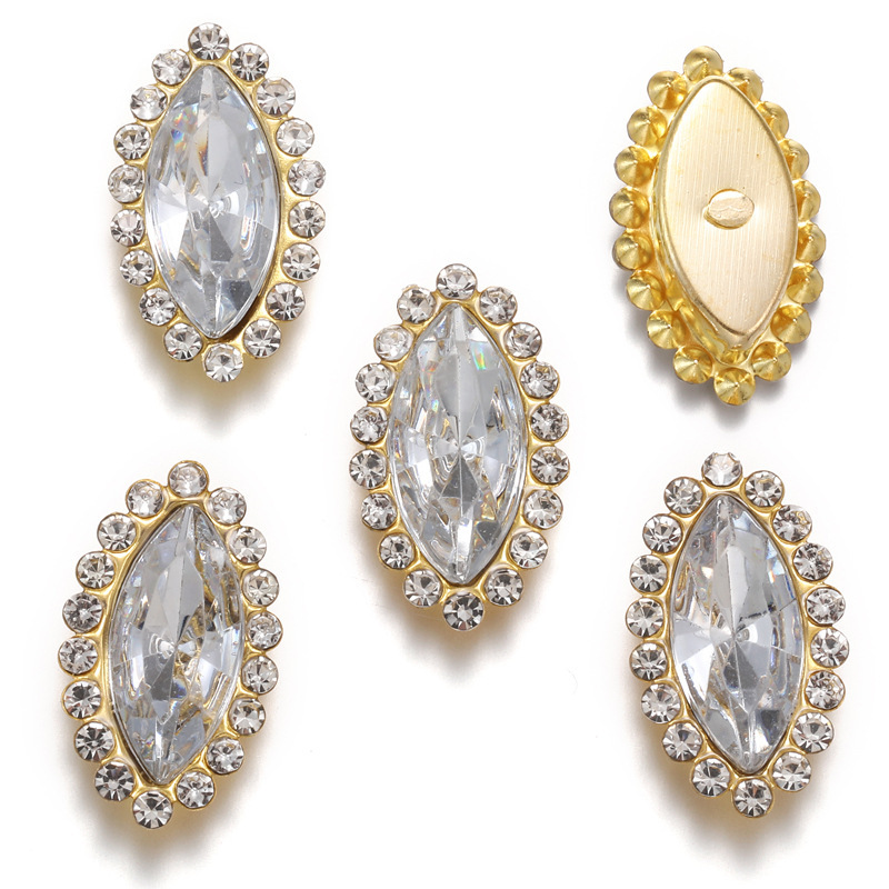 Mode Cabochons en résine, avec alliage de zinc, oeil de cheval, Placage de couleur d'or, DIY & avec strass, plus de couleurs à choisir, 12x20x5mm, Environ 100PC/sac, Vendu par sac