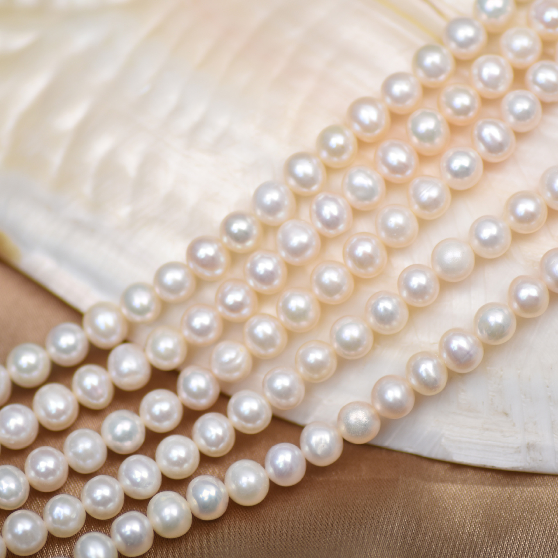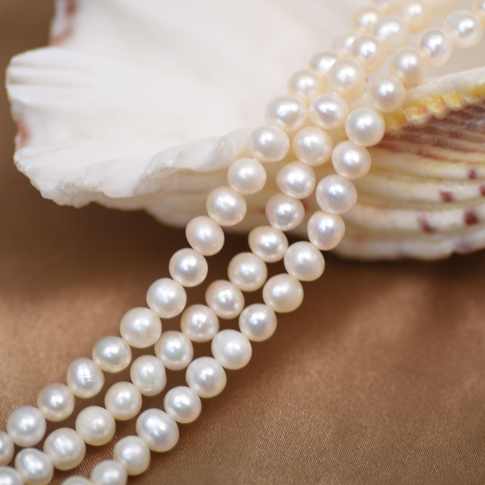 Naturel d'eau douce perles, perle d'eau douce cultivée, Légèrement rond, DIY, blanc, 5-6mm, Vendu par 36 cm brin
