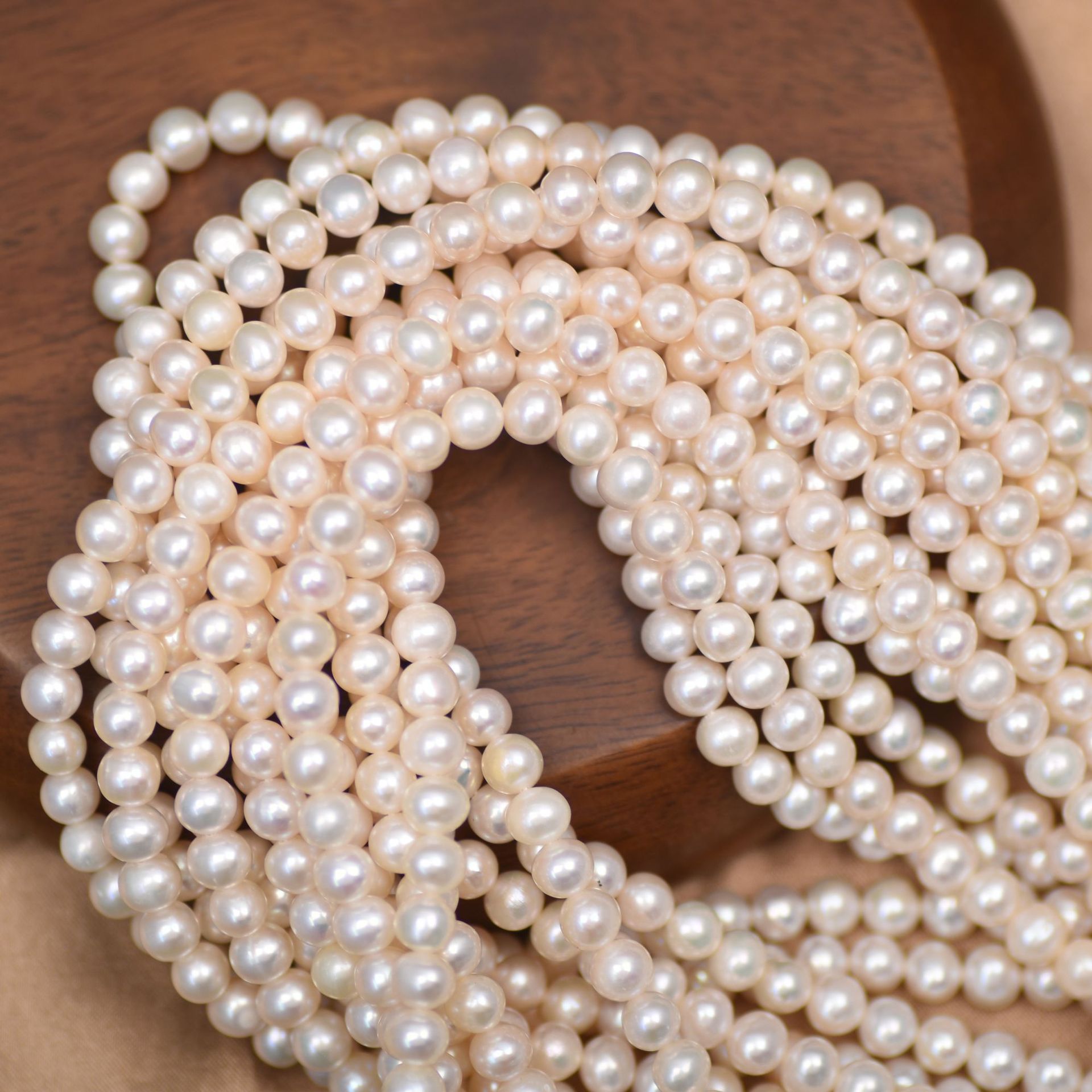 Naturel d'eau douce perles, perle d'eau douce cultivée, Rond, DIY, blanc, 4-5mm, Vendu par 38 cm brin