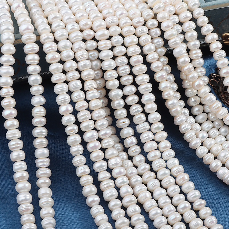 Naturel d'eau douce perles, perle d'eau douce cultivée, Rond, DIY, blanc, 4-5mm, Vendu par 38 cm brin