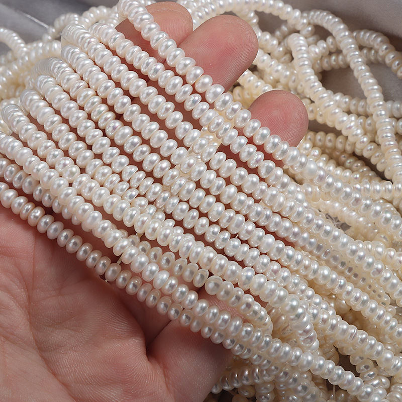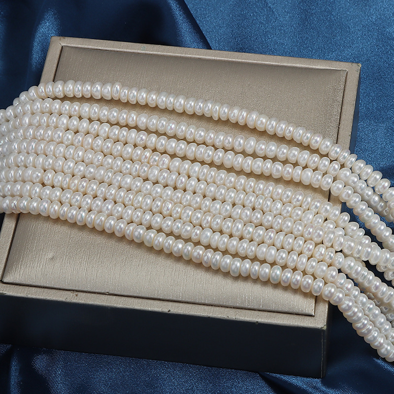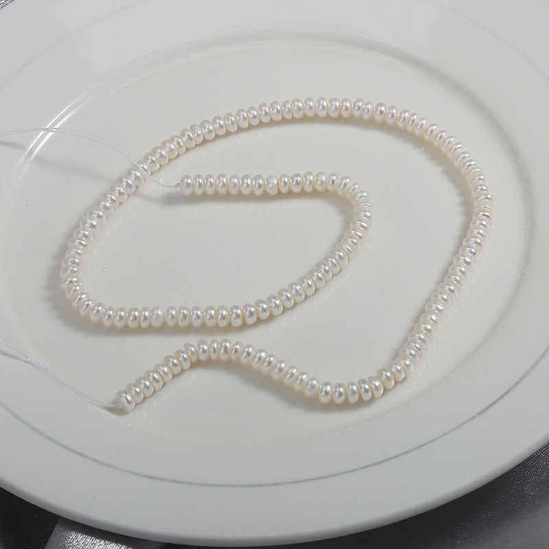 Naturel d'eau douce perles, perle d'eau douce cultivée, ovale plat, DIY, blanc, 4-5mm, Vendu par 38 cm brin