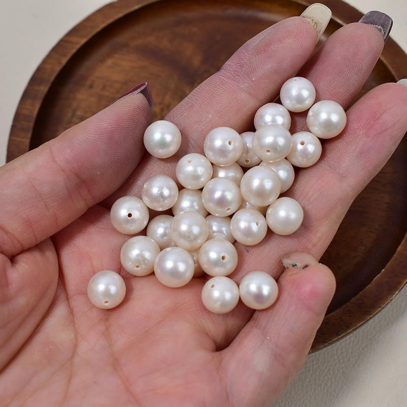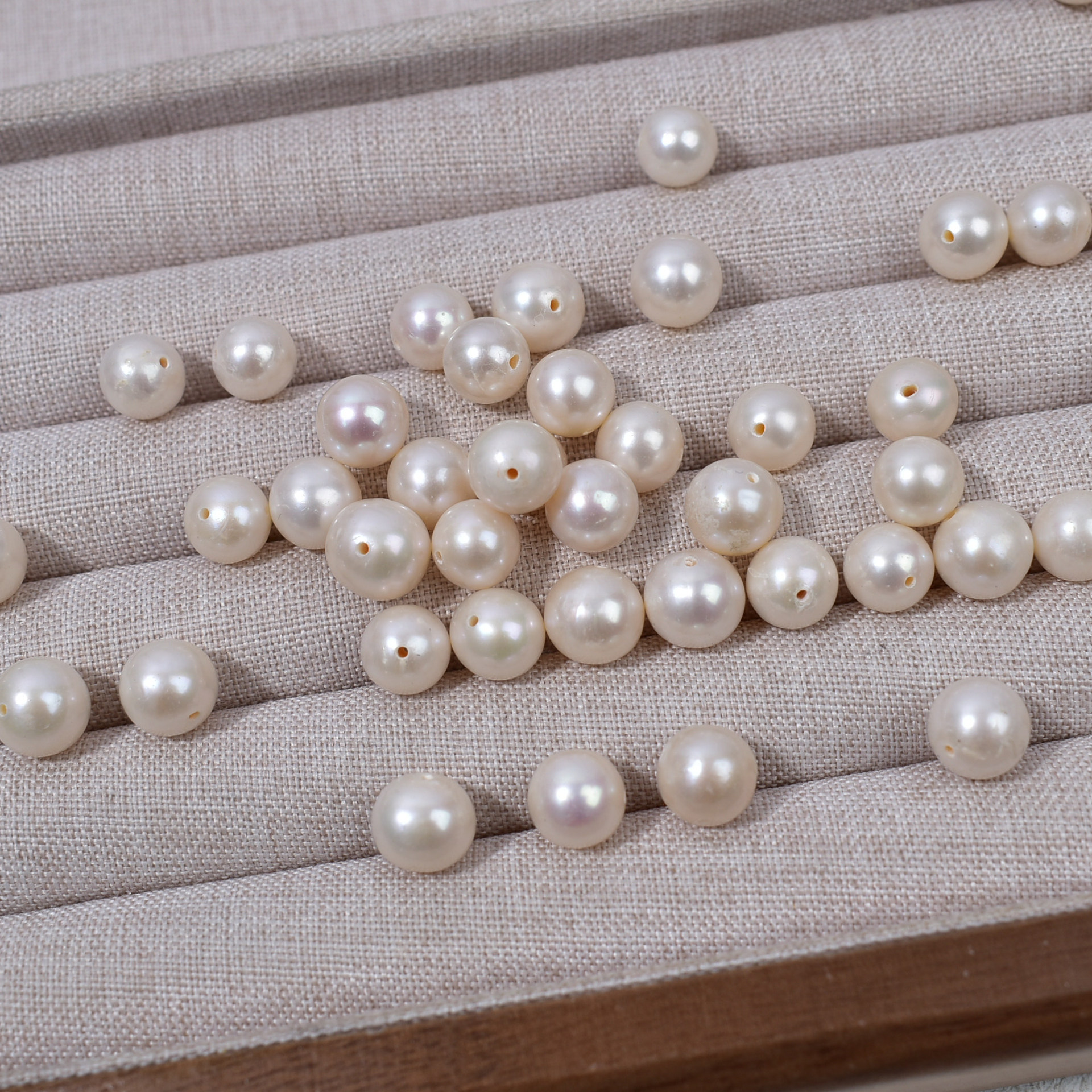 Naturel d'eau douce perles, perle d'eau douce cultivée, Légèrement rond, DIY, blanc, 9-10mm, Vendu par brin