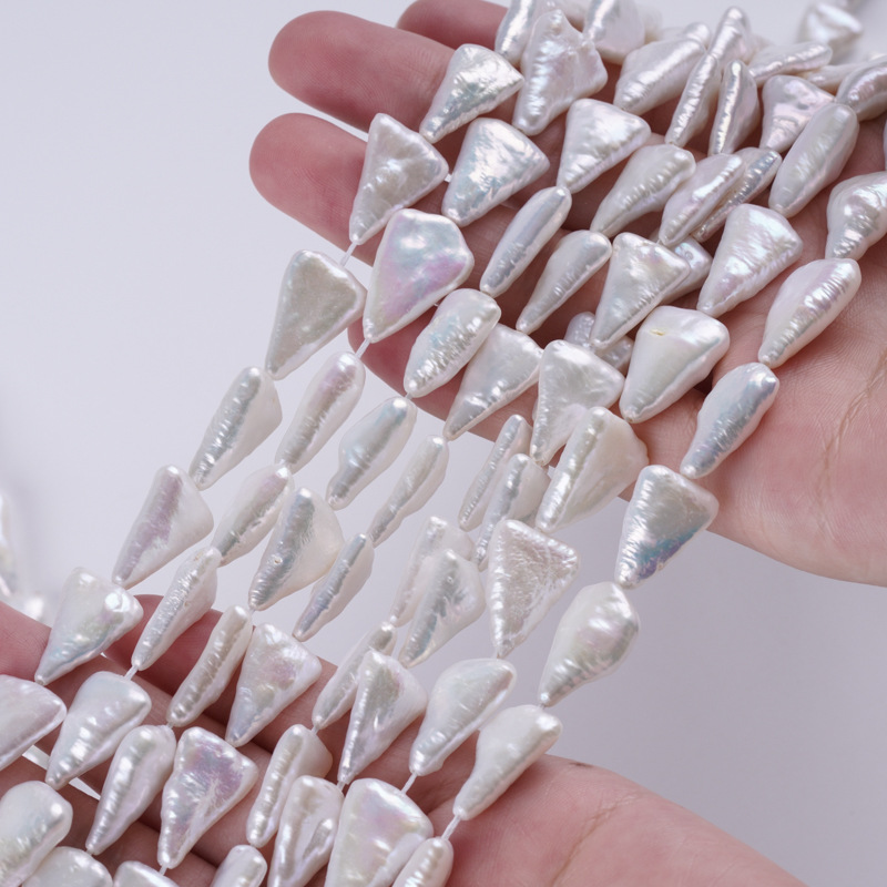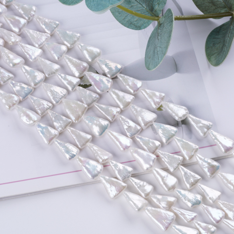 Naturel d'eau douce perles, perle d'eau douce cultivée, triangle, DIY, blanc, 10-13mm, Vendu par 36 cm brin