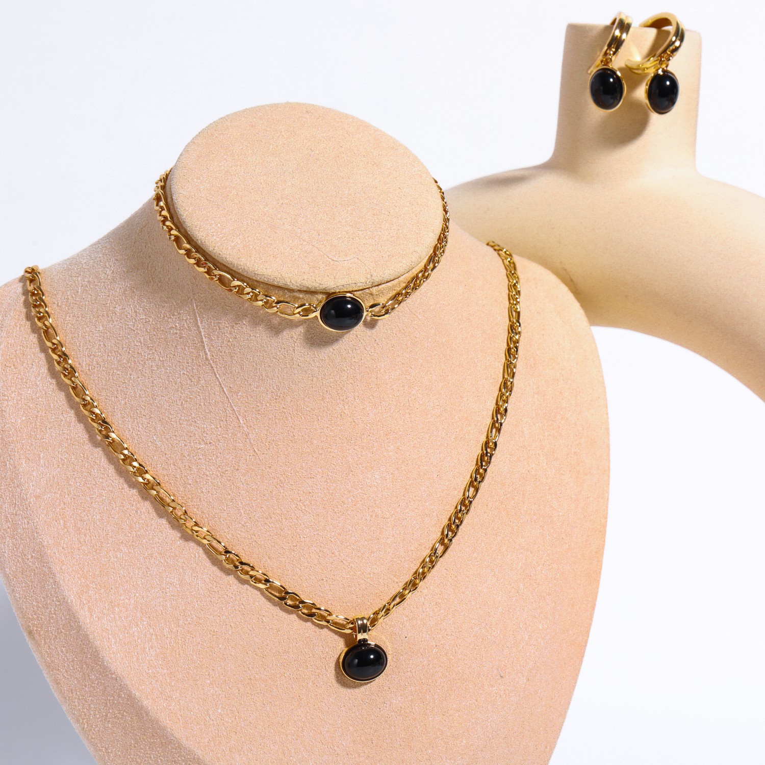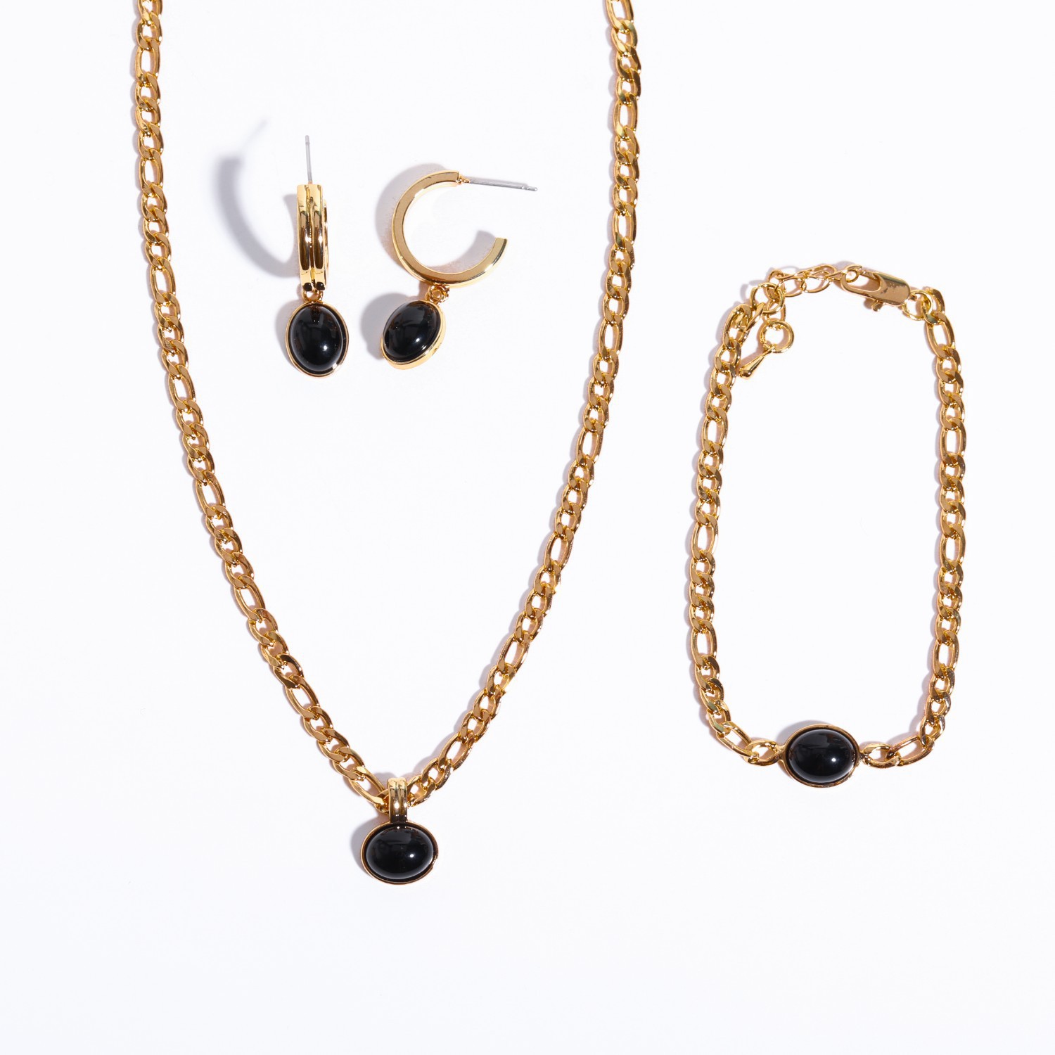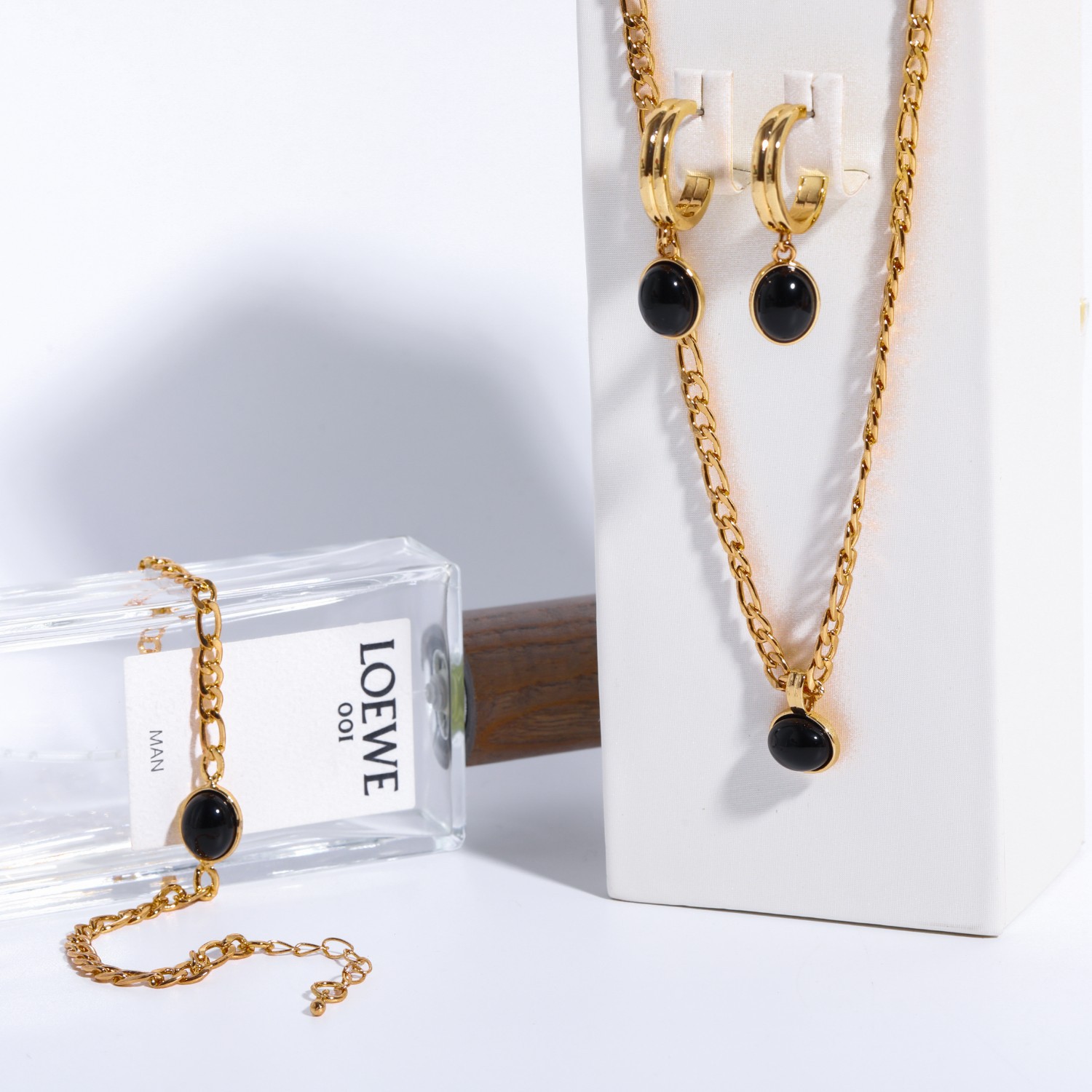 1:Black single-layer necklace2:Black Earrings3:3mm paper clip chain 40 5cm4:Black Bracelet