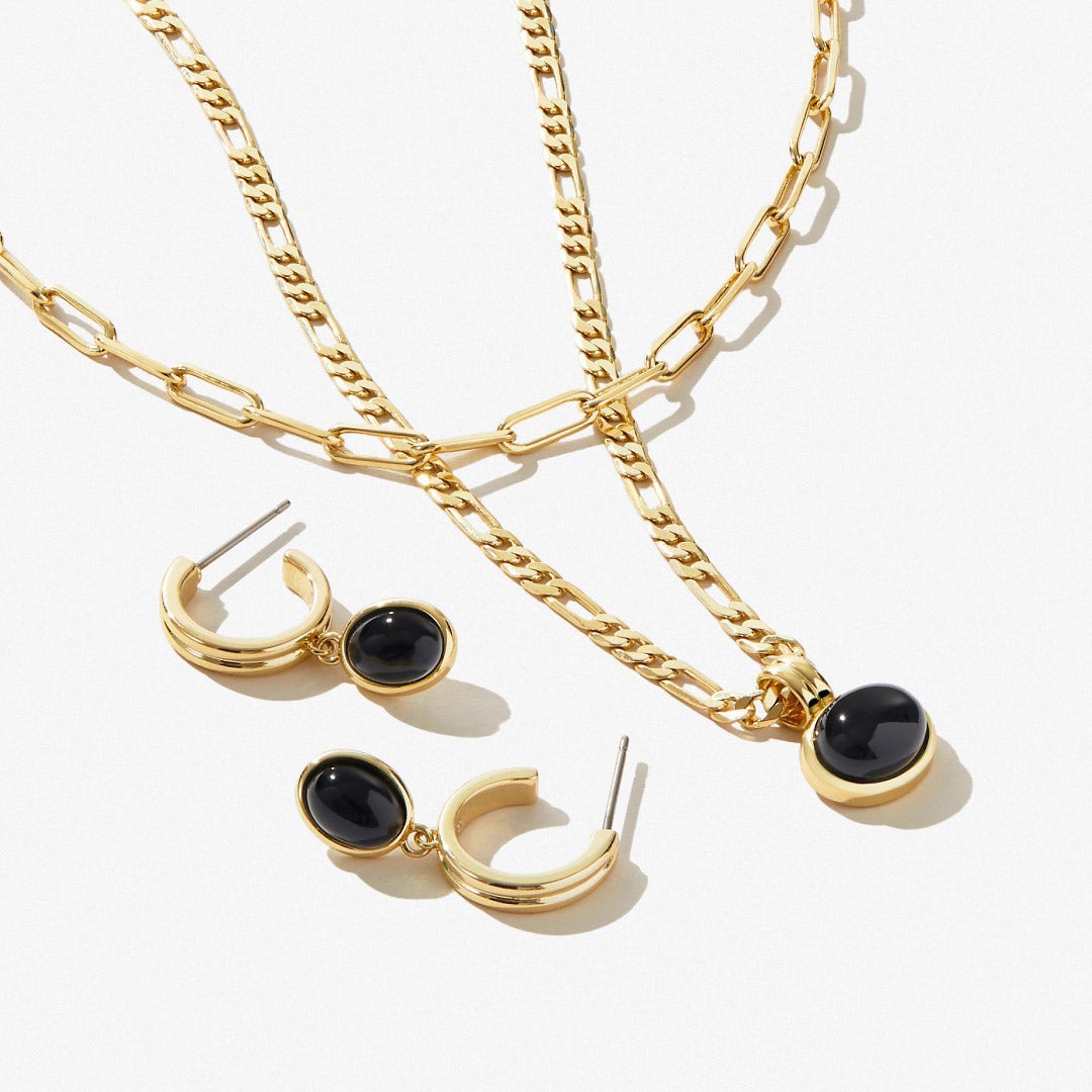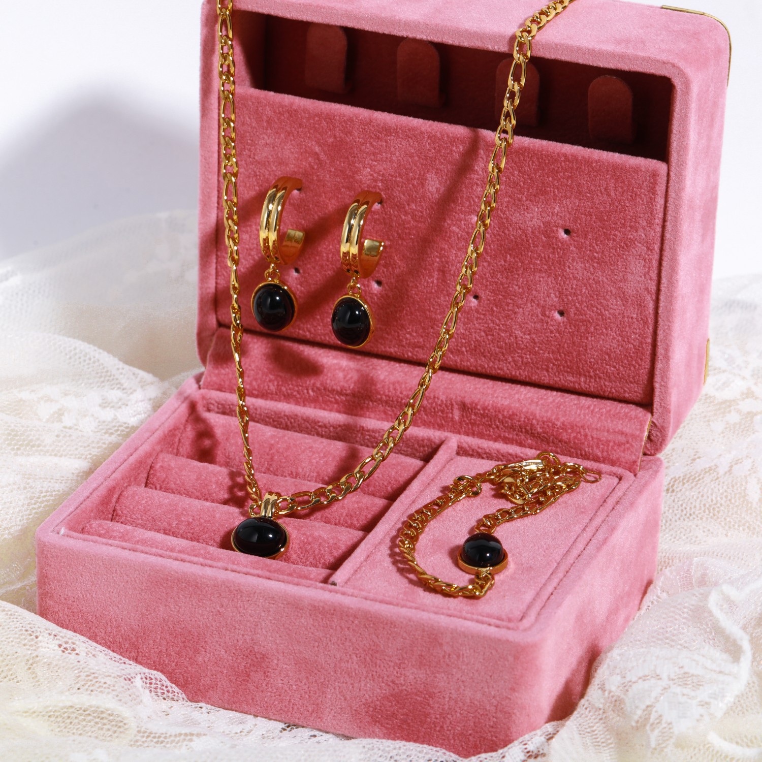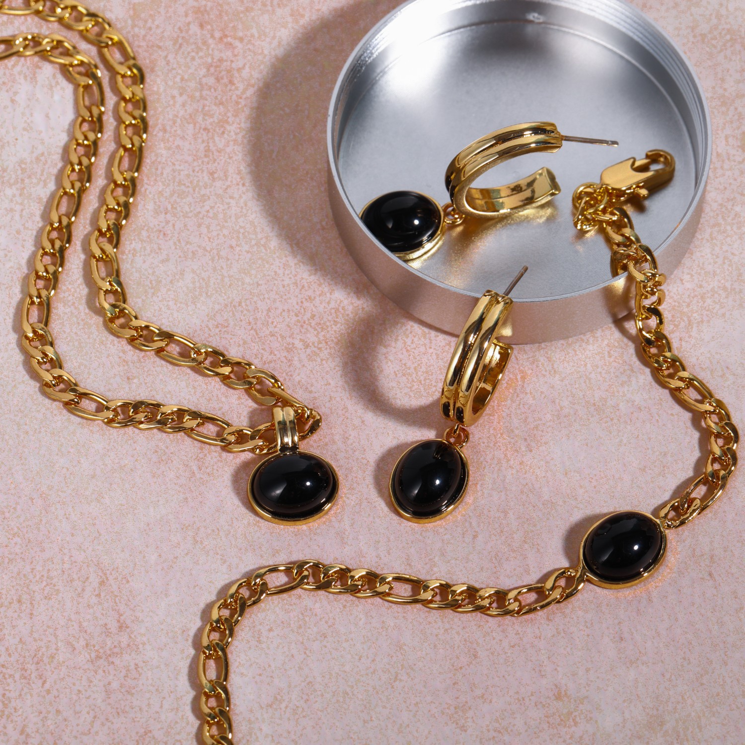 1:Black single-layer necklace2:Black Earrings3:3mm paper clip chain 40 5cm4:Black Bracelet