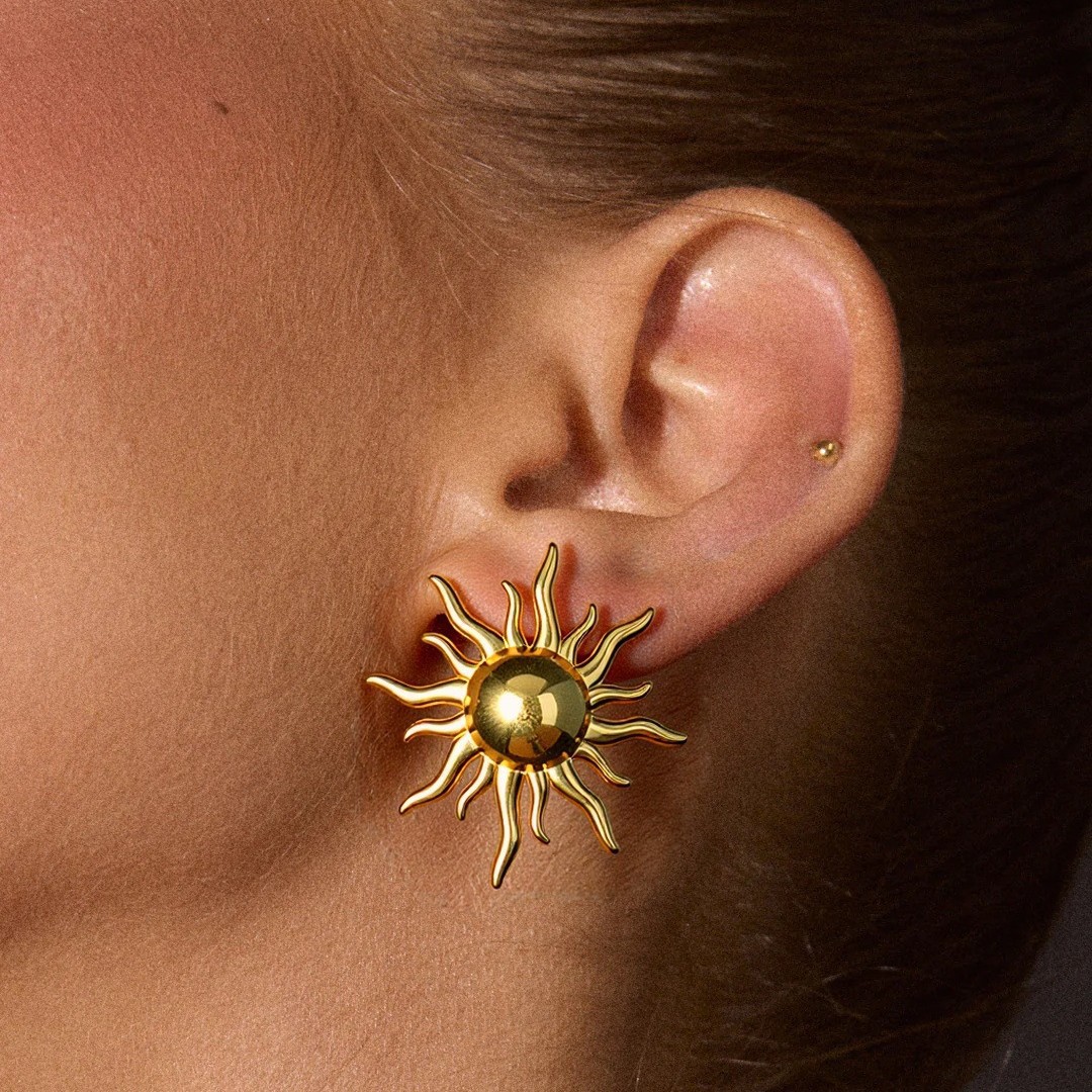 Parures de bijoux en acier inoxydable, Boucle d’oreille stud & collier, Acier inoxydable 304, soleil, Placage, bijoux de mode, plus de couleurs à choisir, Vendu par paire