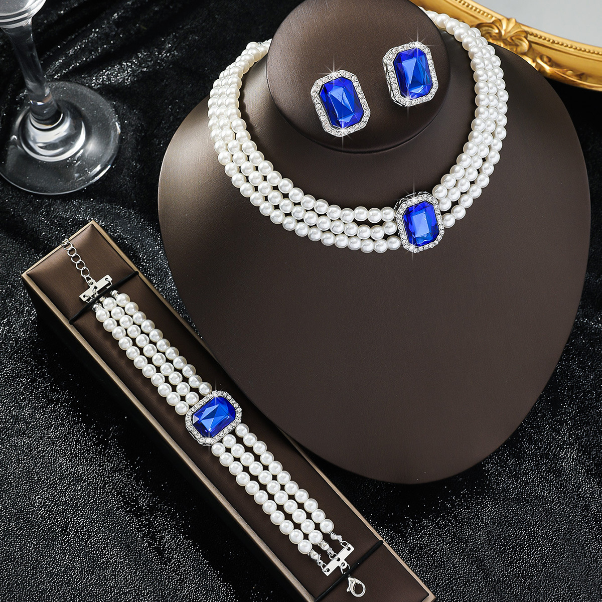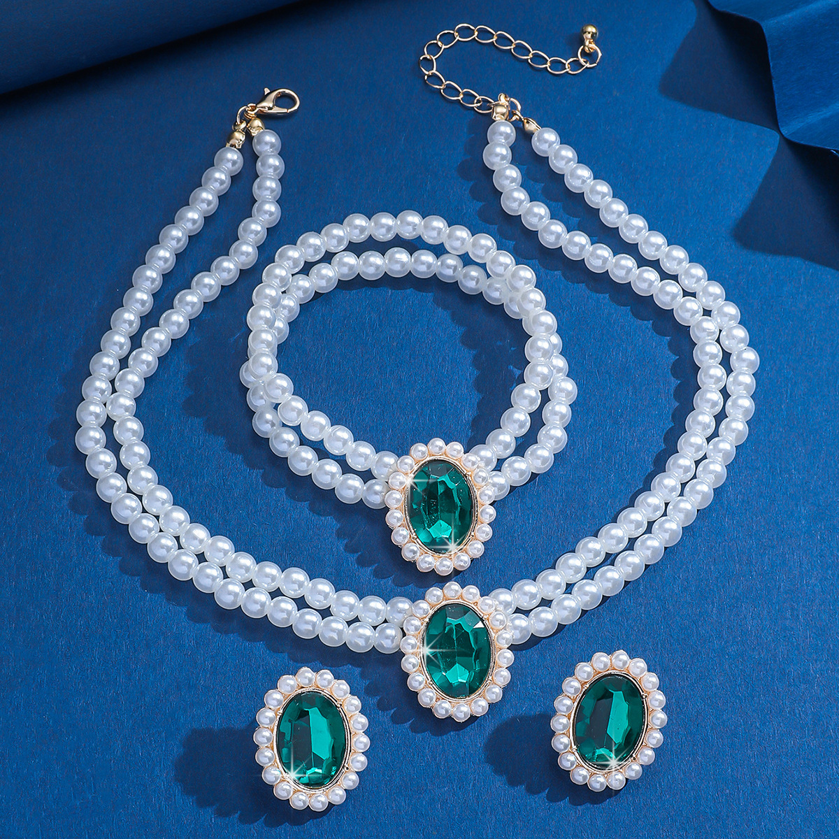 Parures de bijoux strass, Plastique ABS perle, avec verre, Placage, trois pièces & bijoux de mode & avec strass, plus de couleurs à choisir, Vendu par fixé