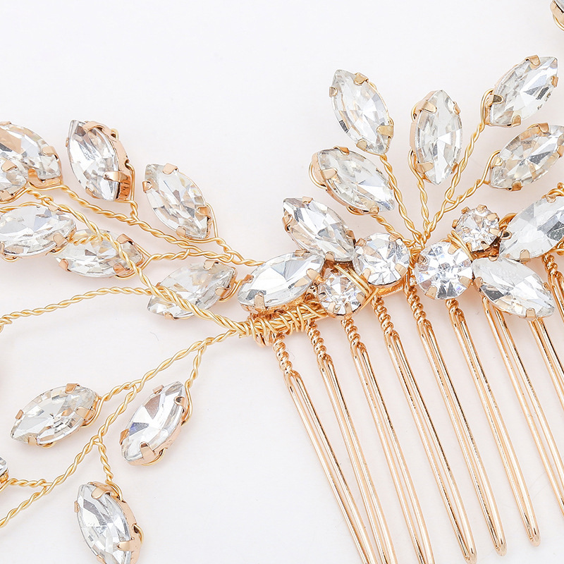 Peignes décoratifs, alliage de zinc, avec fil en laiton & strass, fait à la main, bijoux de mode & pour femme, doré, 150x80x80mm, Vendu par PC