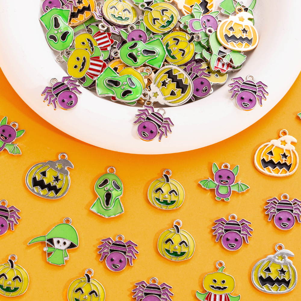 Pendant Halloween Fashion, alliage de zinc, Placage de couleur argentée, Halloween Design & DIY & normes différentes pour le choix & lumineux & émail, plus de couleurs à choisir, protéger l'environnement, sans nickel, plomb et cadmium, Environ 100PC/sac, Vendu par sac