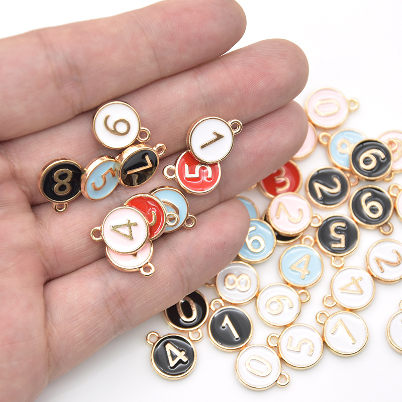 Pendentif alphabet en zinc, alliage de zinc, Plat rond, Placage de couleur d'or, DIY & modèles différents pour le choix & émail, plus de couleurs à choisir, 14x12mm, Vendu par PC