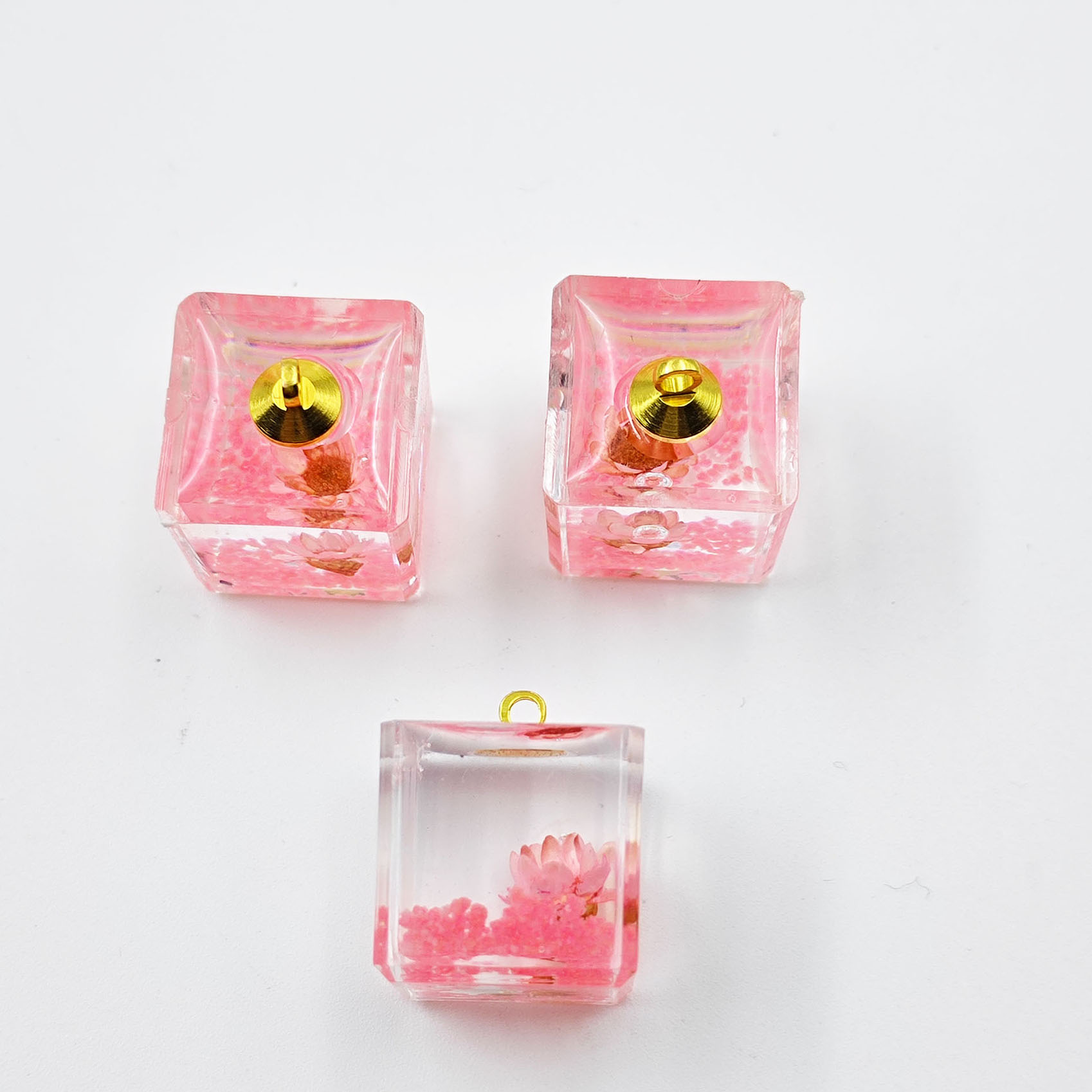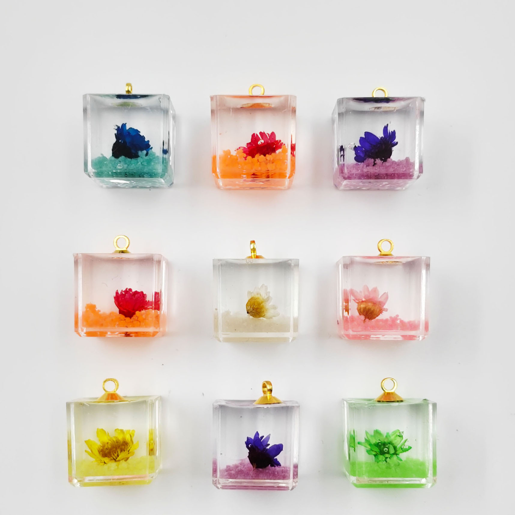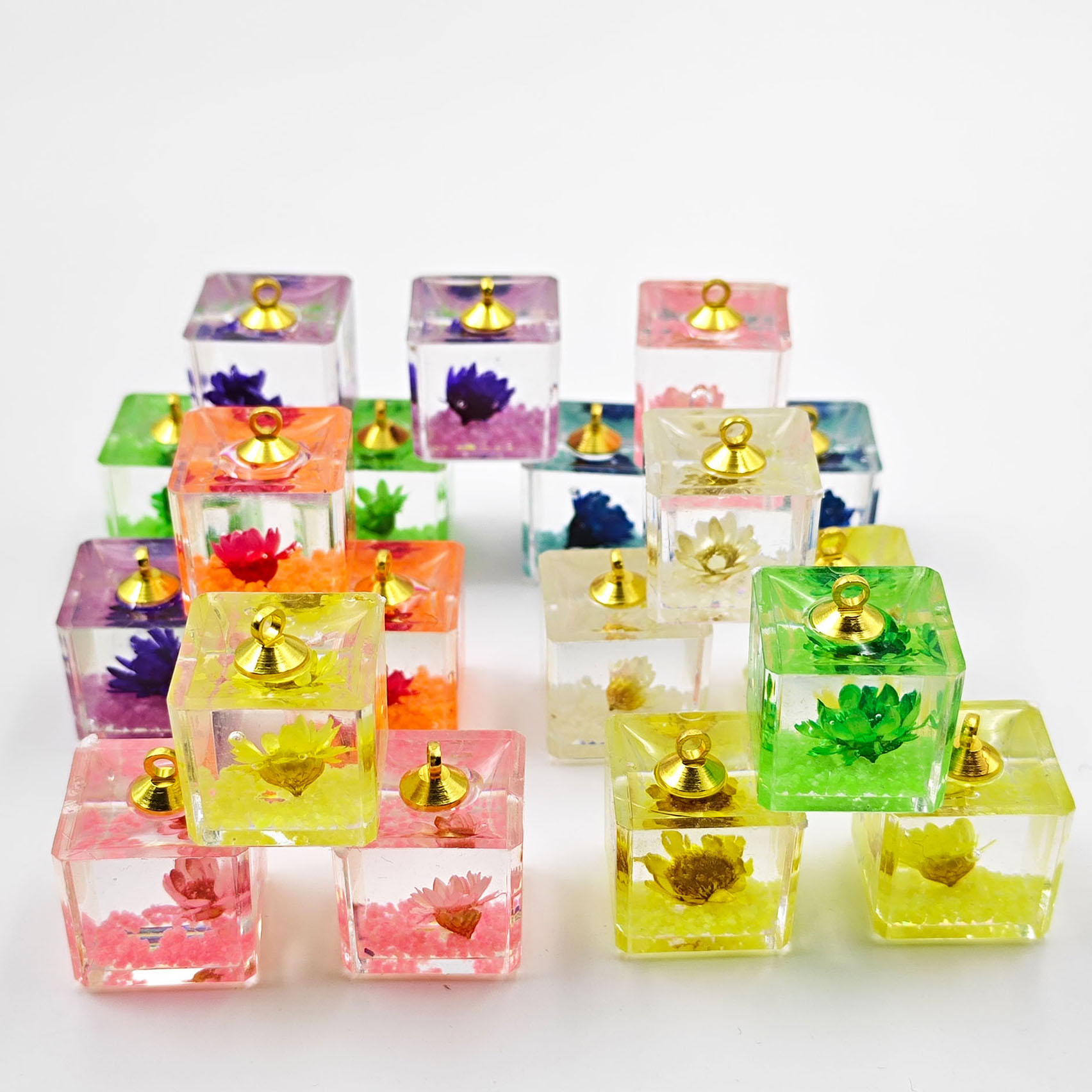 Pendentif en résine, avec fer, cube, goutté d'époxy, DIY & lumineux, plus de couleurs à choisir, 16x16mm, Environ 100PC/sac, Vendu par sac