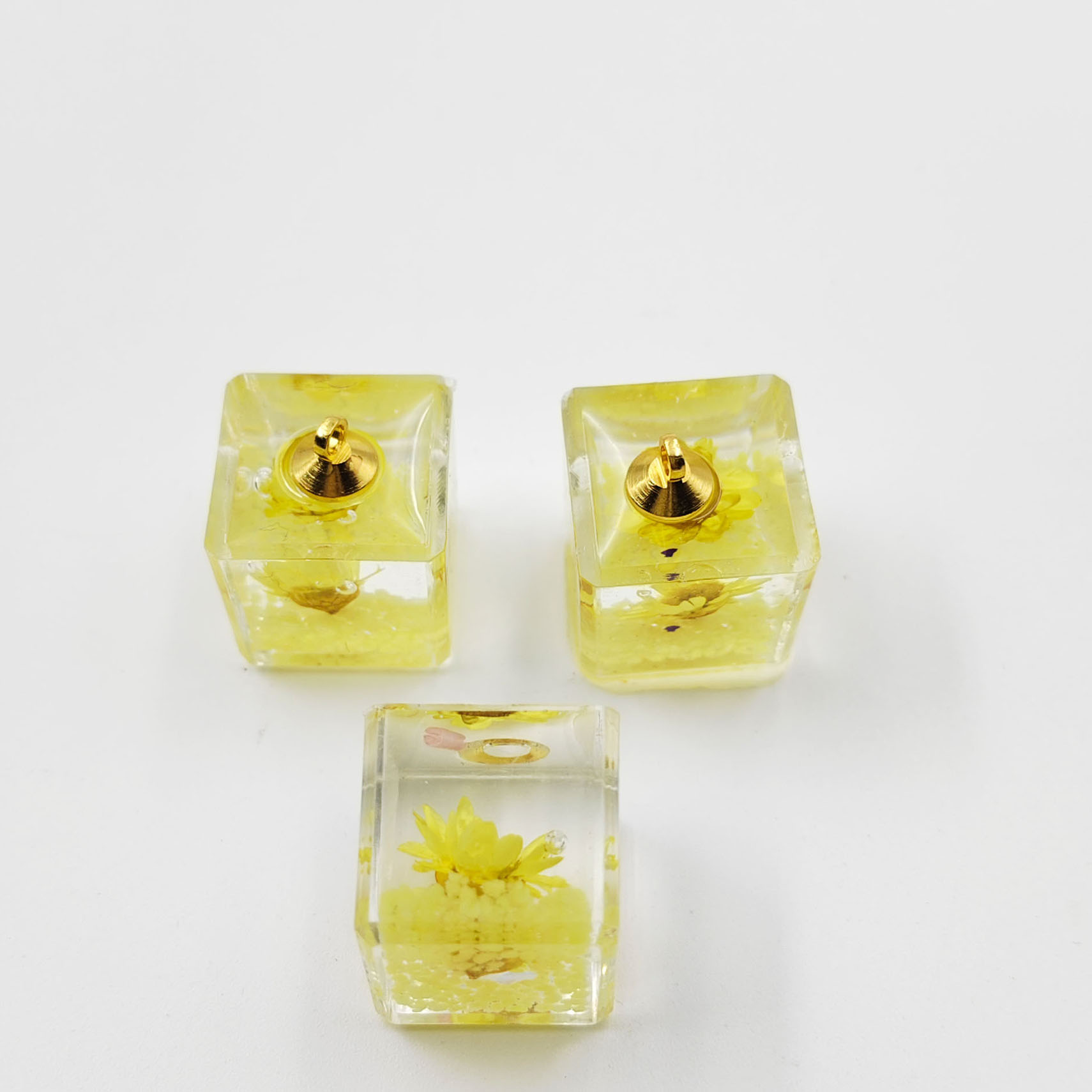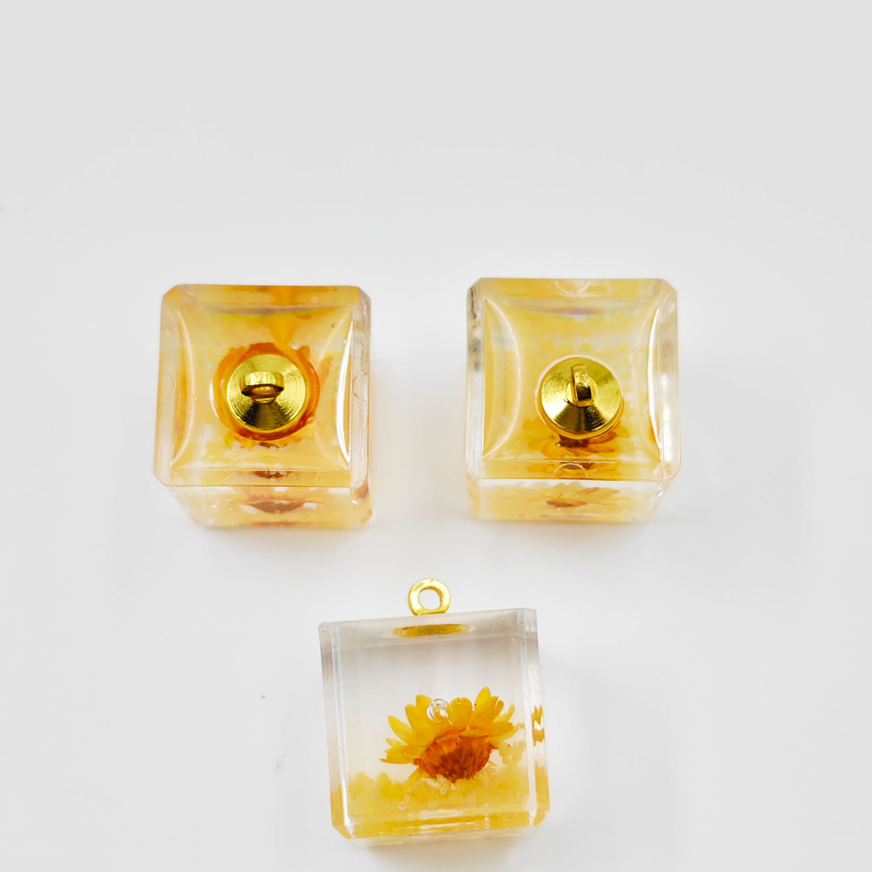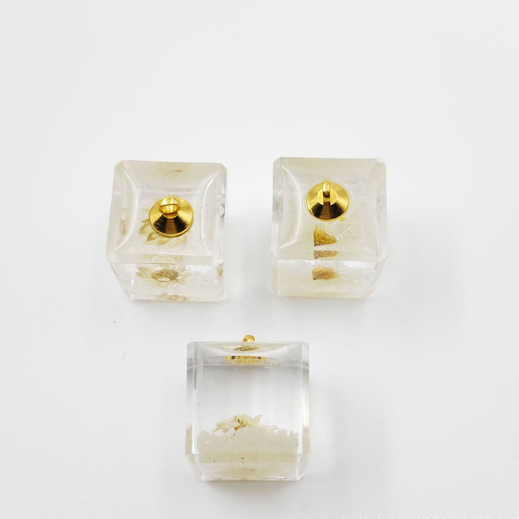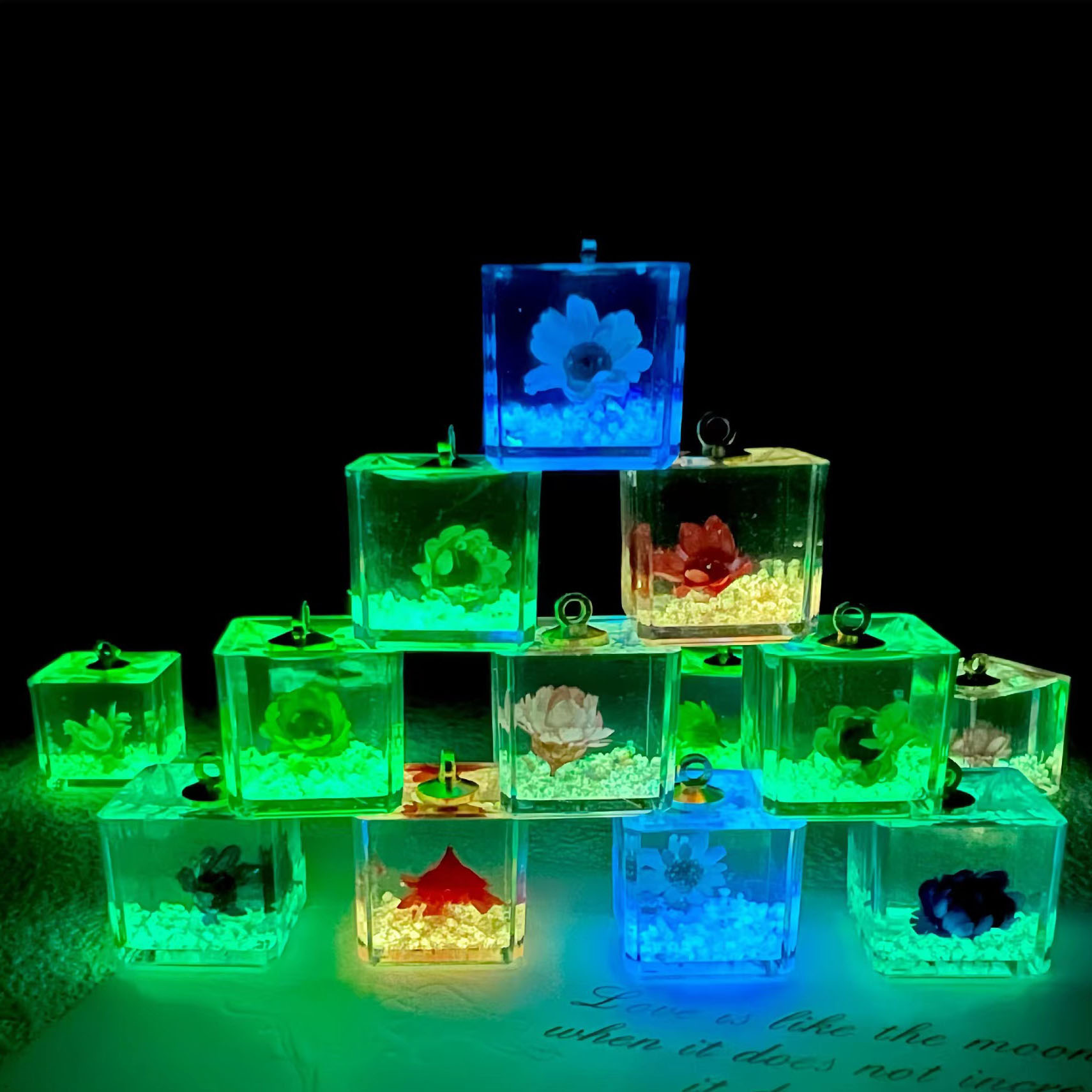 Pendentif en résine, avec fer, cube, goutté d'époxy, DIY & lumineux, plus de couleurs à choisir, 16x16mm, Environ 100PC/sac, Vendu par sac