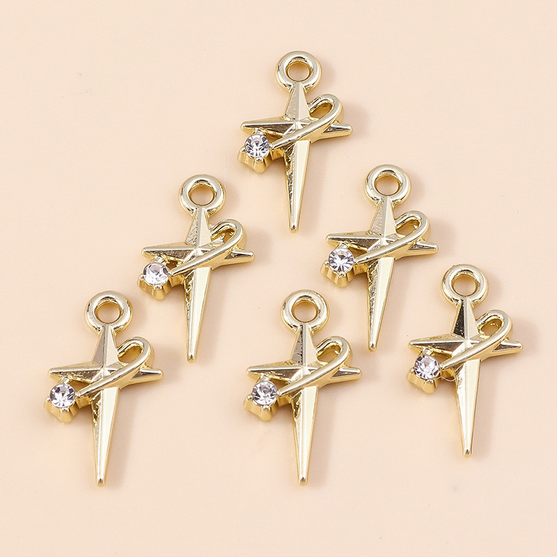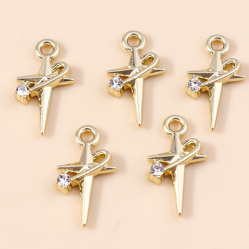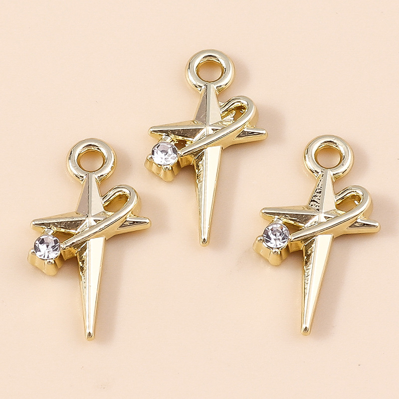 Pendentif étoile en alliage zinc, alliage de zinc, Placage, DIY & avec strass, 10PC/sac, Vendu par sac
