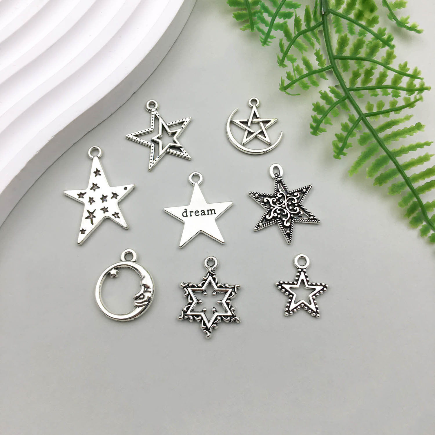1:Mix 20pcs2:1 Ancient silver five-pointed star 8*11mm-0.4g-50823:1 Ancient silver small five-pointed star 9*12mm-0.6g-58124:1 Ancient silver five-pointed star 10*12mm-0.4g-69155:1 Ancient Silver Moon Star 11*17mm-1.1g-85196:1 Ancient silver five-pointed star 15*17mm-0.9g-87677:1 Ancient Silver Moon Star 16*19mm-1.5g-90648:1 Ancient Silver Meteor 5*20mm-1.7g-90679:1 Ancient Silver Star 13*15mm-0.7g-984210:1 Ancient silver star 19*19mm-1g-1061511:1 Ancient silver star letter just for you10 * 10mm-0.5g-1061712:1 Ancient silver five-pointed star letter I love you13 * 16mm-1.1g-1090513:1 Ancient silver star letter dream20 * 23mm-1.8g-1093614:1 Ancient silver star 21*30mm-2.4g-1094615:1 Ancient silver star 12*14mm-1.1g-1095116:1 Ancient silver star 17*22mm-1.3g-1095417:1 Ancient silver five-pointed star 17*19mm-1.2g-1114018:1 Ancient silver five-pointed star 12*15mm-0.5g-1120219:1 Ancient silver star 20*24mm-1.7g-1213220:1 Ancient Silver Star 13*18mm-0.5g-1213521:1 Ancient silver star 19*25mm-1.4g-1386622:1 ancient silver star 14*11mm-1g-1386823:1 ancient silver five-pointed star 14*17mm-0.5g-18733