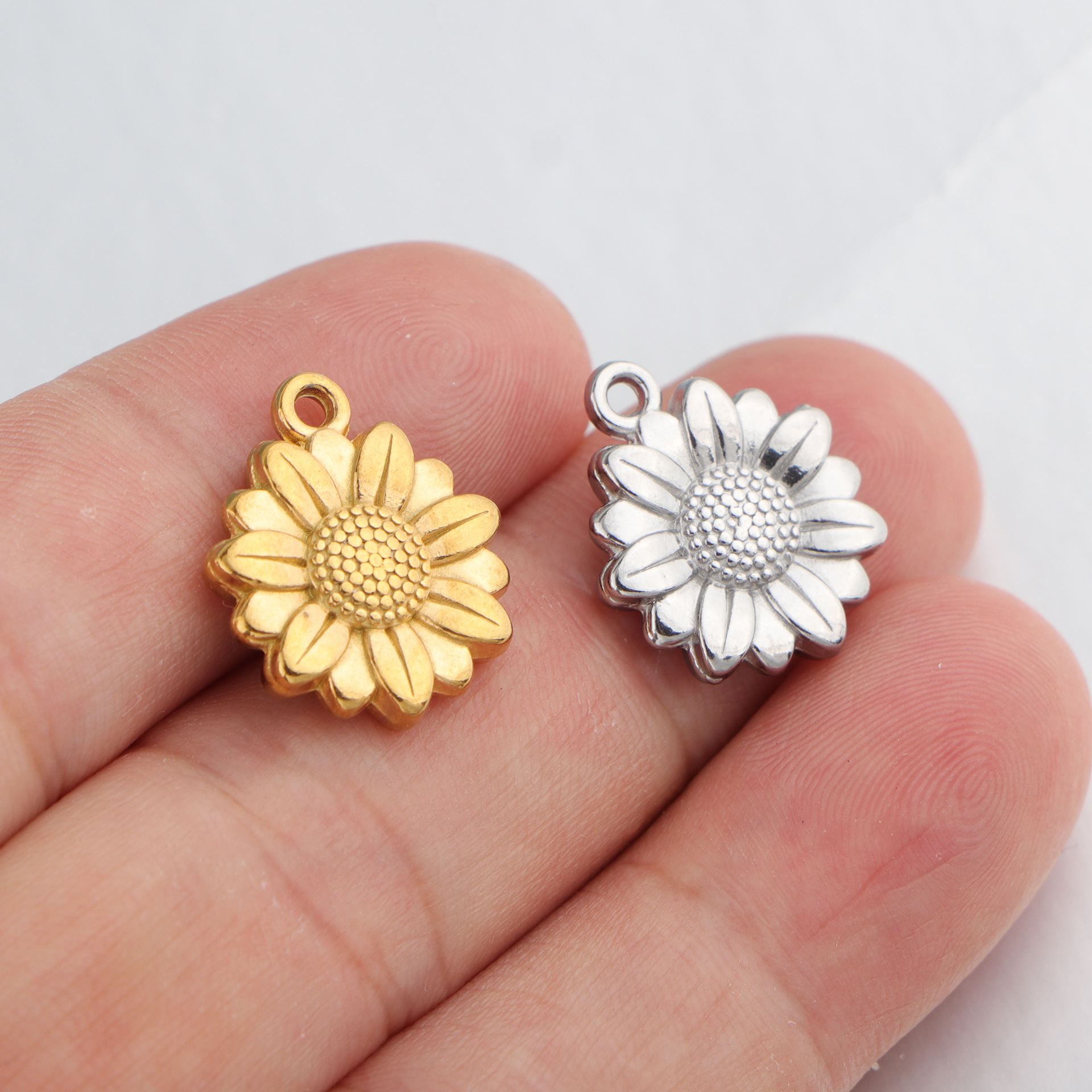 Pendentif fleur en acier inoxydable, Acier inoxydable 304, Tournesol, Placage, DIY, plus de couleurs à choisir, Vendu par PC