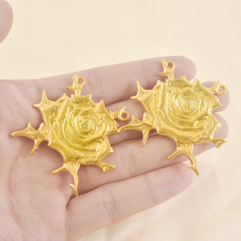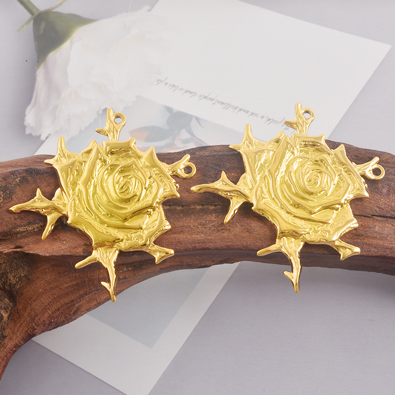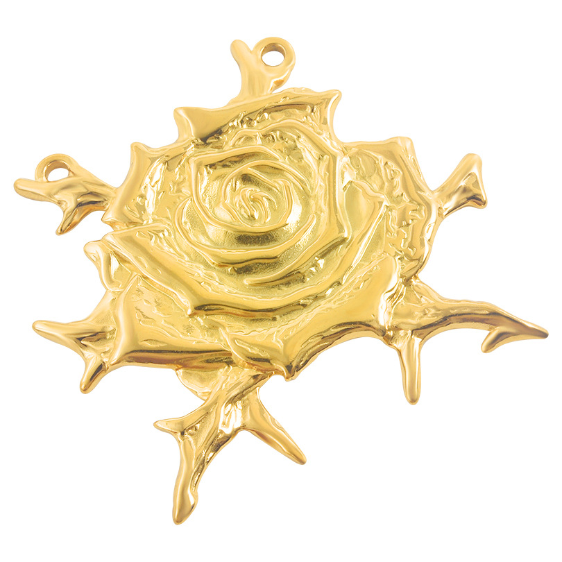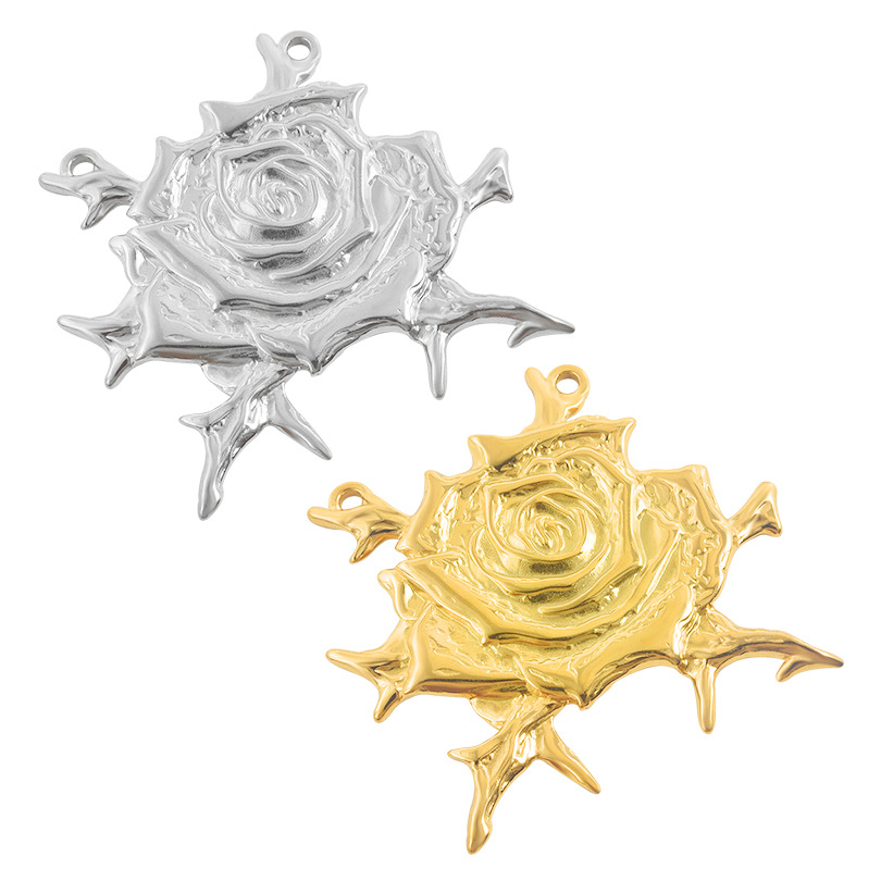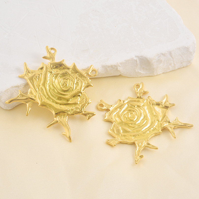 Pendentif fleur en acier inoxydable, Acier inoxydable 304, Rose, Placage, DIY & double trou, plus de couleurs à choisir, 10PC/sac, Vendu par sac