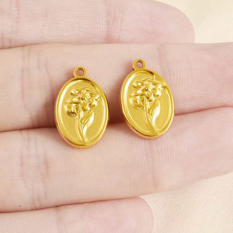Pendentif fleur en acier inoxydable, Acier inoxydable 304, Placage, DIY, plus de couleurs à choisir, 10PC/sac, Vendu par sac