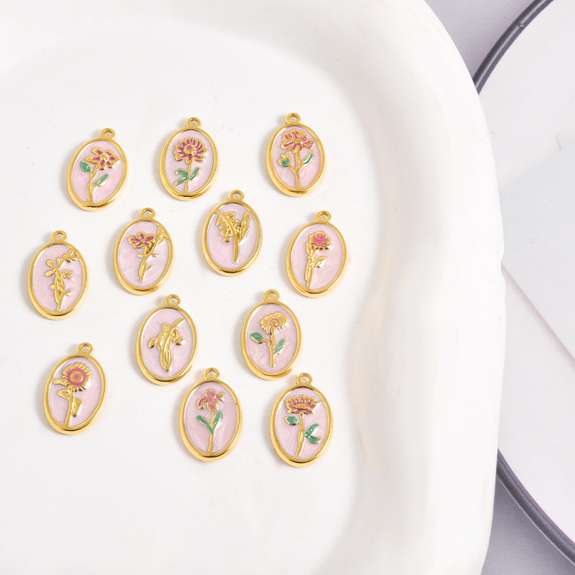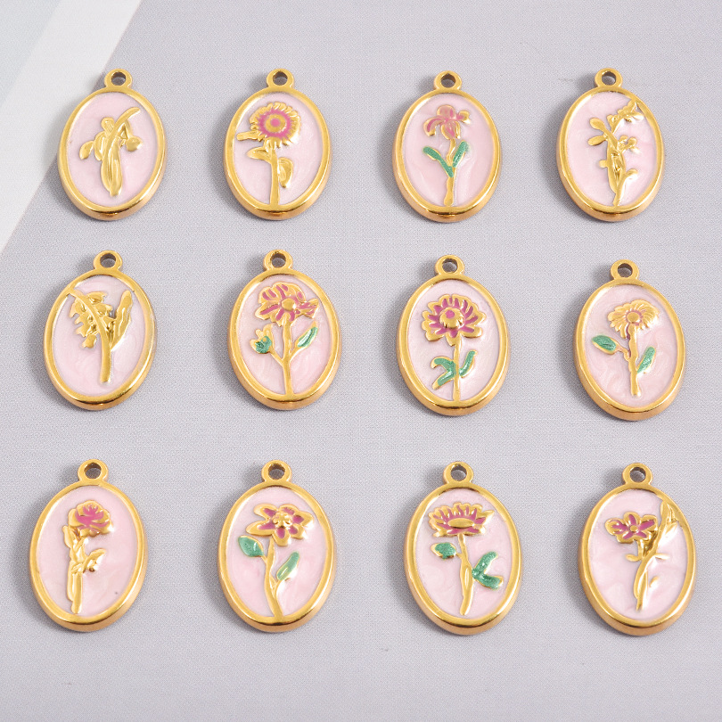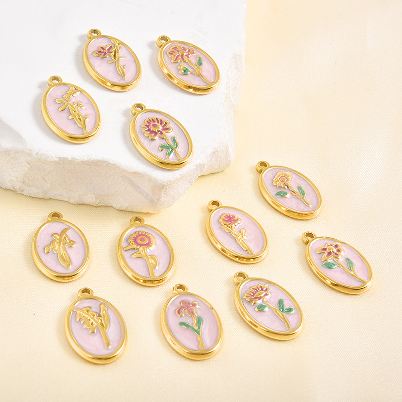 Pendentif fleur en acier inoxydable, Acier inoxydable 304, Placage de couleur d'or, DIY & émail, plus de couleurs à choisir, 10PC/sac, Vendu par sac