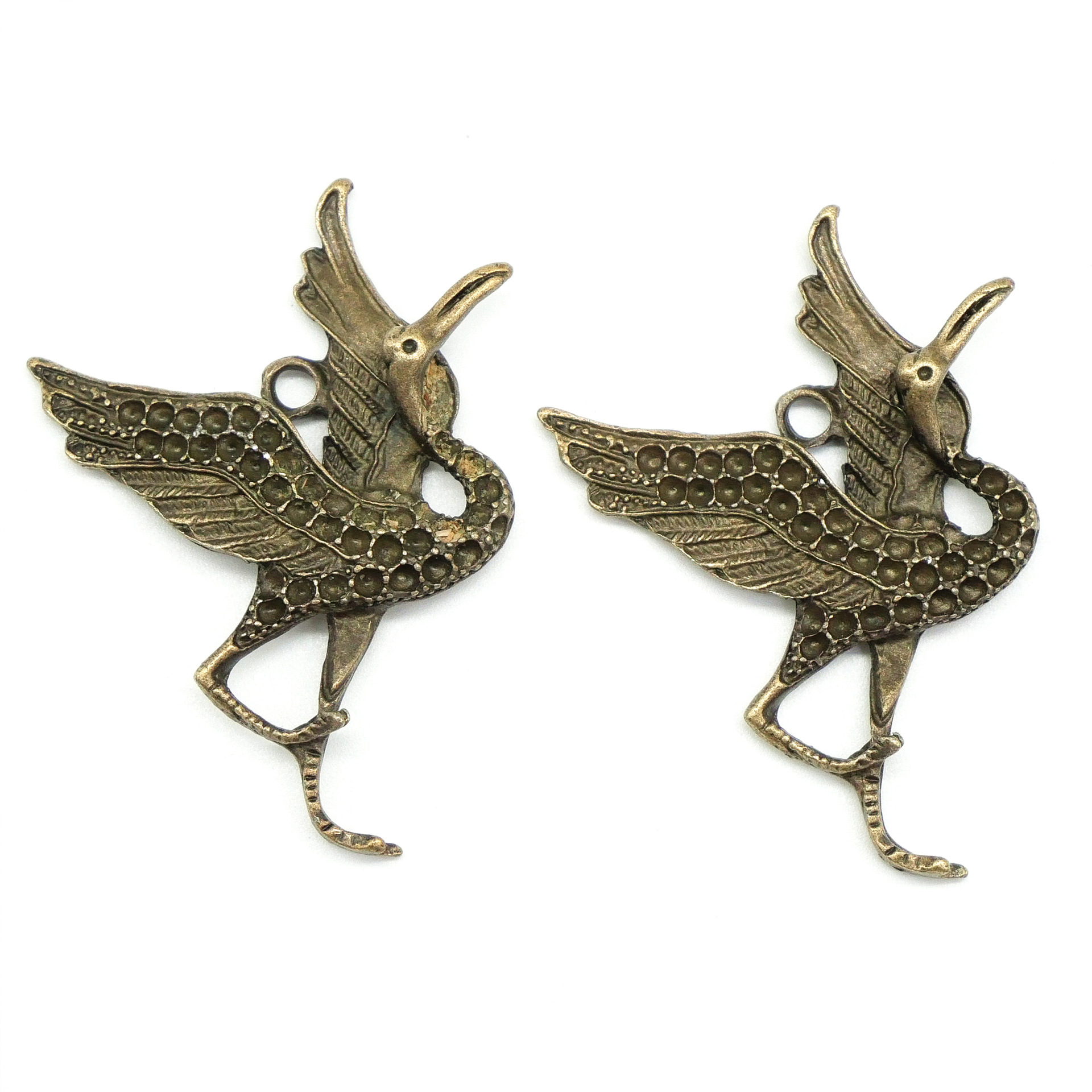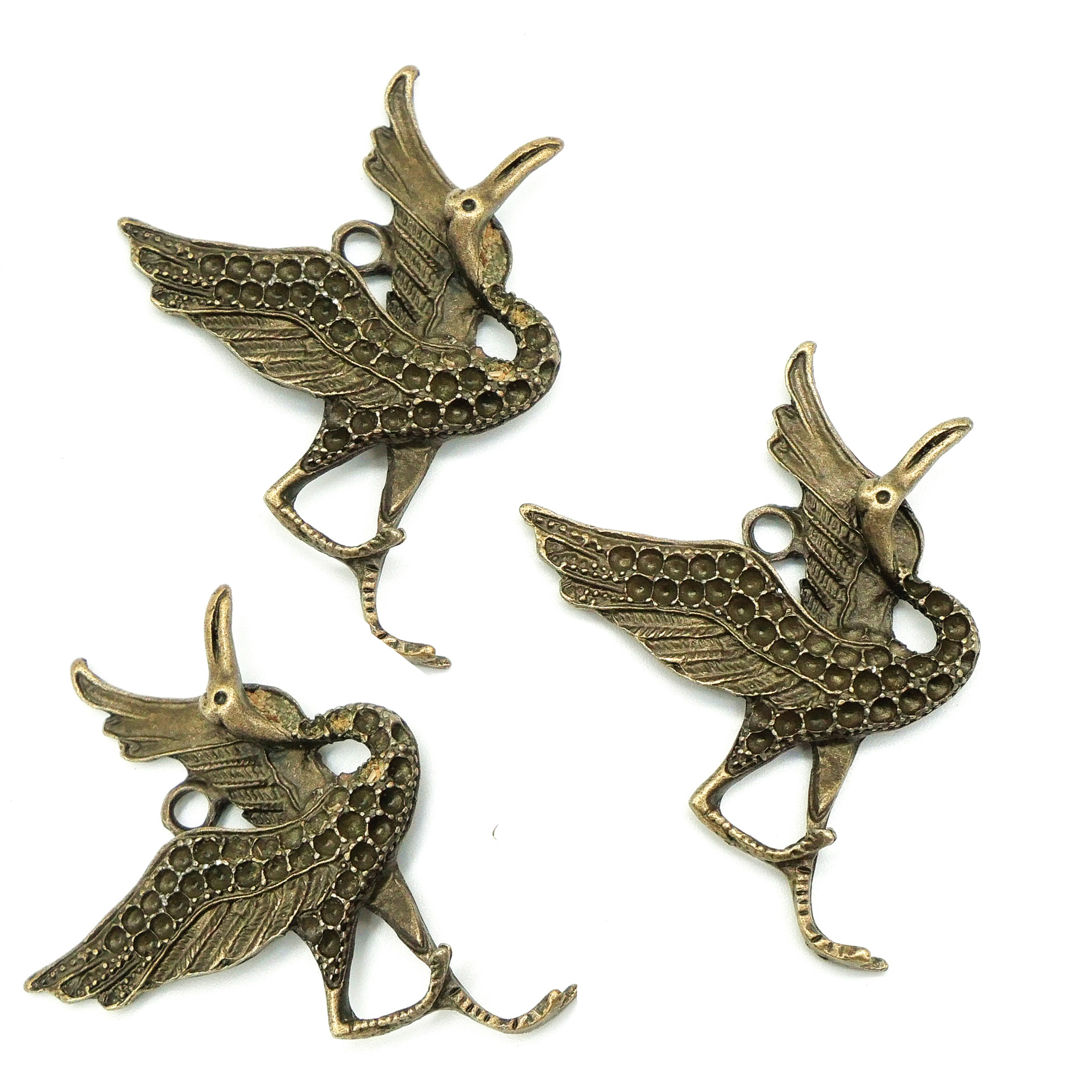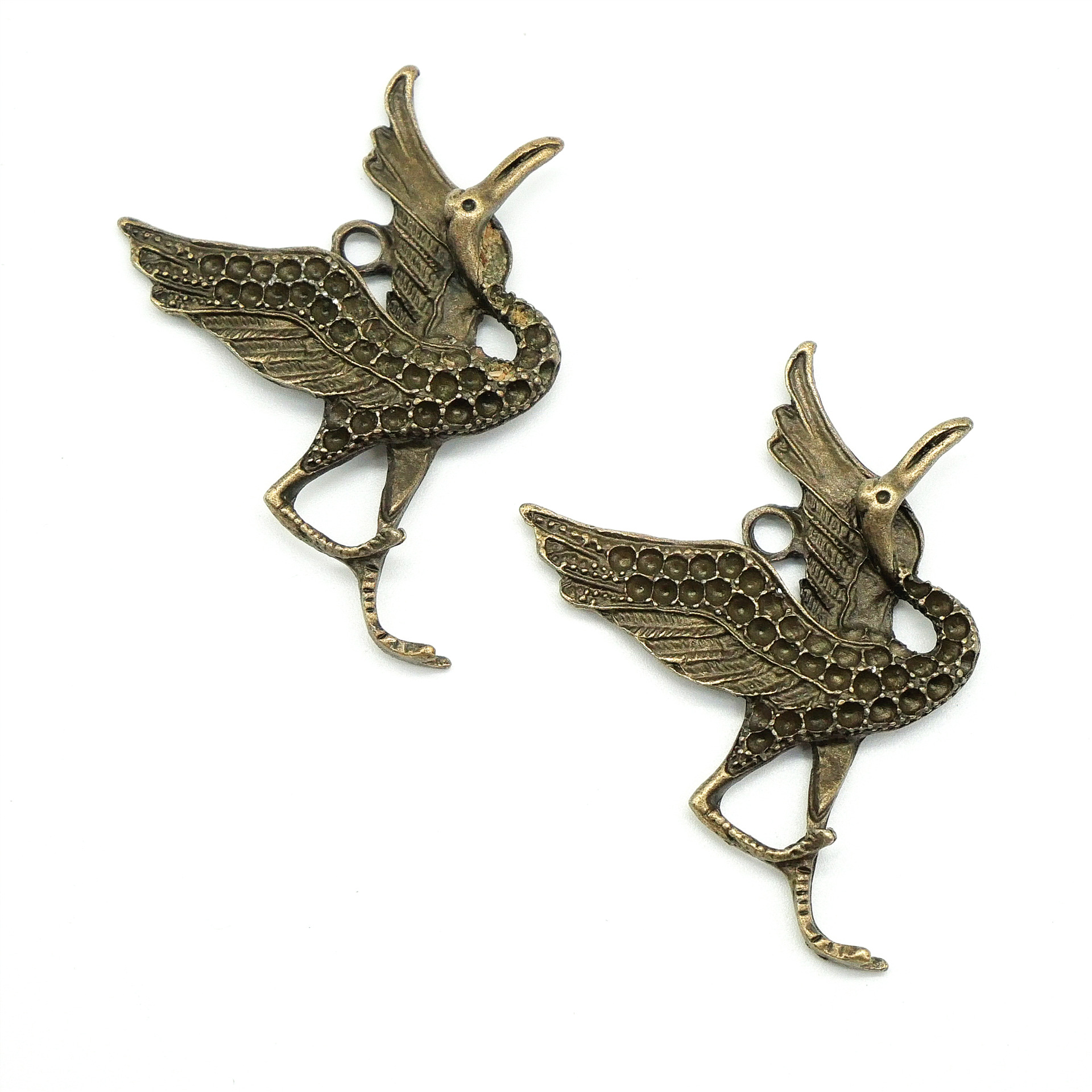 Pendentifs animaux en alliage de zinc, Grue, Plaqué de couleur de bronze antique, DIY, 55x40x6mm, 100PC/sac, Vendu par sac