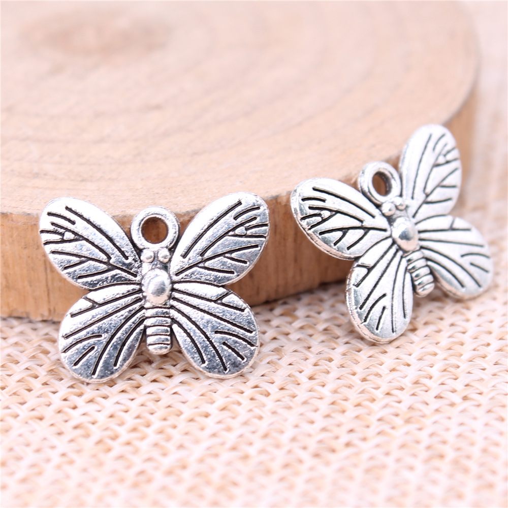 Pendentifs animaux en alliage de zinc, papillon, Plaqué de couleur d'argent, DIY, 17x14mm, 20PC/sac, Vendu par sac