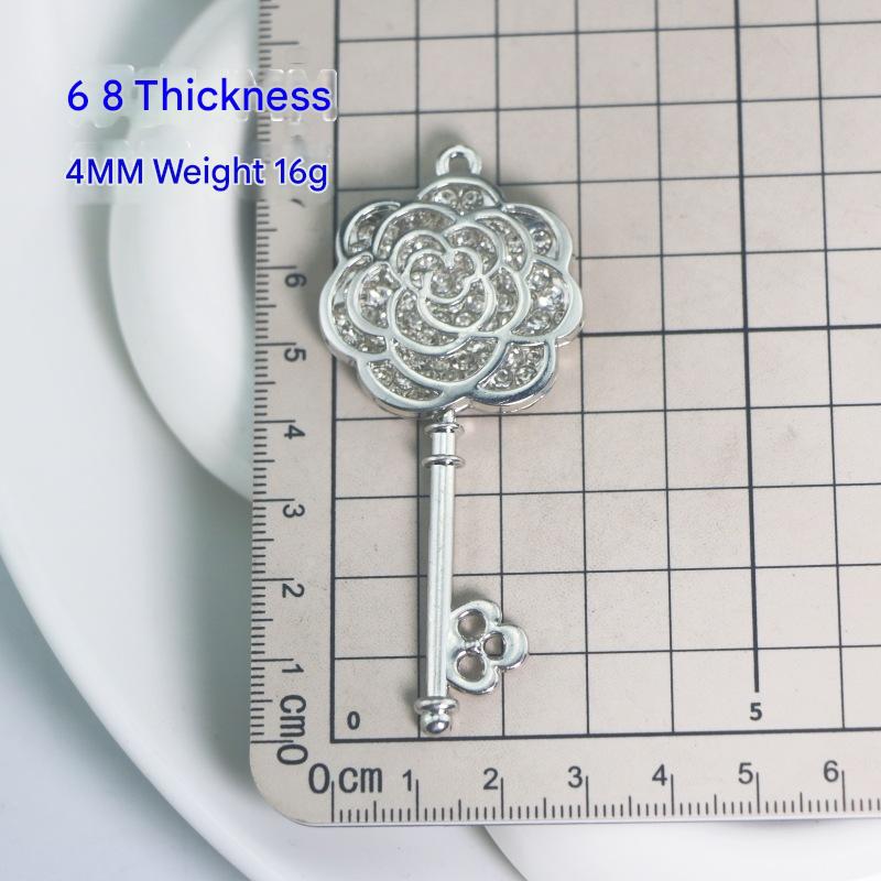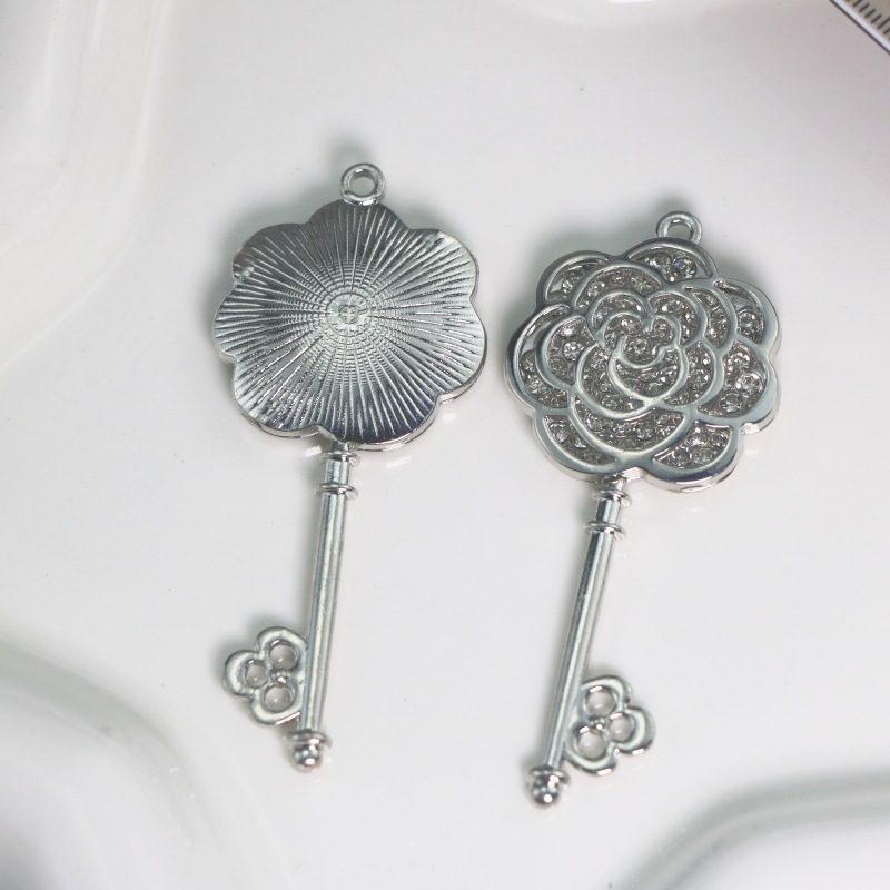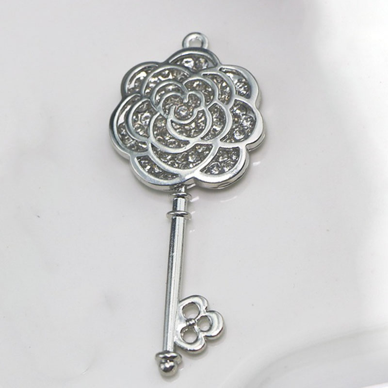 Pendentifs clé en alliage de zinc, Placage de couleur argentée, DIY & avec strass, protéger l'environnement, sans nickel, plomb et cadmium, Vendu par PC