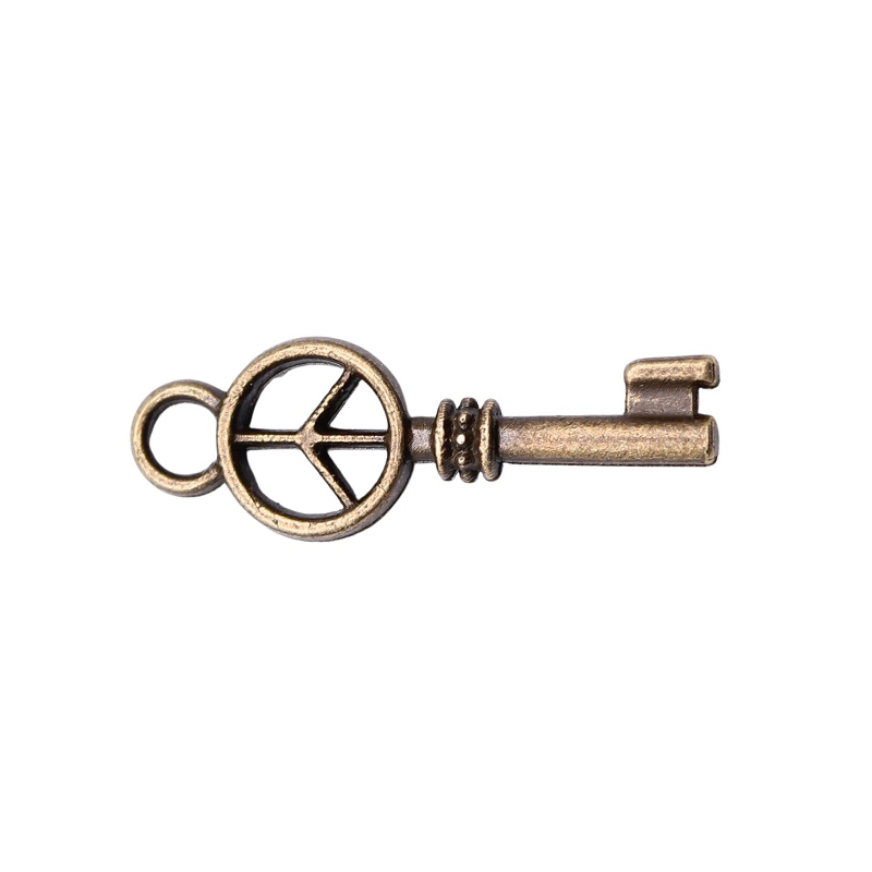 Pendentifs clé en alliage de zinc, Plaqué de couleur de bronze antique, DIY & creux, 26x9mm, 20PC/sac, Vendu par sac