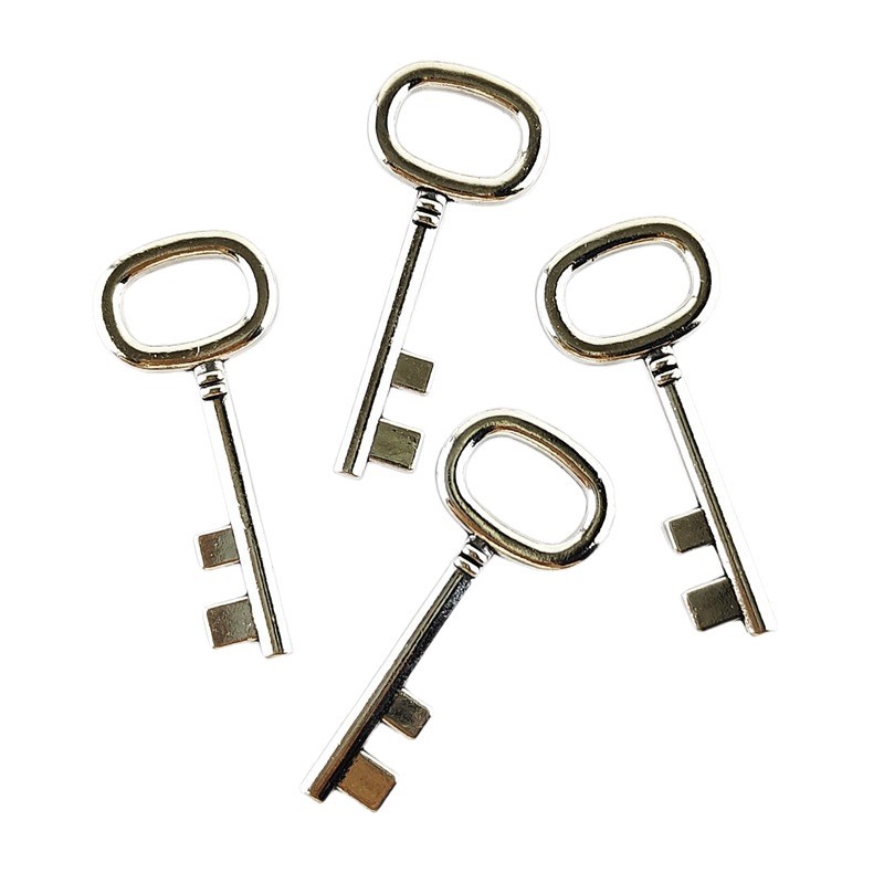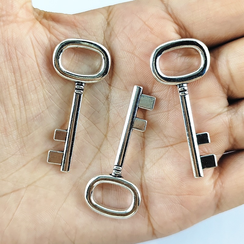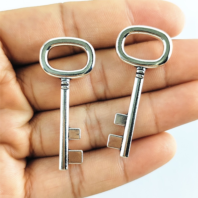 Pendentifs clé en alliage de zinc, Placage de couleur argentée, DIY, 41x17mm, 100PC/sac, Vendu par sac