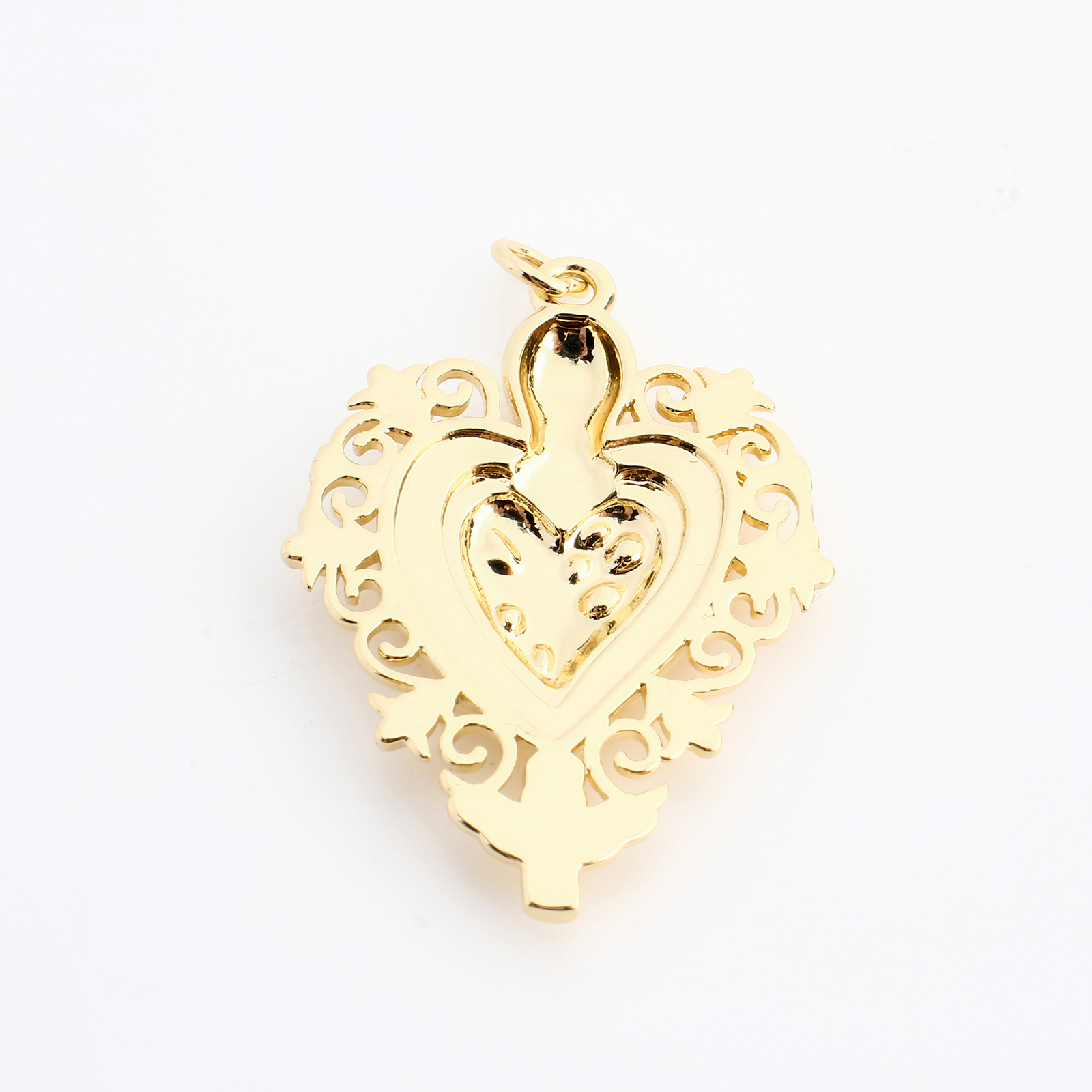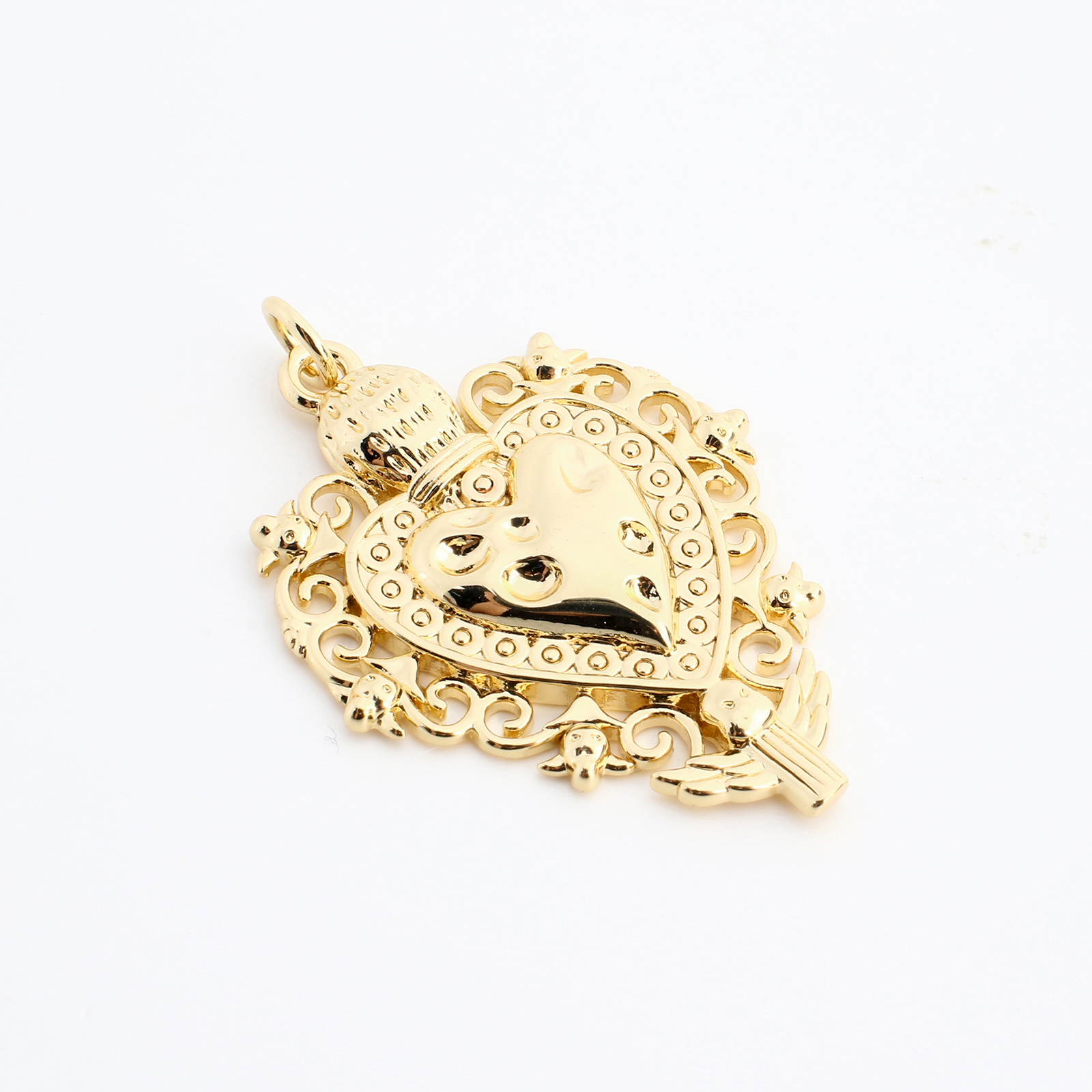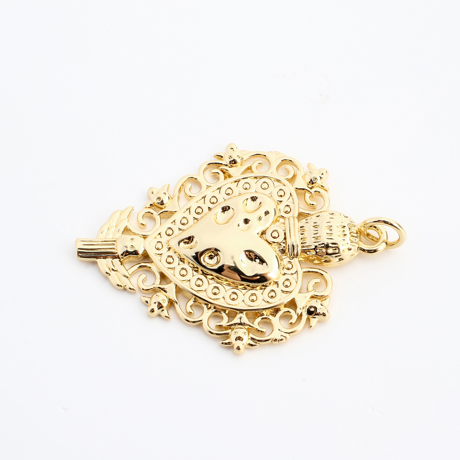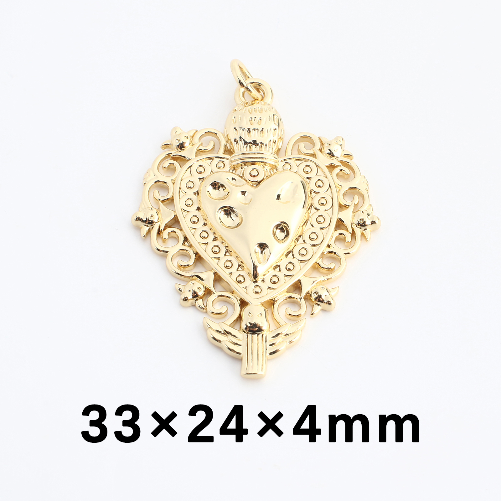 Pendentifs coeur en laiton, DIY & creux, doré, 33x24x4mm, Vendu par PC