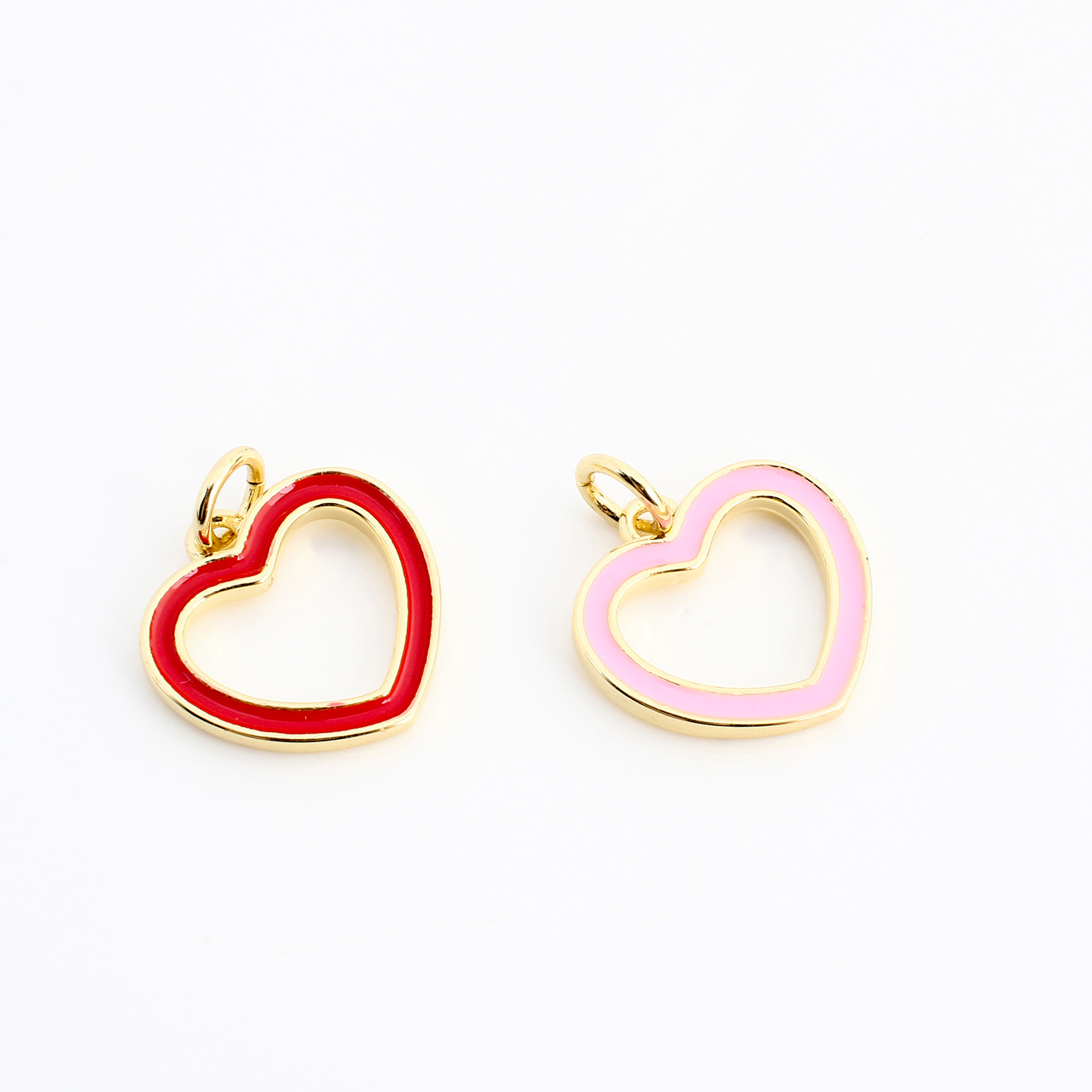 Pendentifs coeur en laiton, Placage de couleur d'or, DIY & émail & creux, plus de couleurs à choisir, 17x14x2mm, Vendu par PC