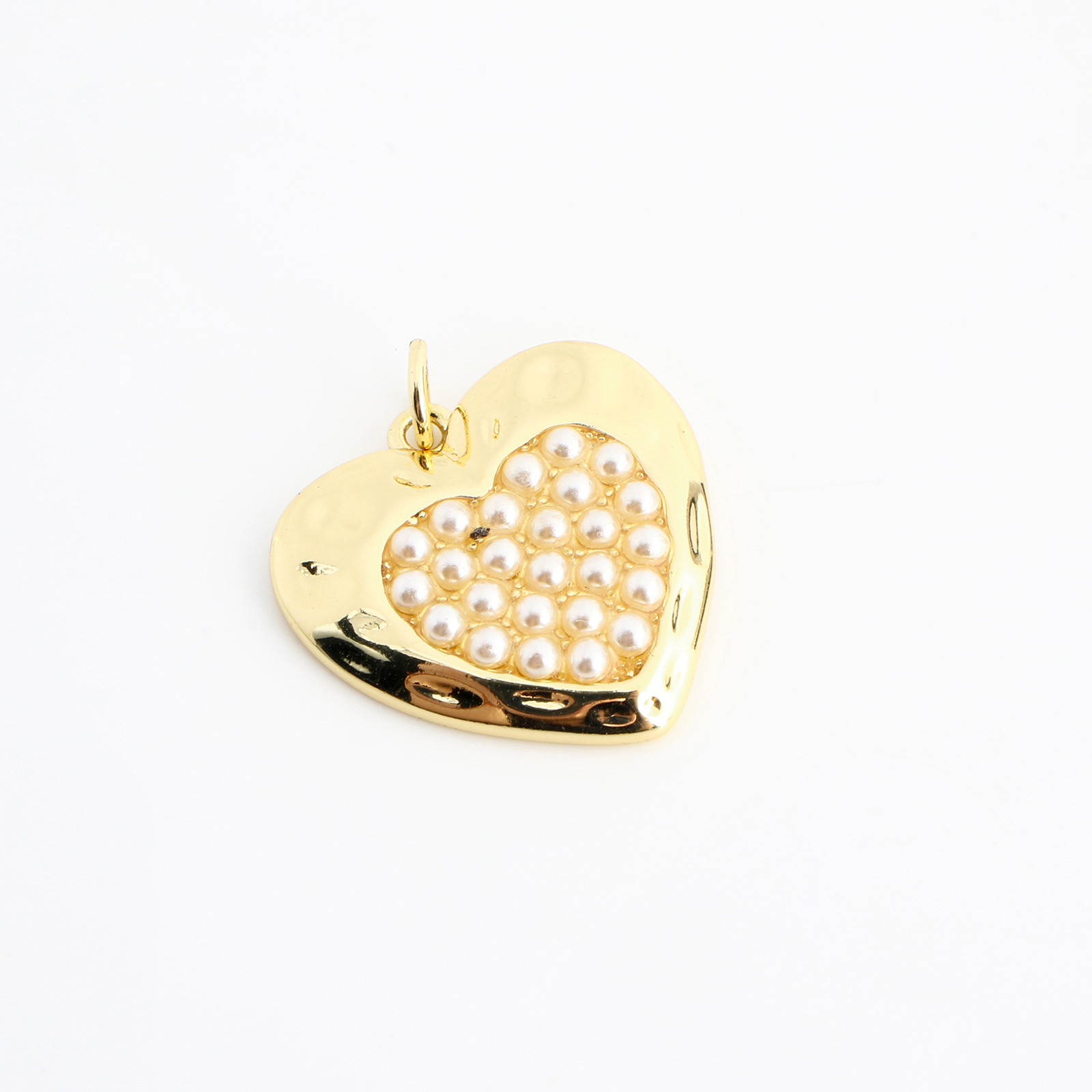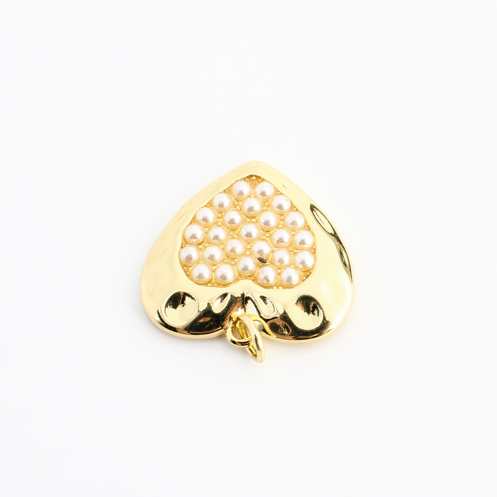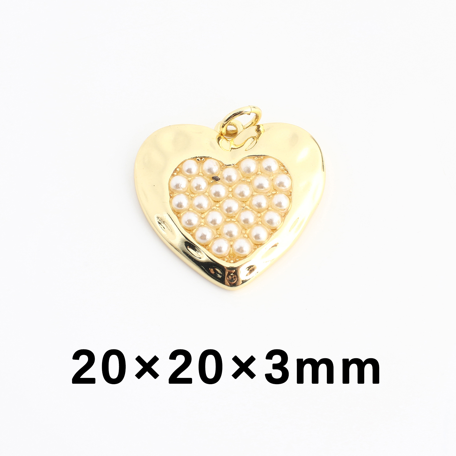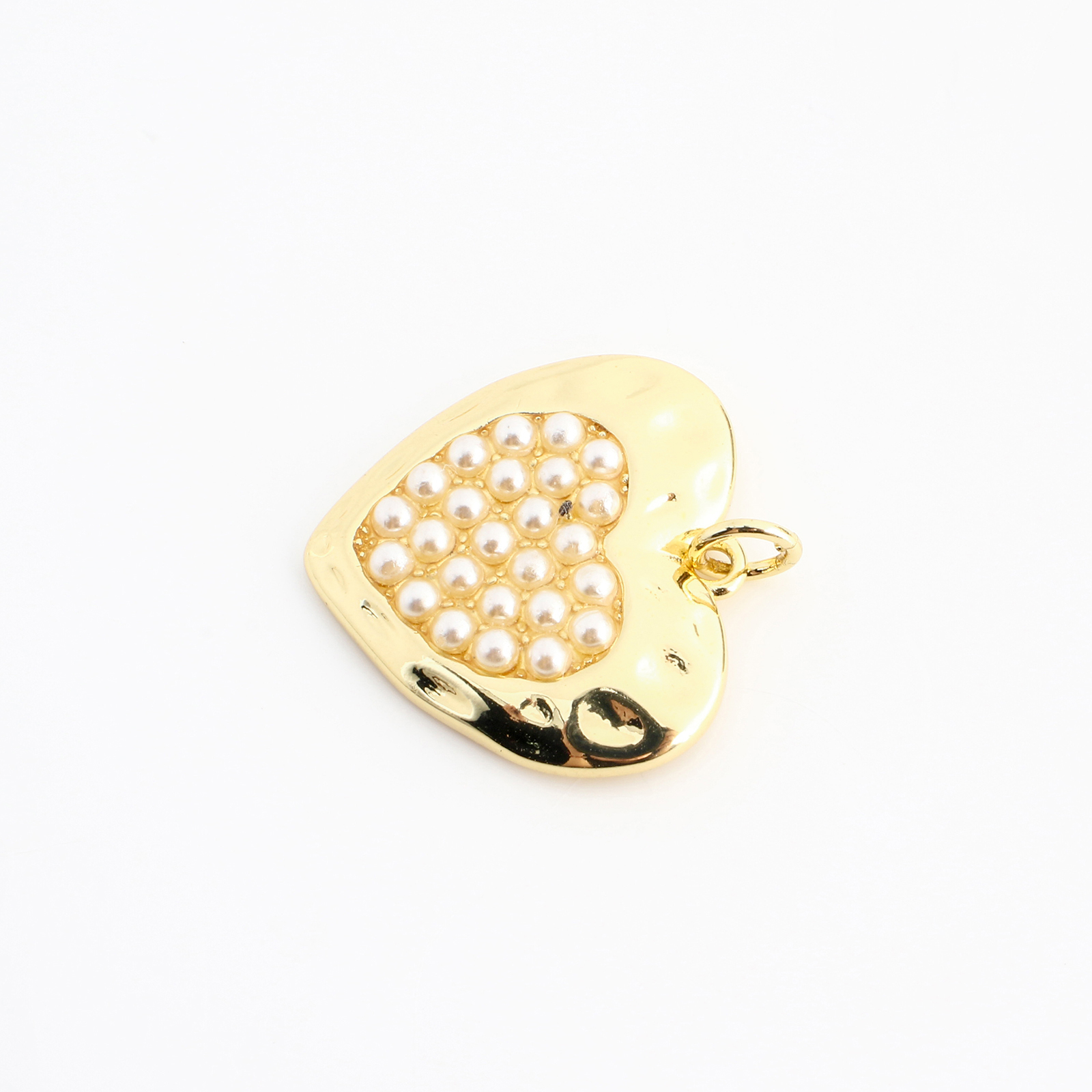 Pendentifs coeur en laiton, avec perle de plastique, DIY, doré, 20x20x3mm, Vendu par PC