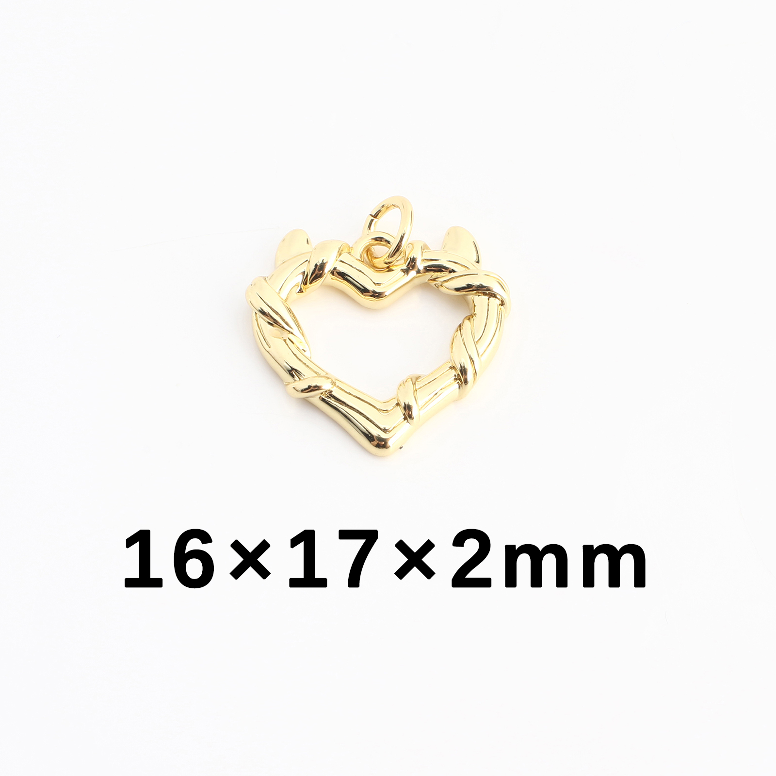 Pendentifs coeur en laiton, DIY & creux, doré, 16x17x2mm, Vendu par PC