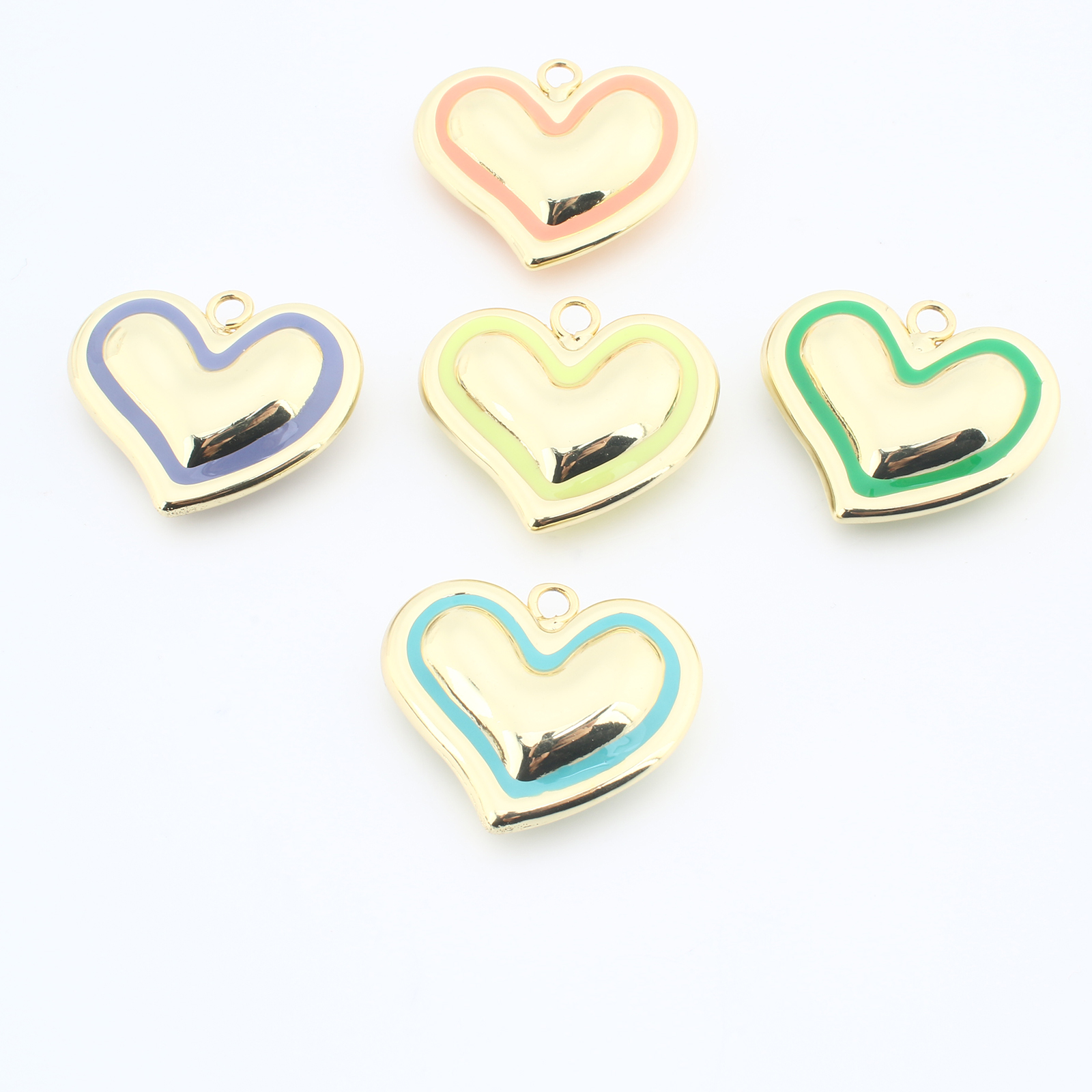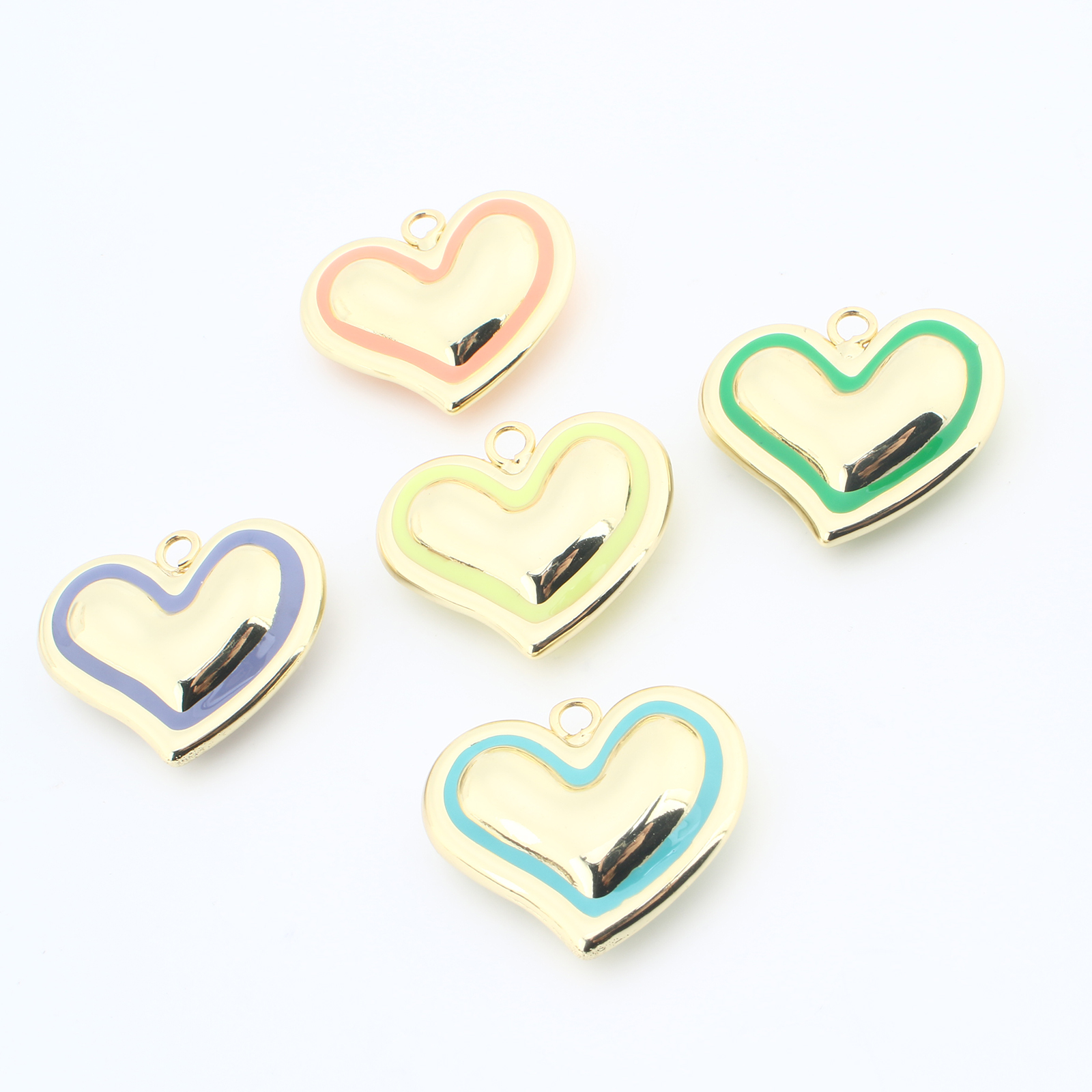 Pendentifs coeur en laiton, Placage de couleur d'or, DIY & émail, plus de couleurs à choisir, 17x16x3mm, Vendu par PC